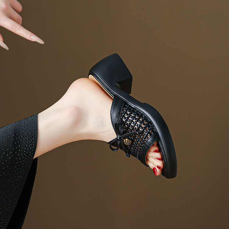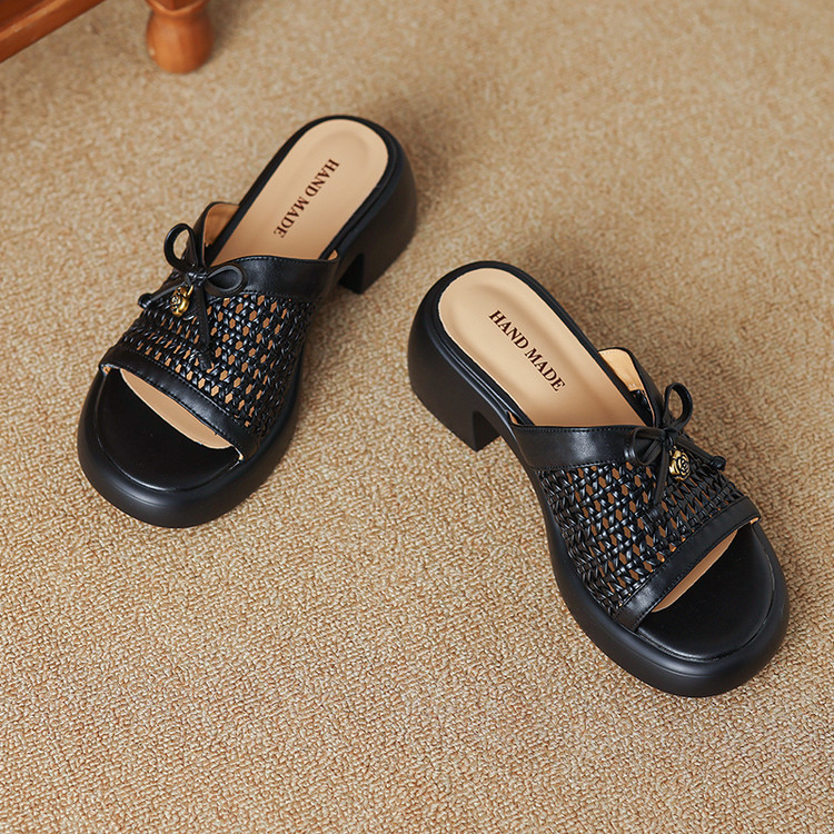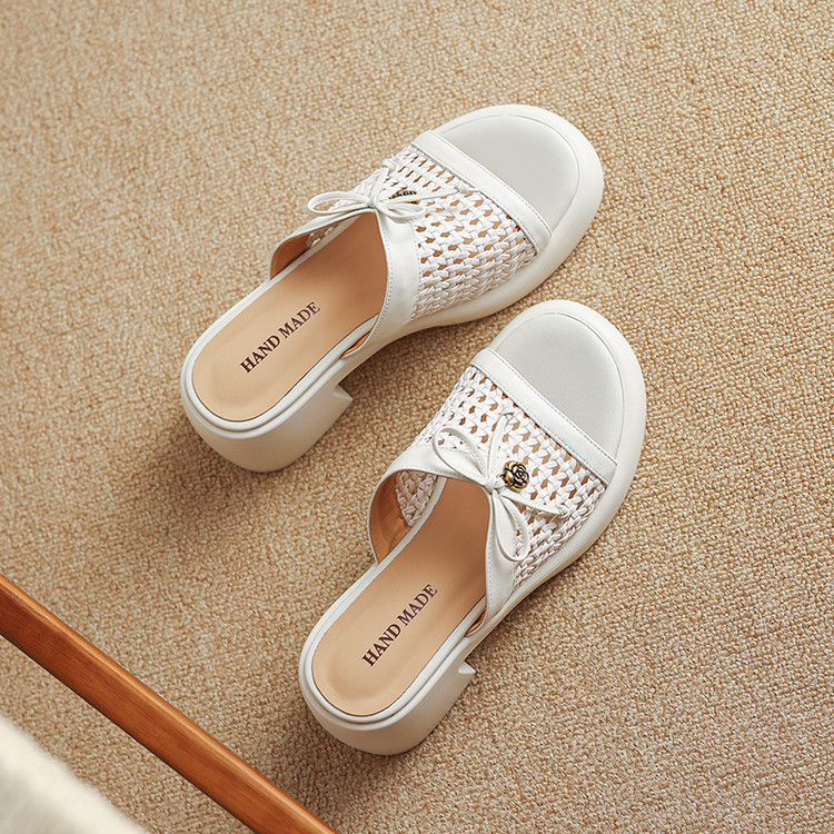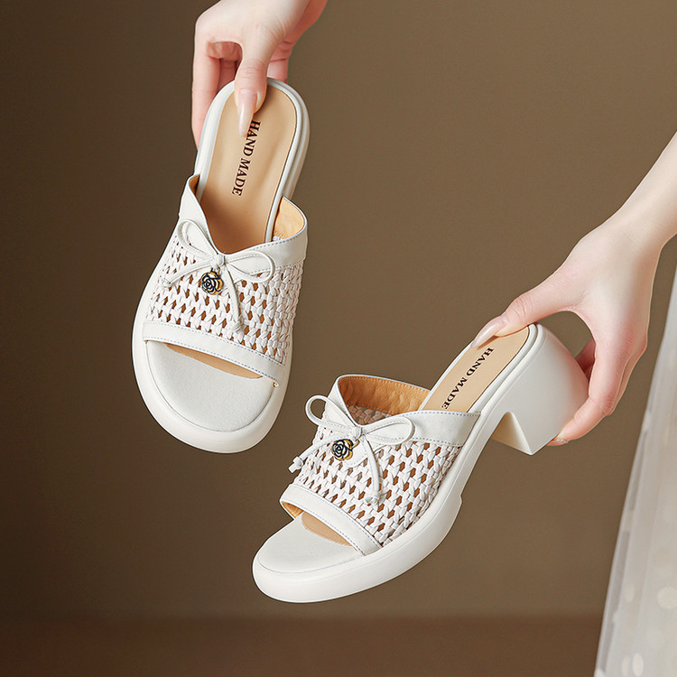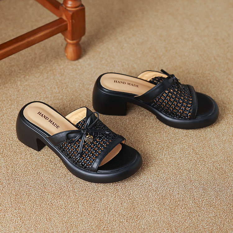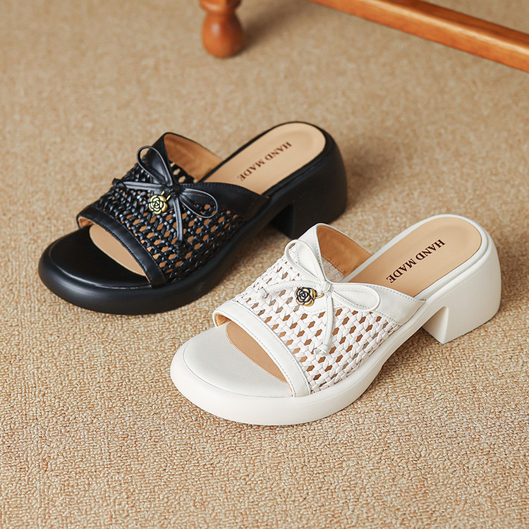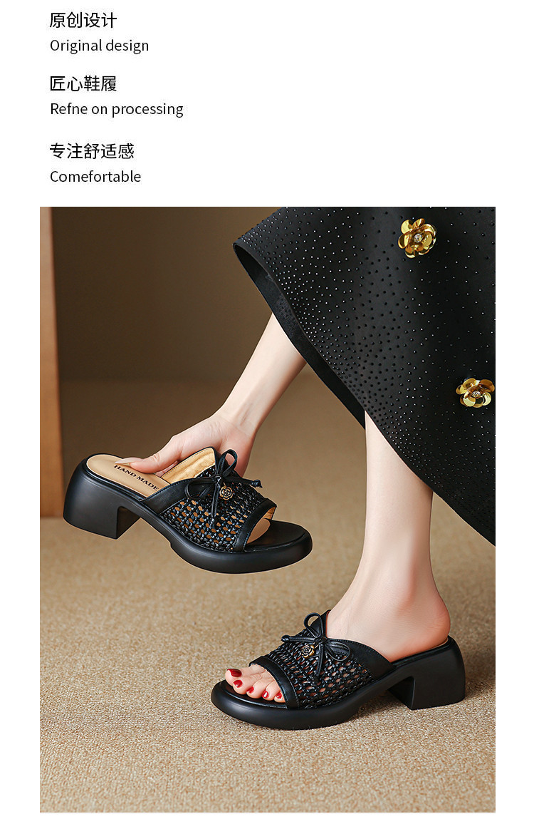 【货 号】C126【鞋面材质】牛皮+编织【鞋垫材质】牛皮【内里材质】头层猪皮【鞋 底】聚氨酯【跟 高】6cm【颜 色】米白色 黑色【尺 码】34-40(大小定制不退换)