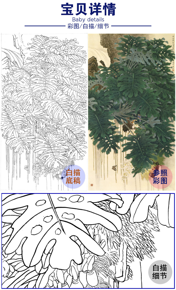 竖幅工笔花鸟白描底稿-周彦生《清流》-多种白描尺寸可选-A072