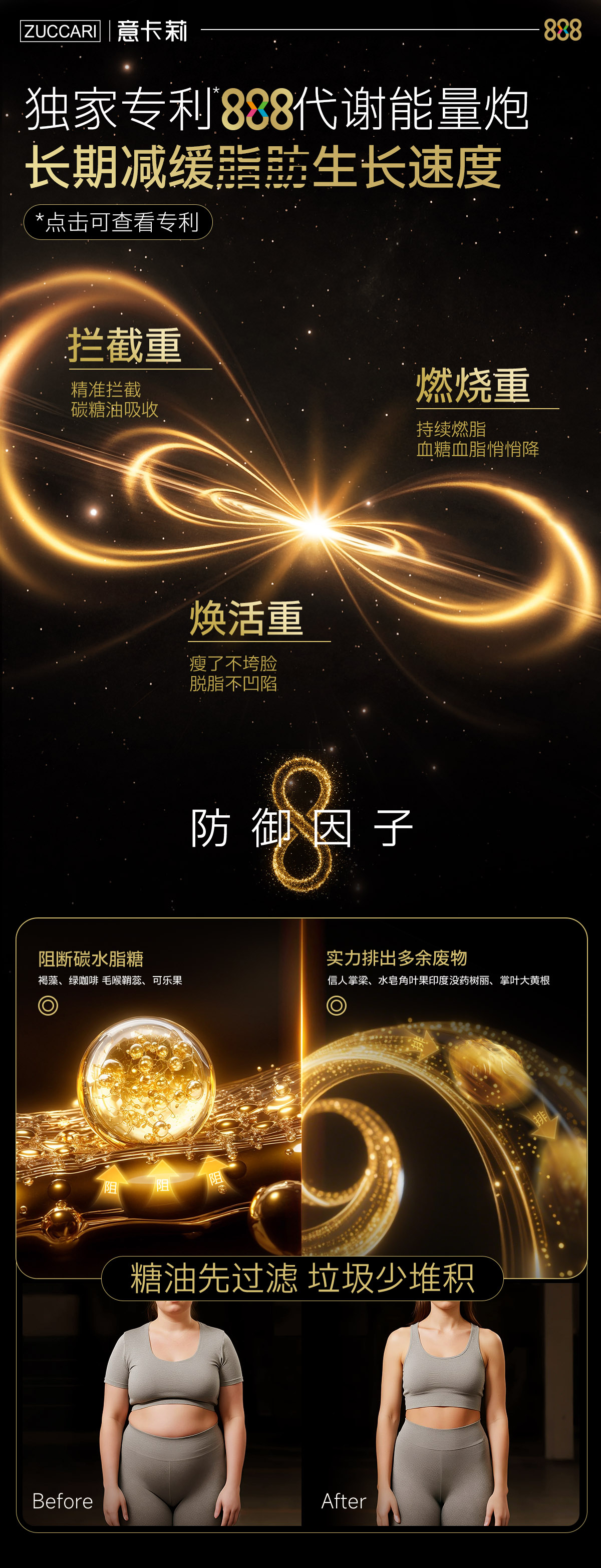 ZUCCARI 意卡莉久坐腰腹肥胖组合:金装版888代谢饮+888小腰饮