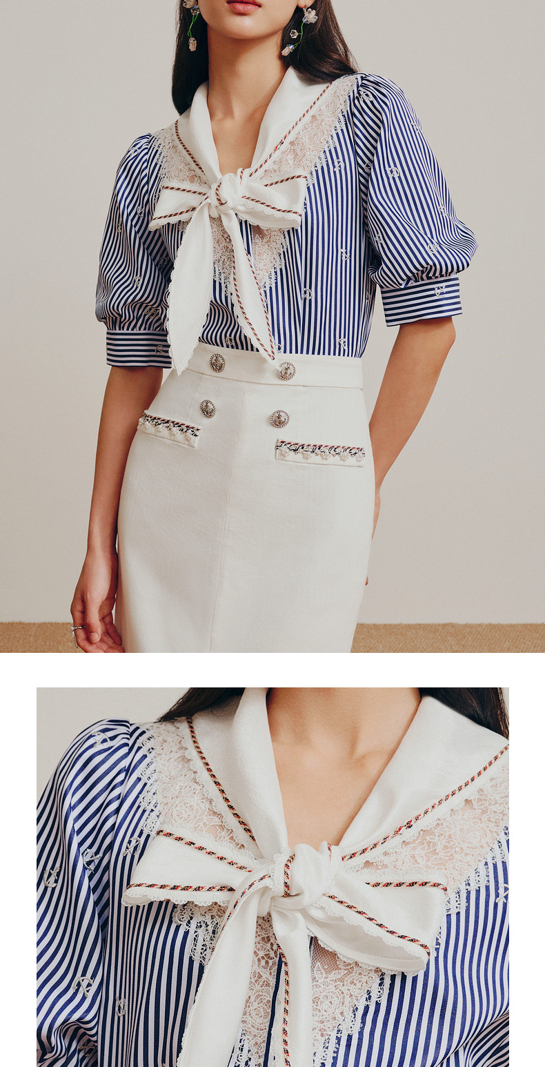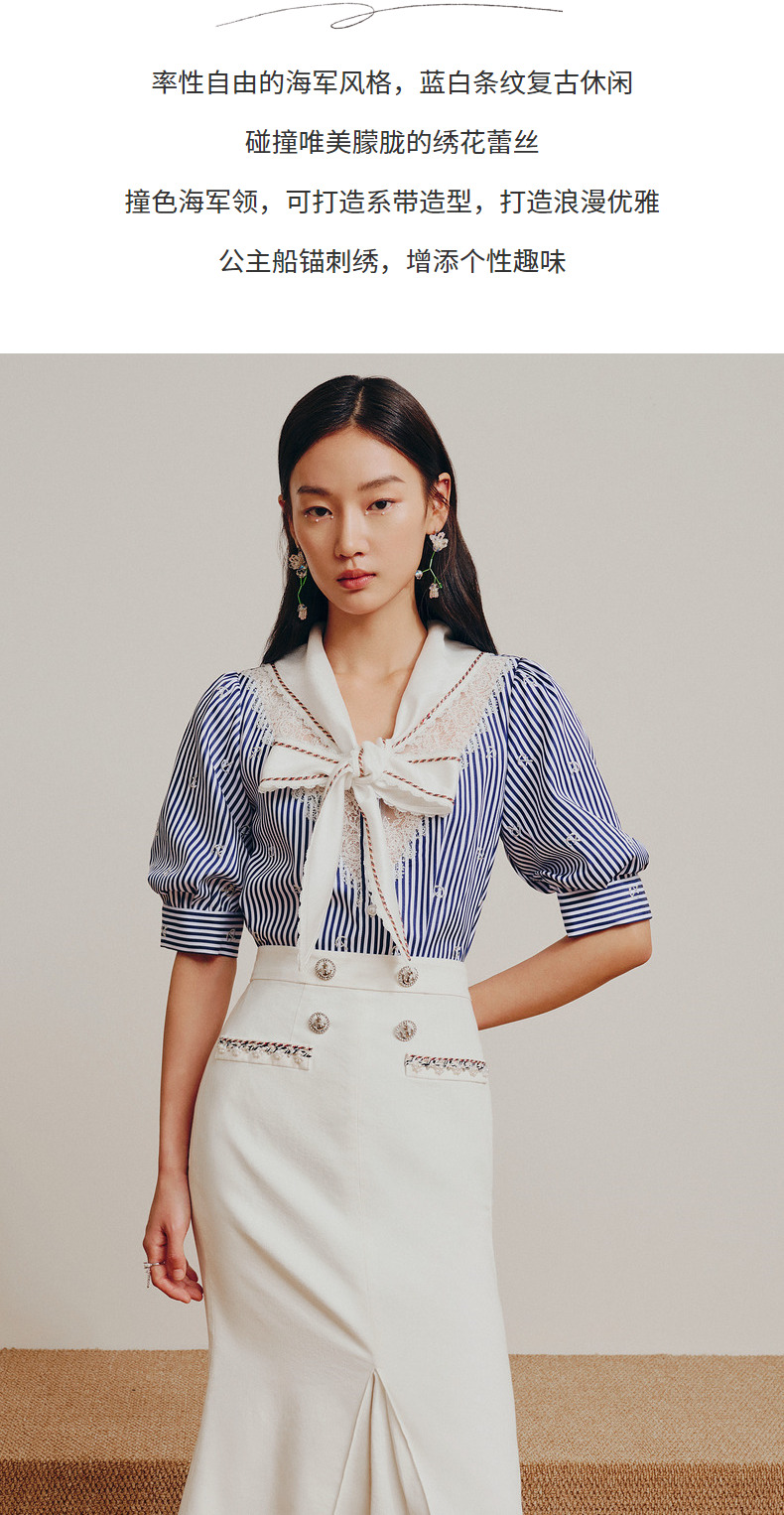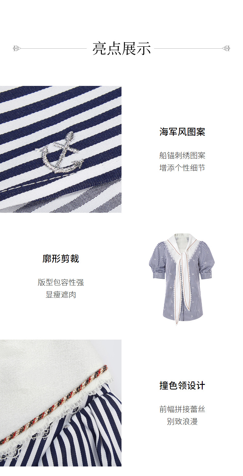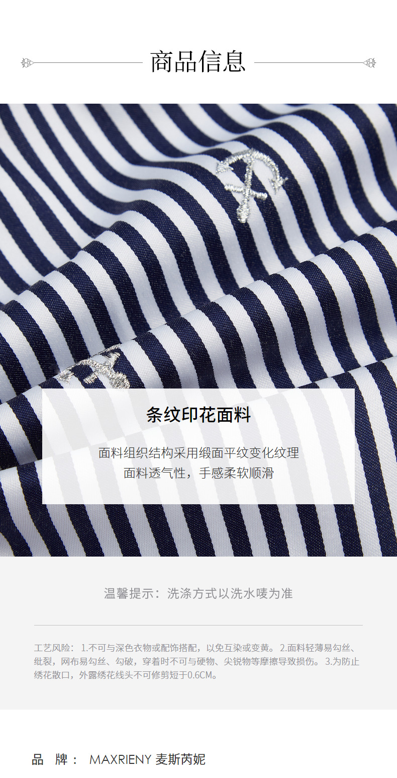 MAXRIENY海军风蓝白条纹复古撞色领衬衫上衣(货号:MC88TP362)