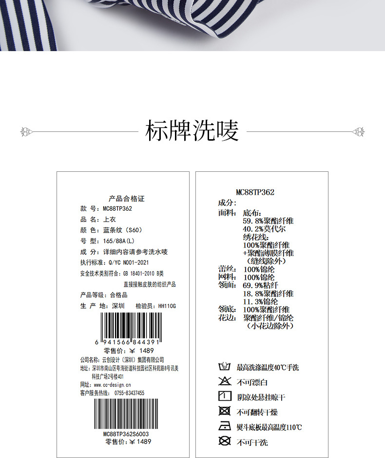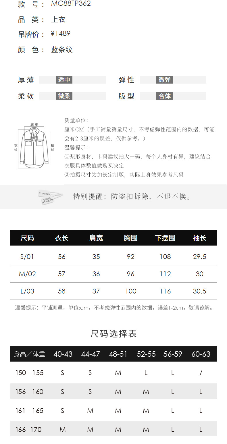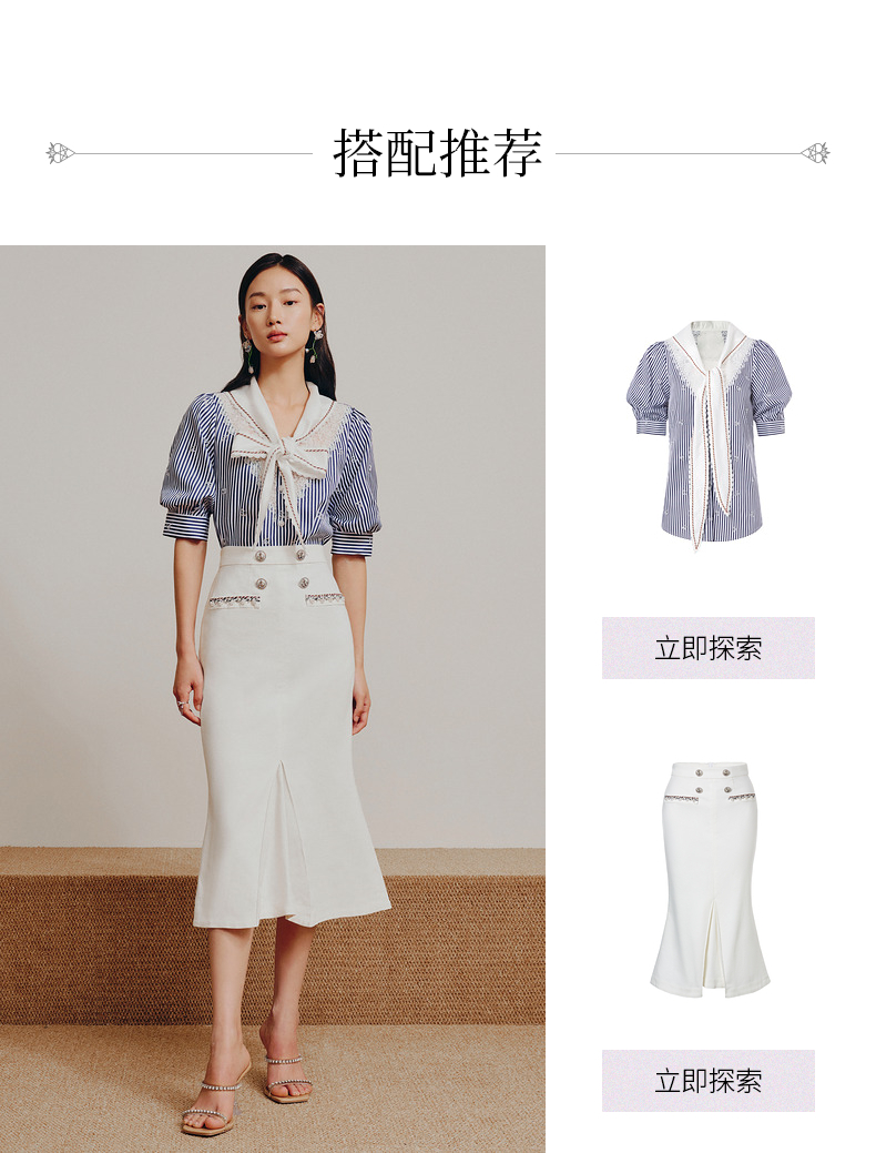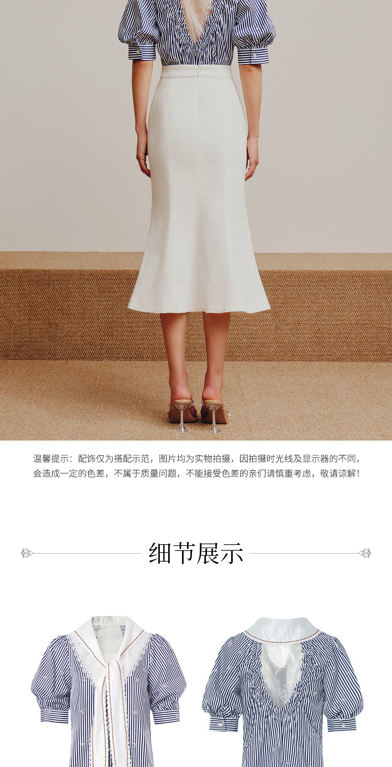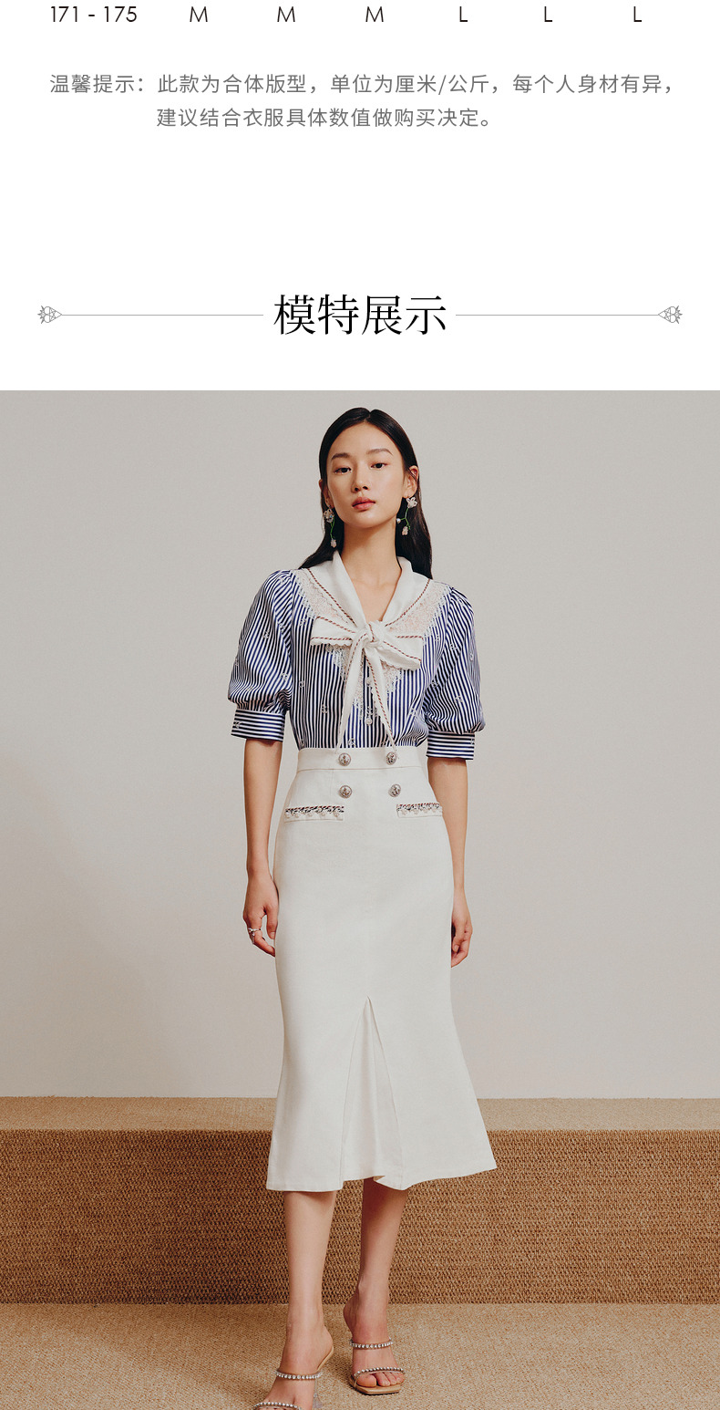 MAXRIENY海军风蓝白条纹复古撞色领衬衫上衣(货号:MC88TP362)