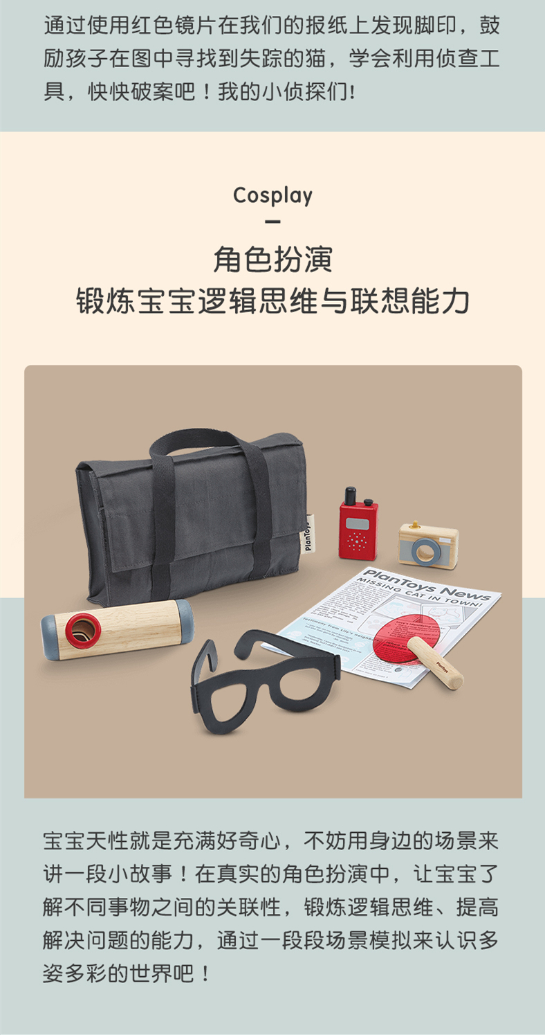 【PlanToys】泰国进口木质玩具培养侦探套装过家家玩具角色扮演 3701 侦探套装