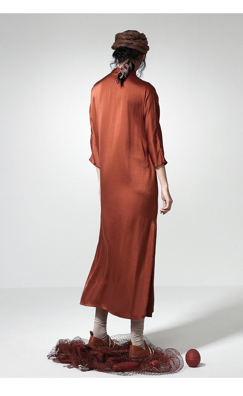 EIN重磅真丝直身禅修长卦连衣裙ED29023