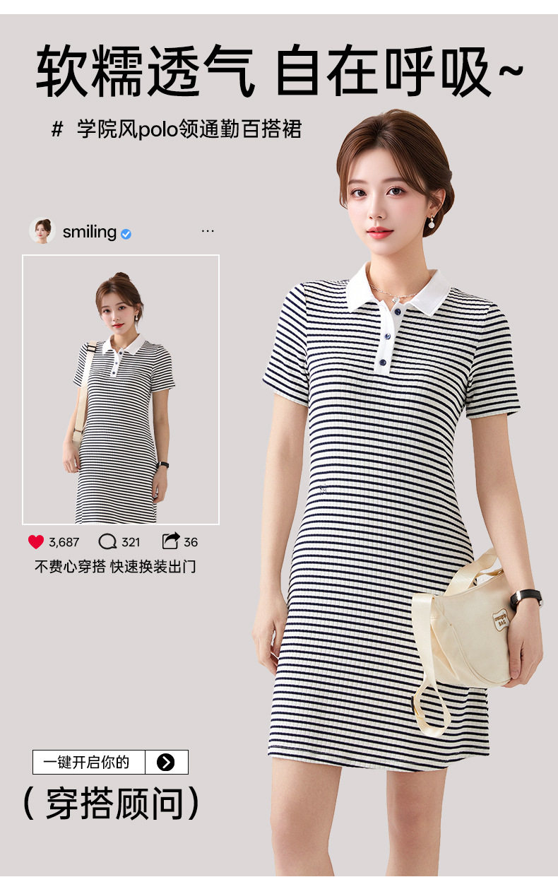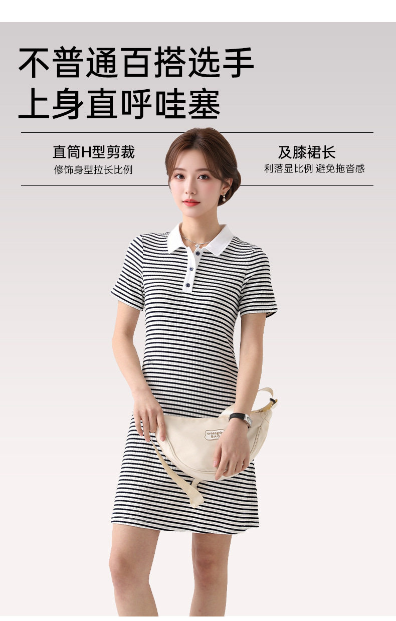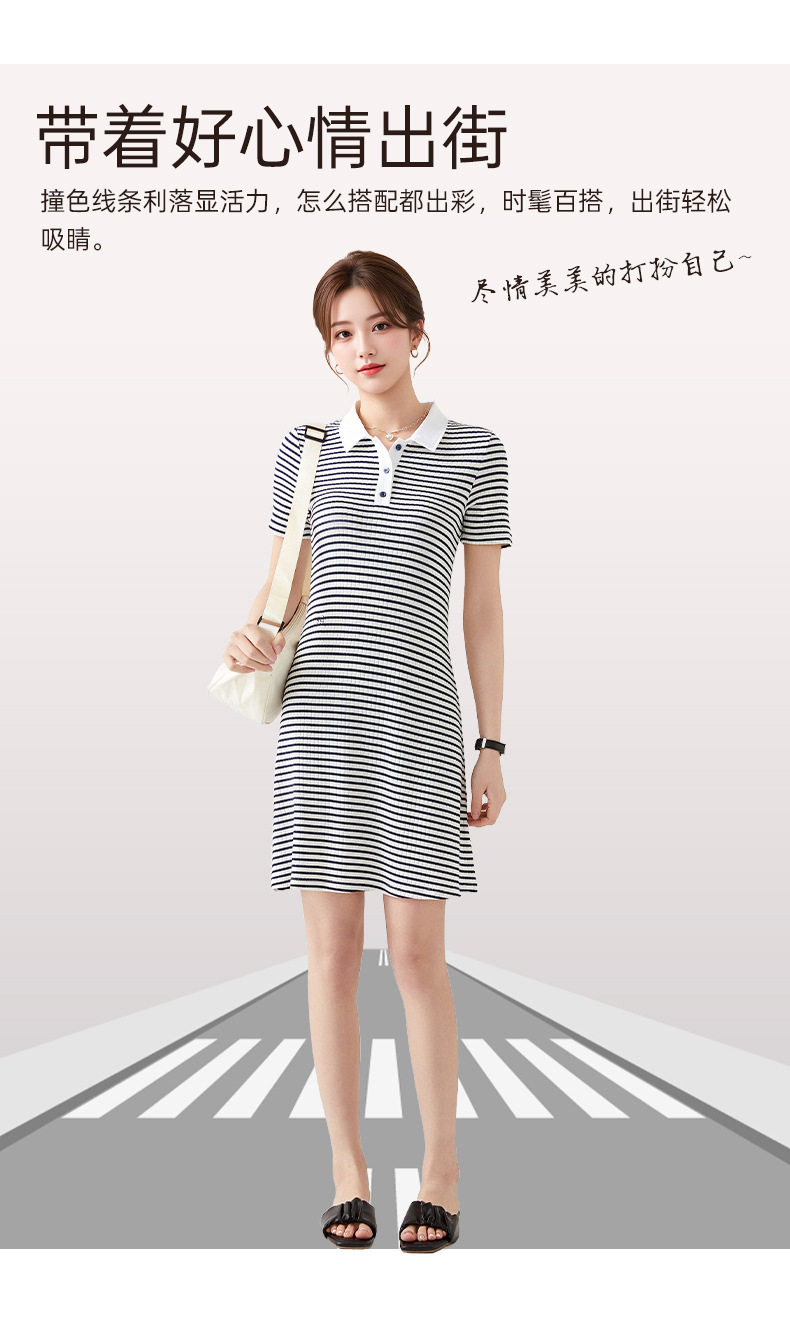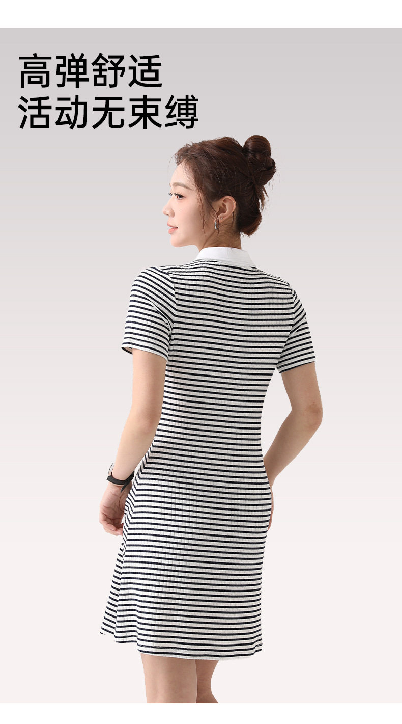 「自」全新升级【铂金会员174/天猫229/差价55】(02459)洛诗琳气质撞色条纹POLO领连衣裙2026新款韩版休闲T恤裙女