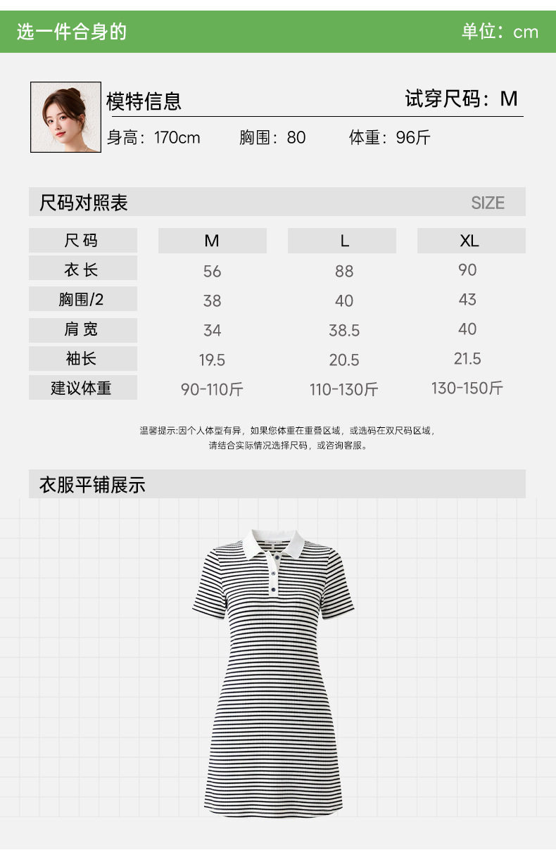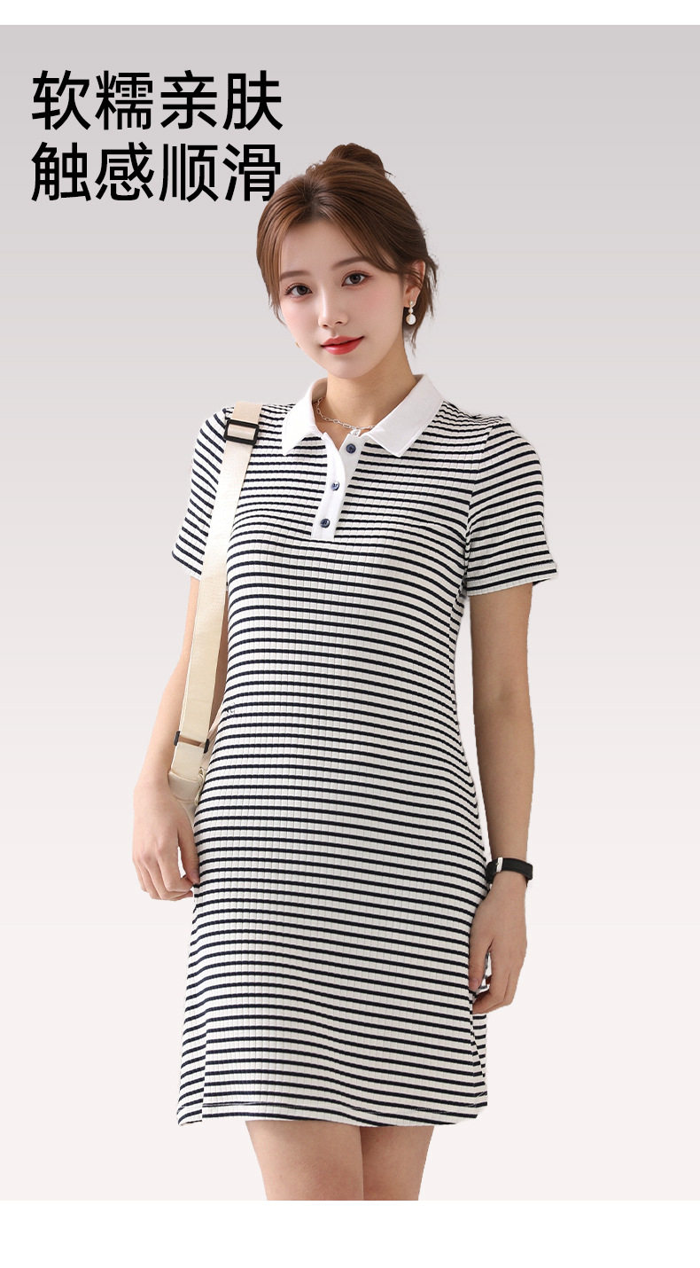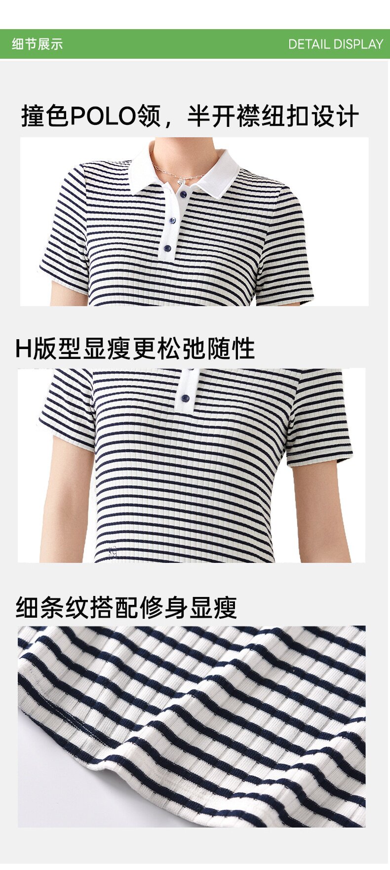 「自」全新升级【铂金会员174/天猫229/差价55】(02459)洛诗琳气质撞色条纹POLO领连衣裙2026新款韩版休闲T恤裙女