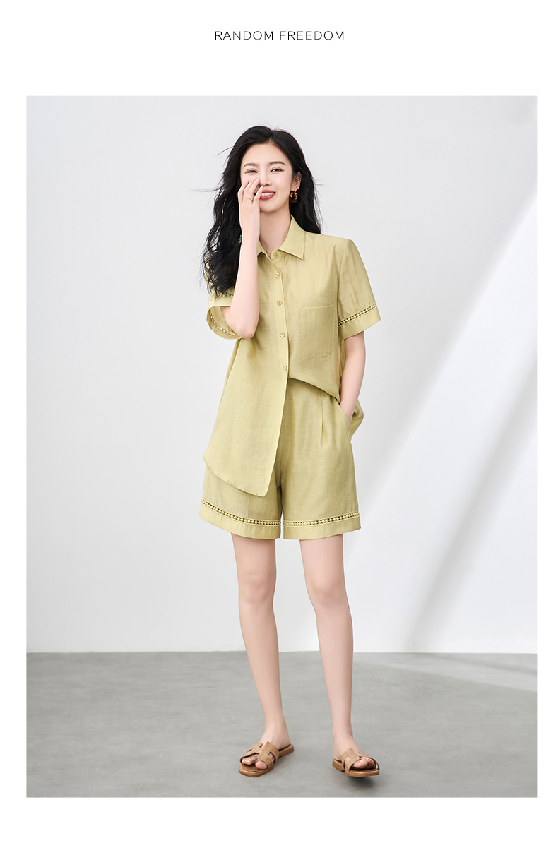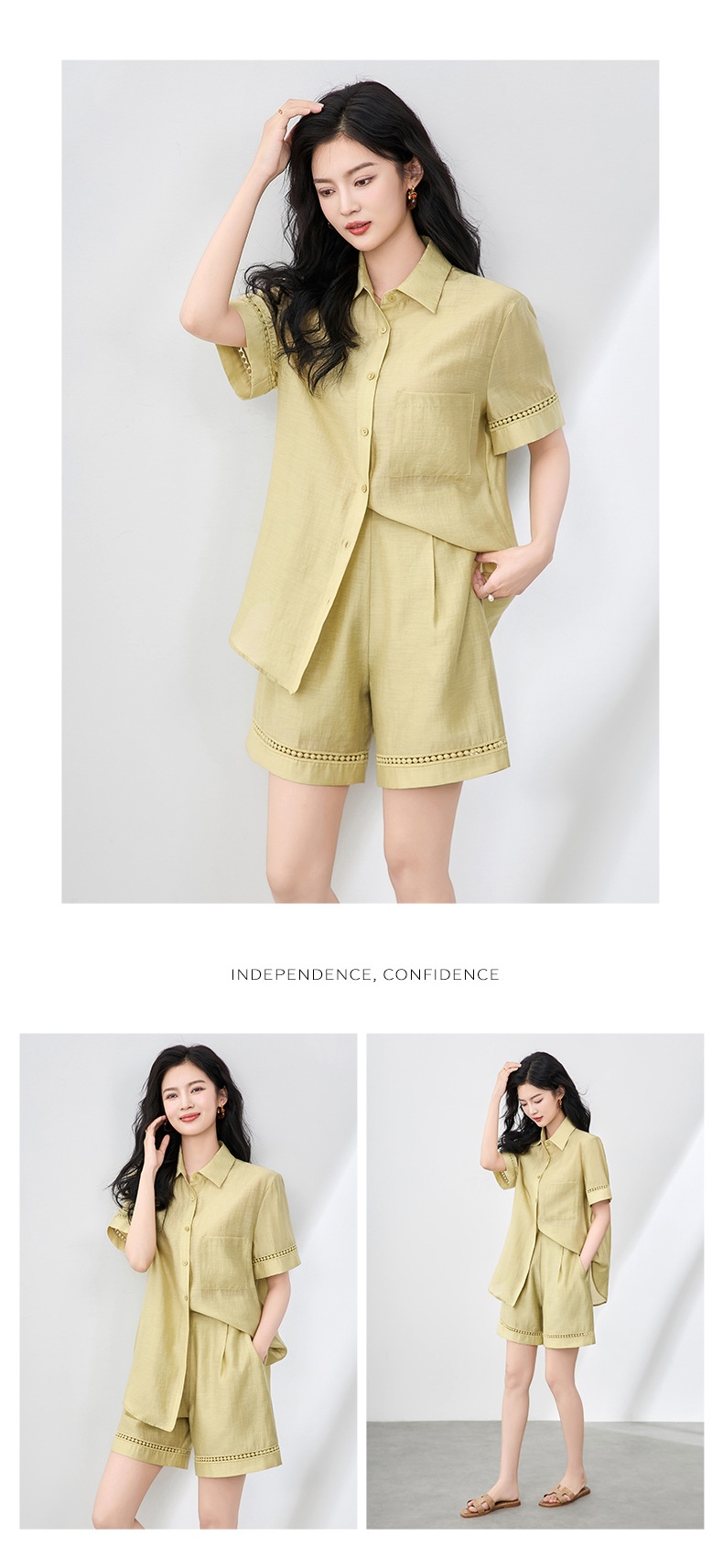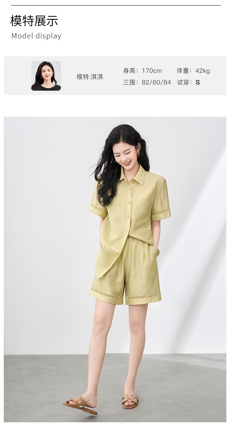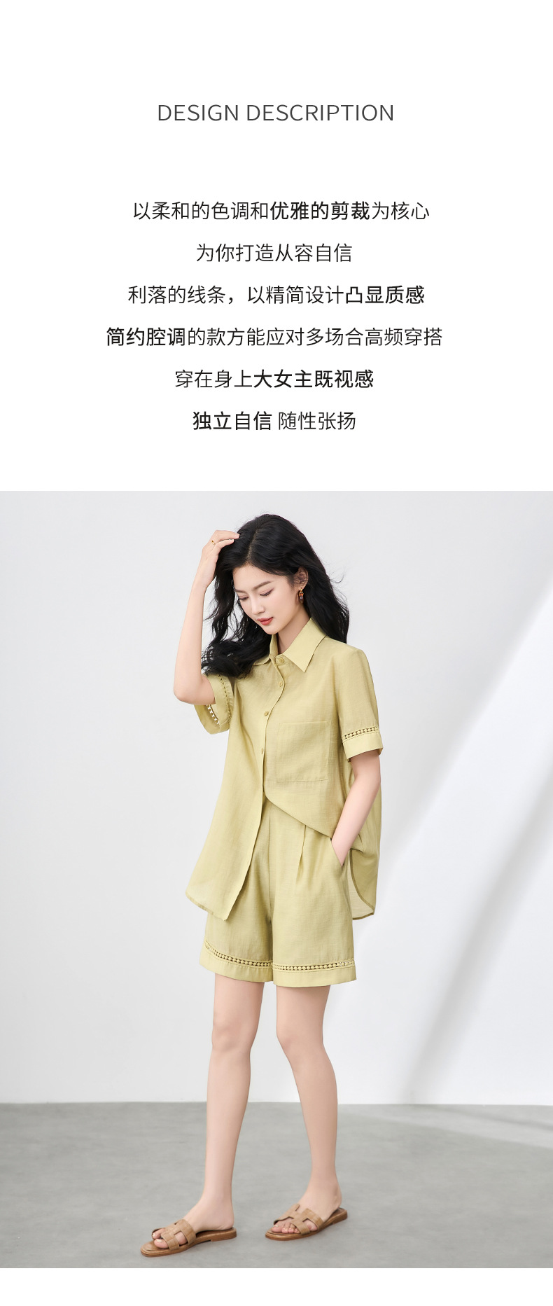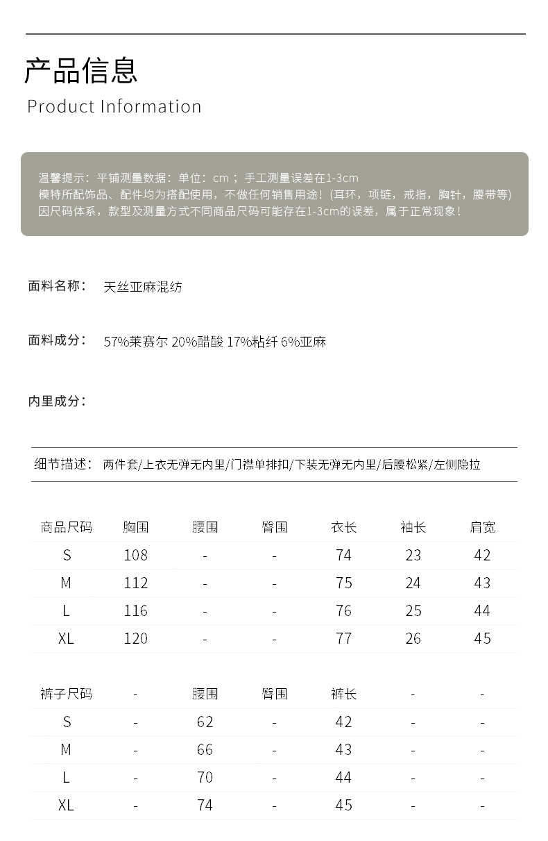「高货wl」全新升级【铂金会员367/天猫489/差价122】(99705)洛诗琳时尚天丝亚麻混纺衬衫外套休闲宽松显瘦两件套女