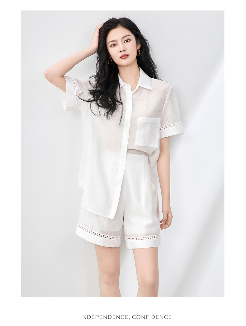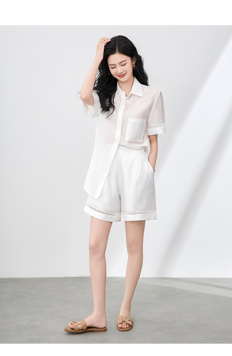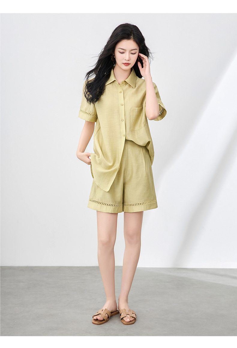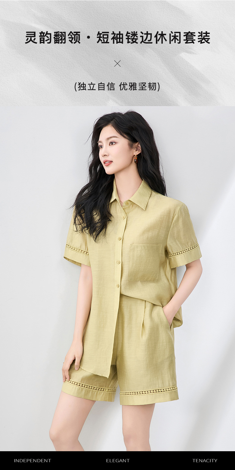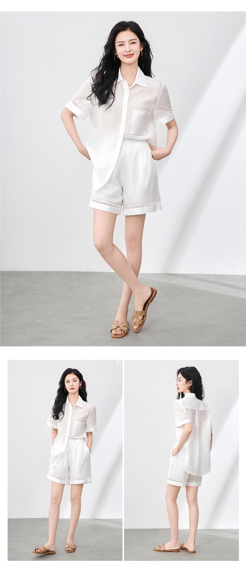 「高货wl」全新升级【铂金会员367/天猫489/差价122】(99705)洛诗琳时尚天丝亚麻混纺衬衫外套休闲宽松显瘦两件套女