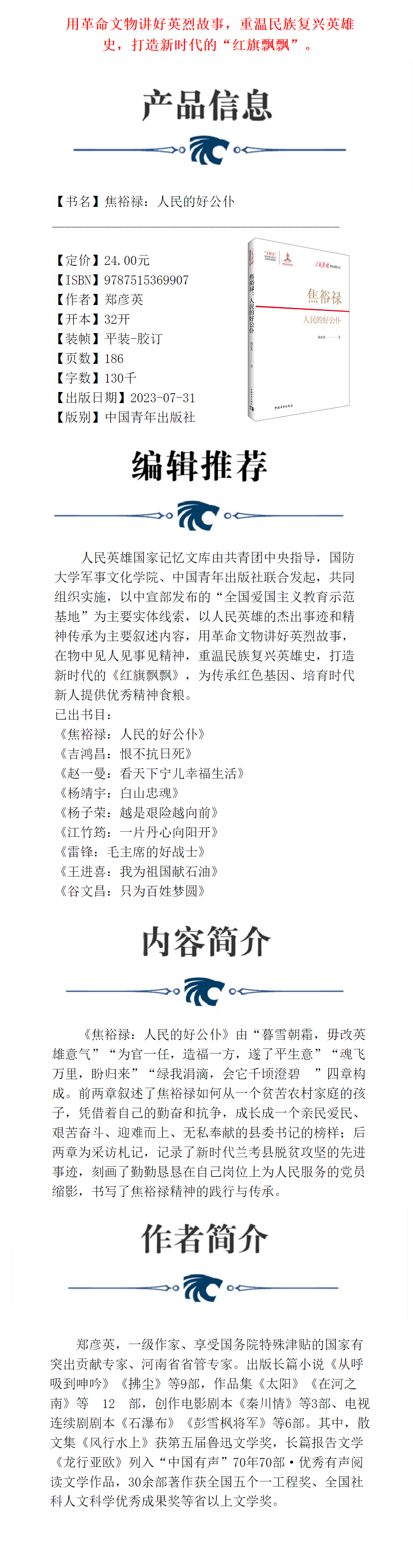 焦裕禄:人民的好公仆 郑彦英著 中国青年出版社