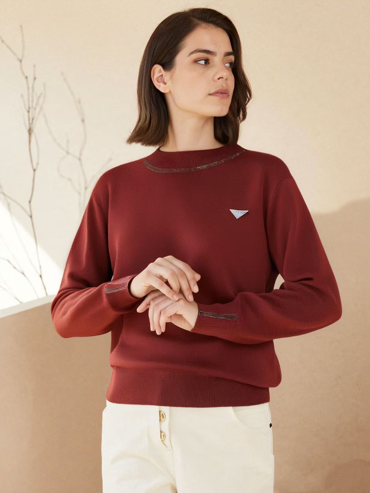 【孤品捡漏】(羊毛衫)G174 31.1%暗红带钻针织衫-喜出
