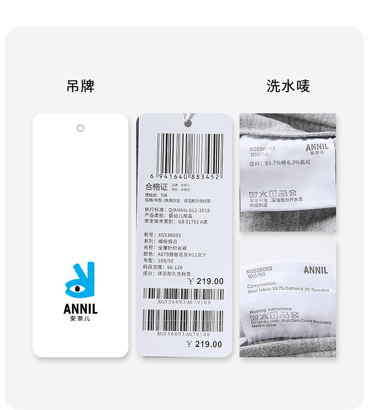 【实体店同款】女童全腰针织长裤秋季新款安奈儿童装XG536093
