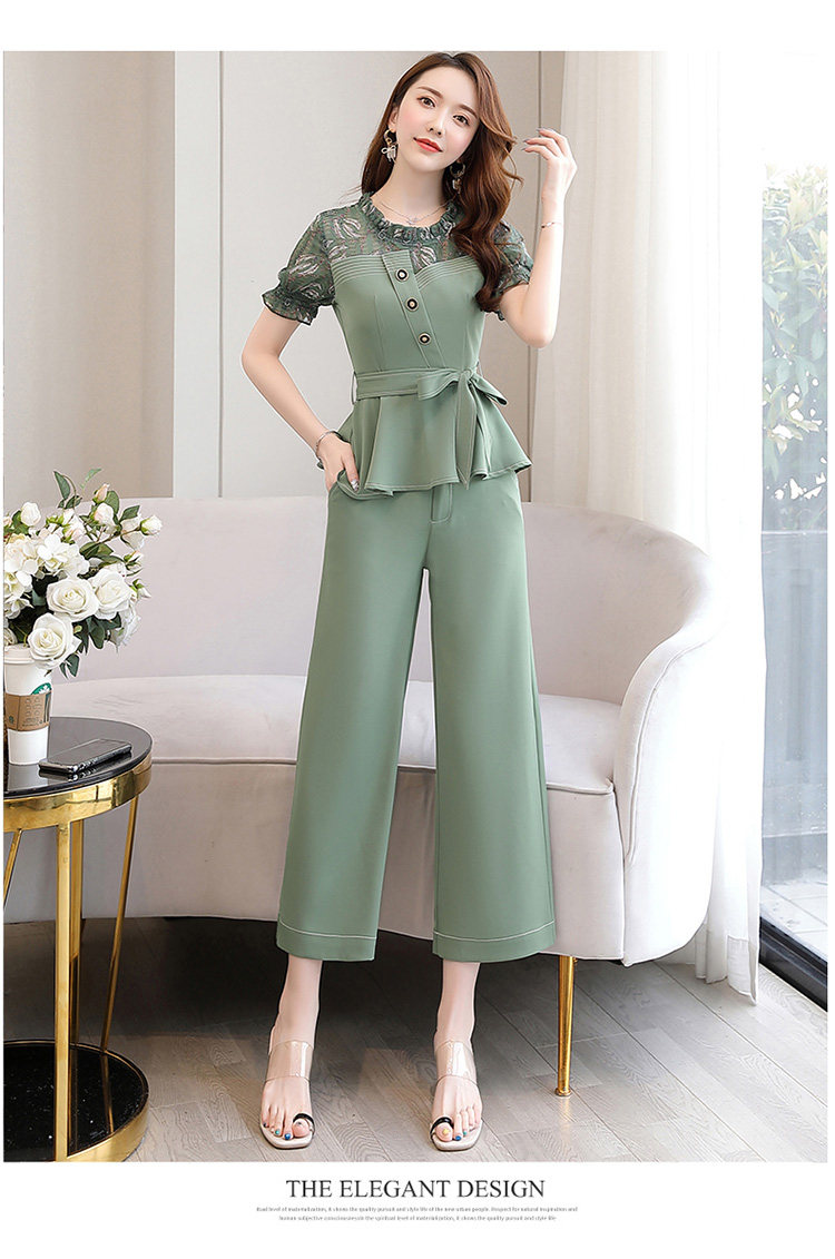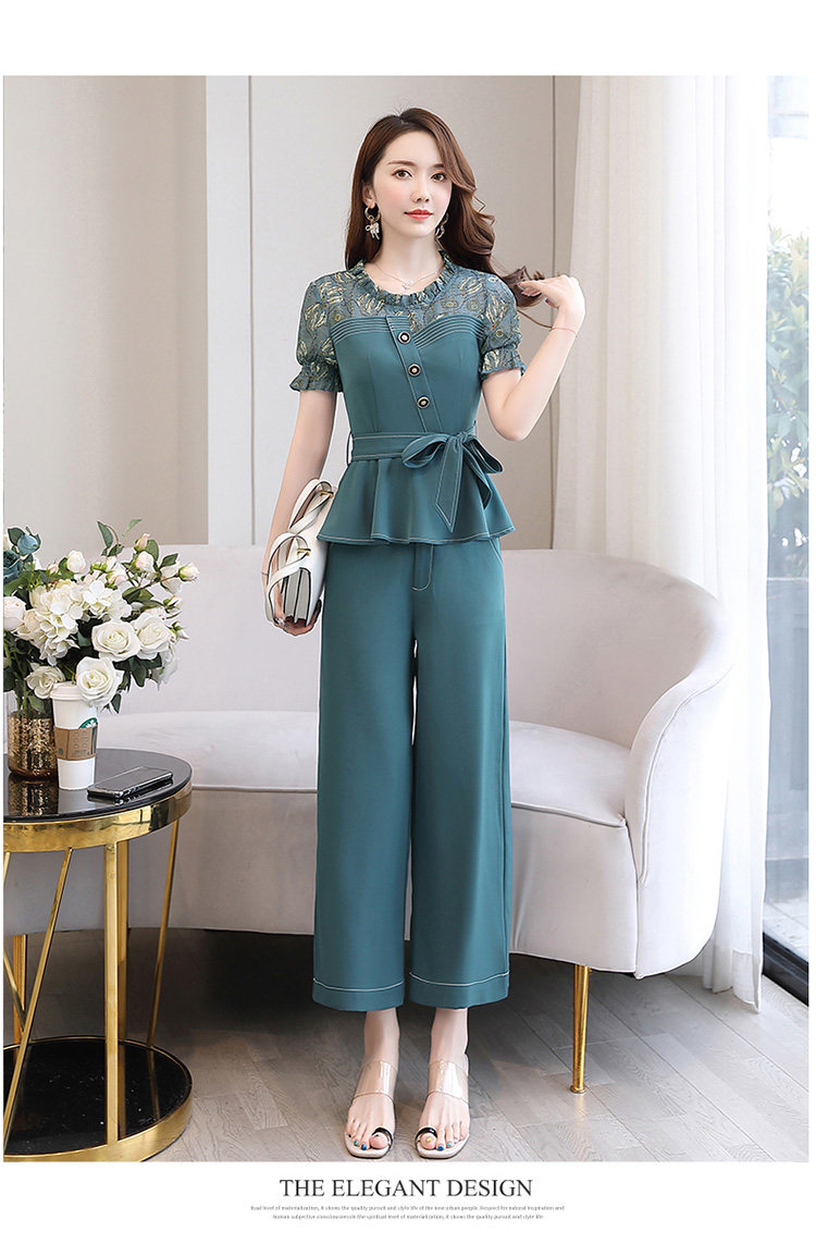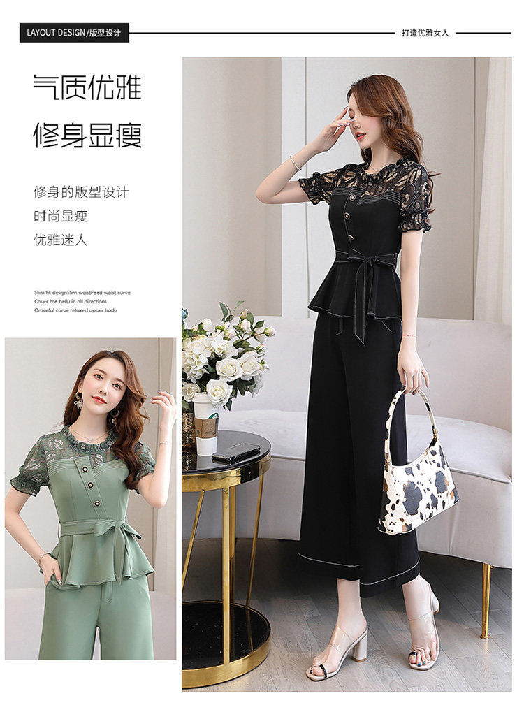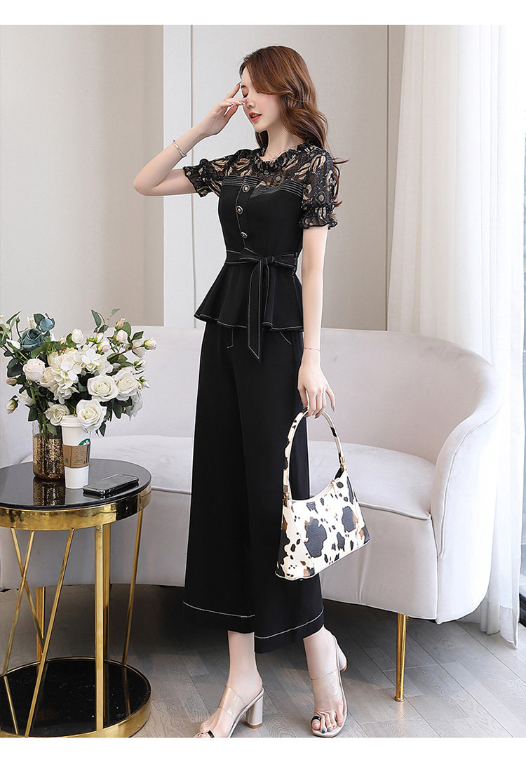 ZY-9212新款时尚韩版宽松显瘦气质阔腿裤两件套套装