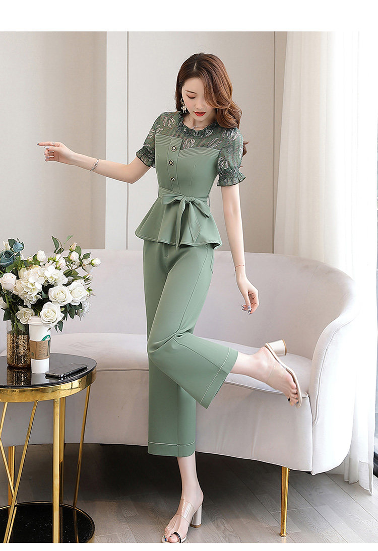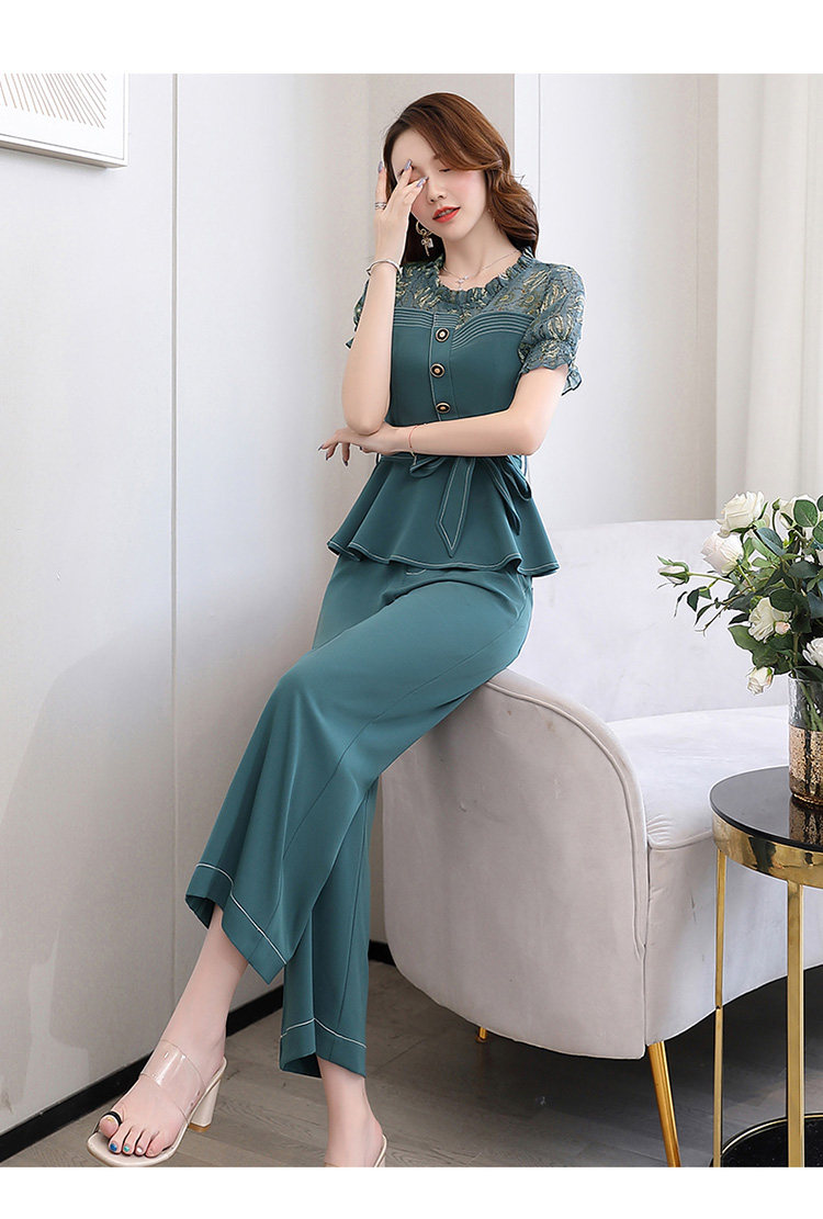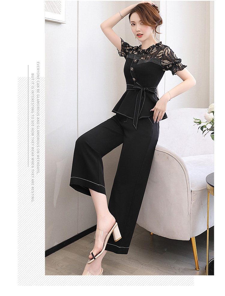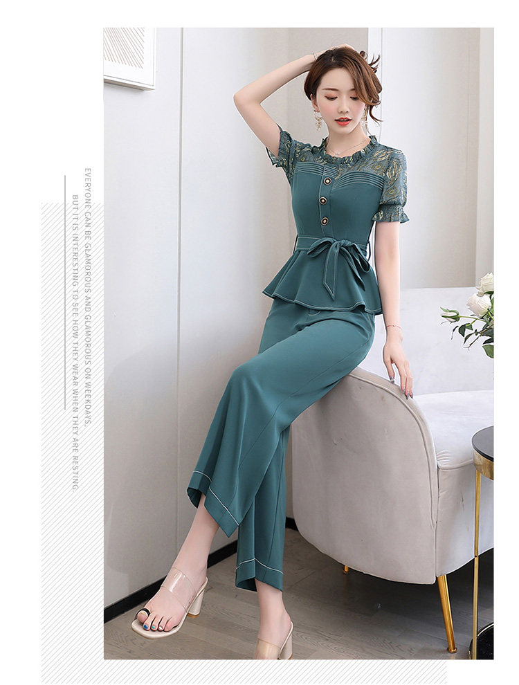 ZY-9212新款时尚韩版宽松显瘦气质阔腿裤两件套套装