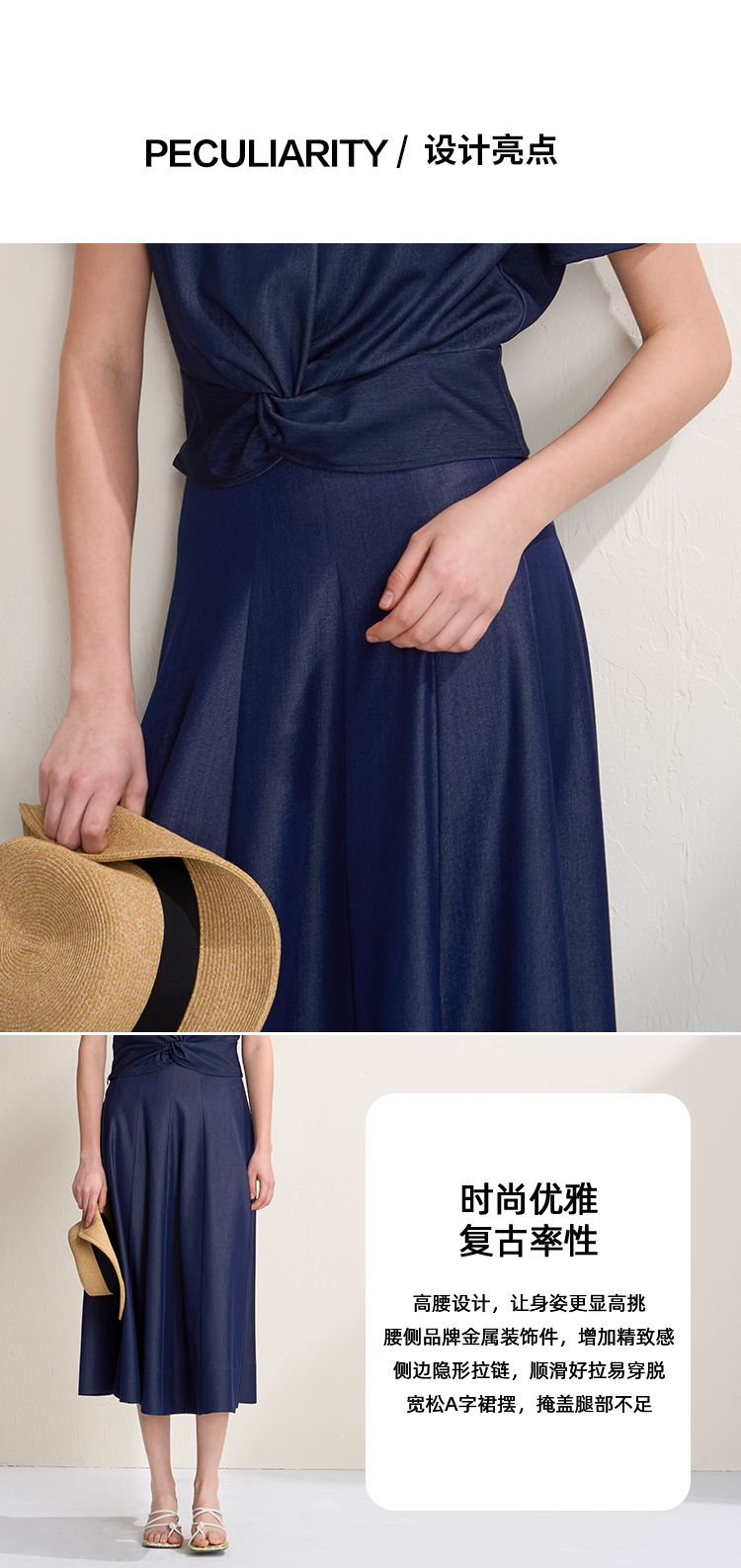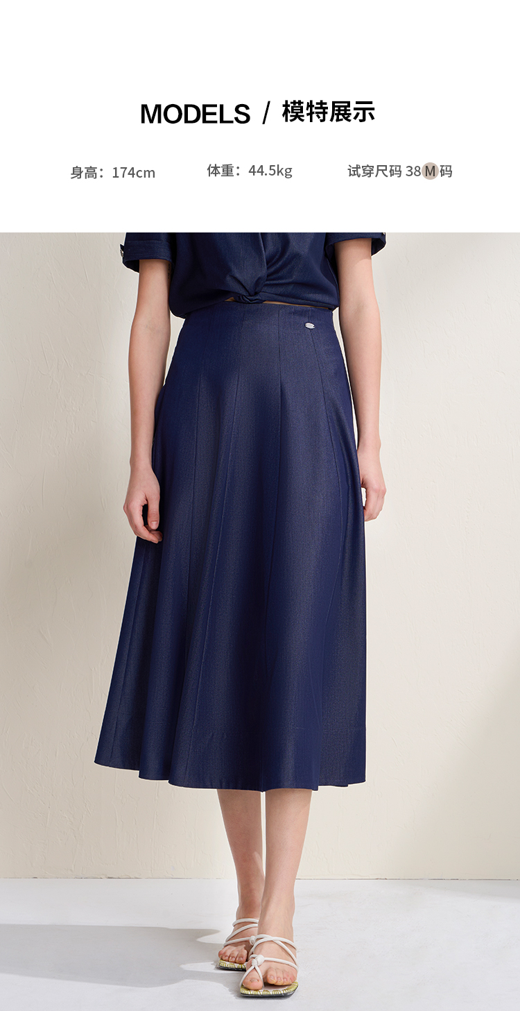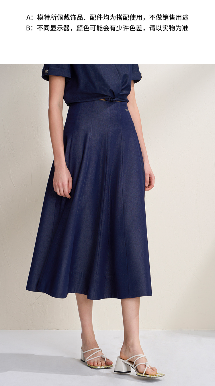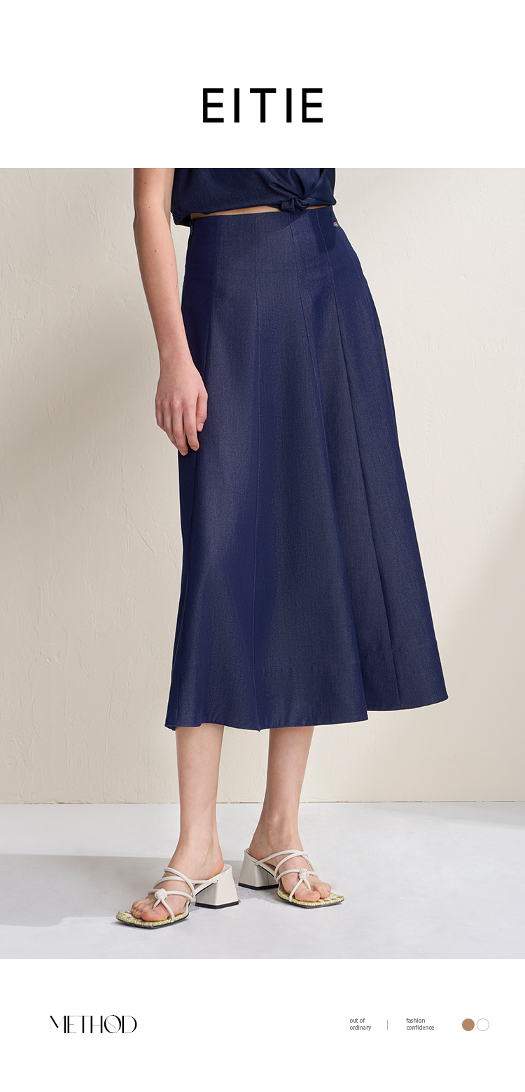 EITIE爱特爱时尚显瘦伞裙仿牛仔轻薄舒适过膝半身裙2026夏季新款B2606216