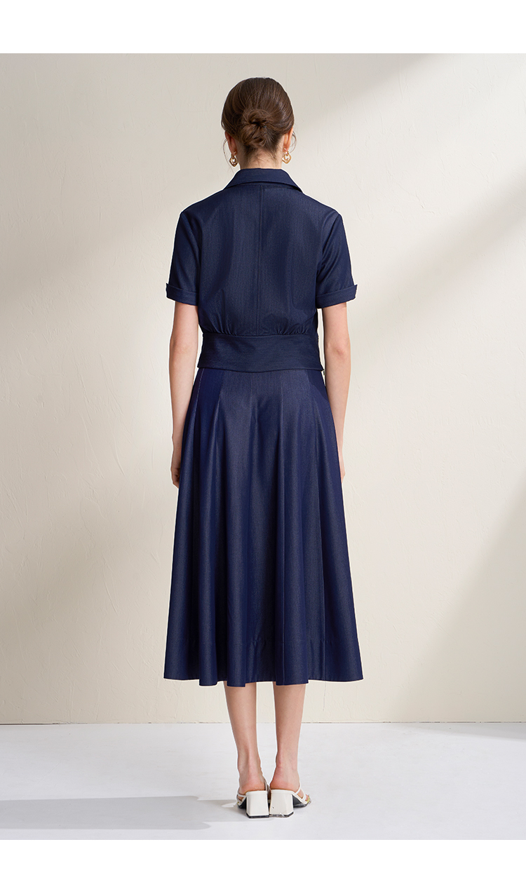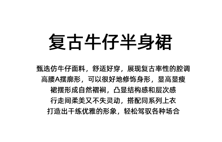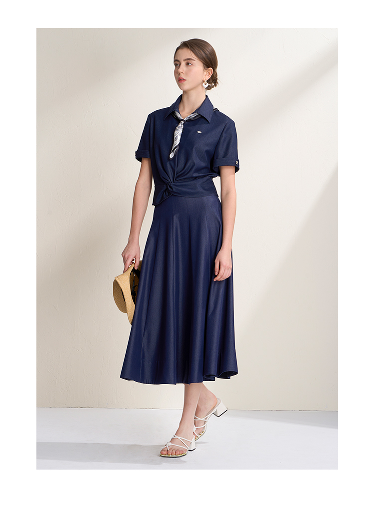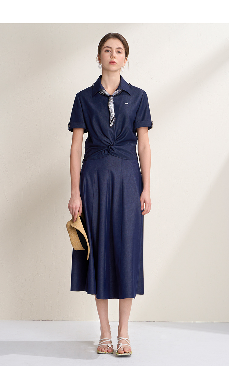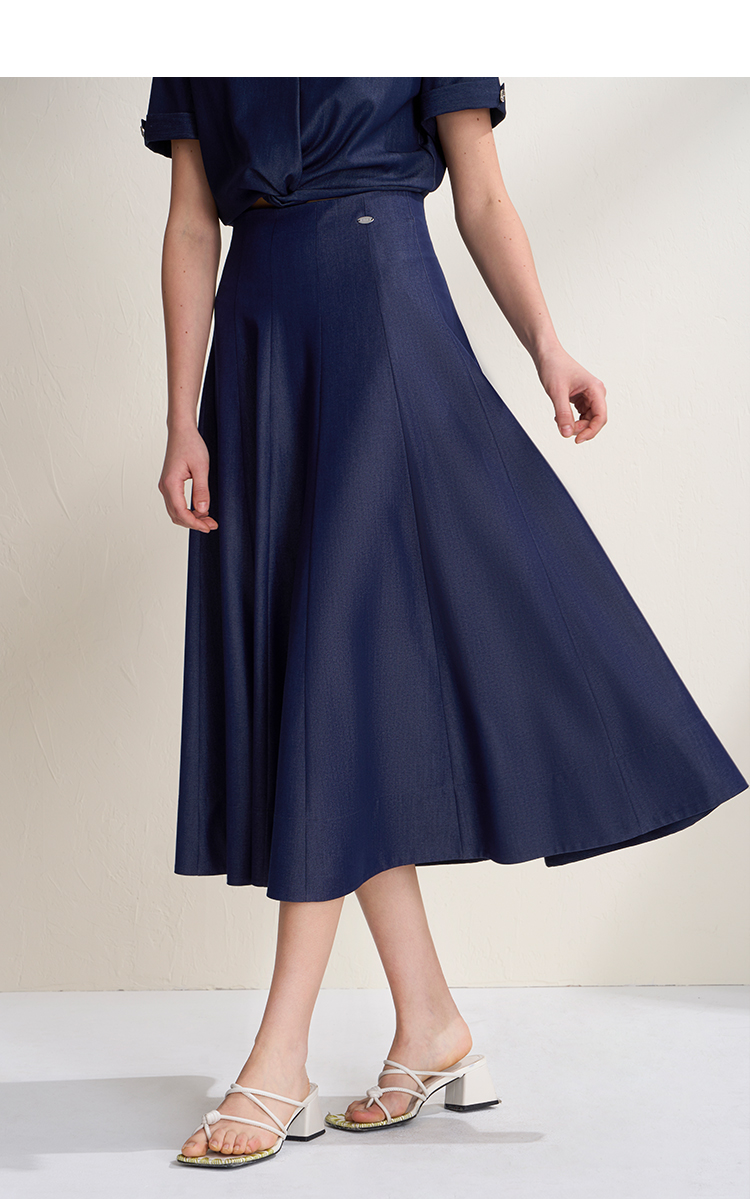 EITIE爱特爱时尚显瘦伞裙仿牛仔轻薄舒适过膝半身裙2026夏季新款B2606216