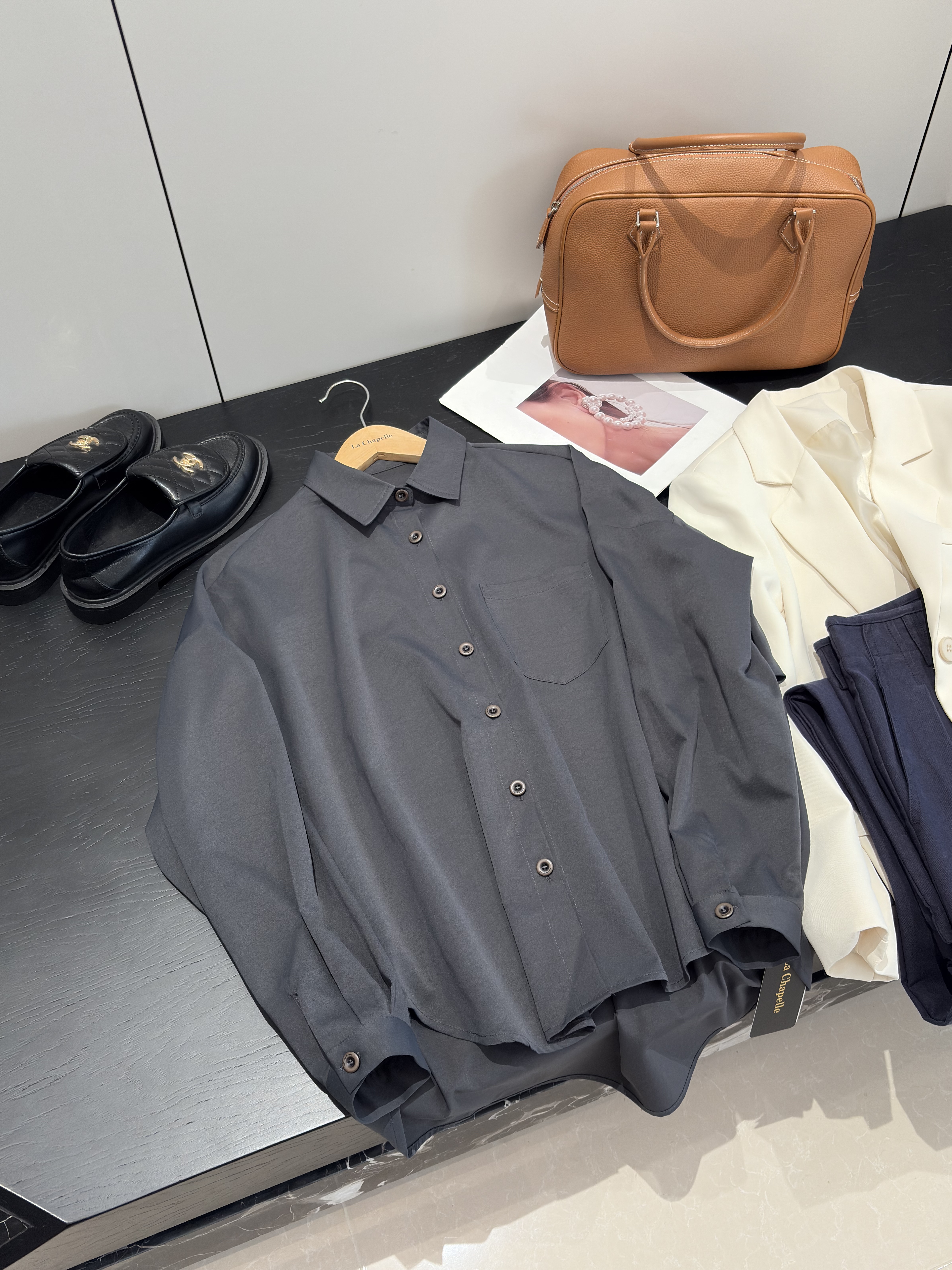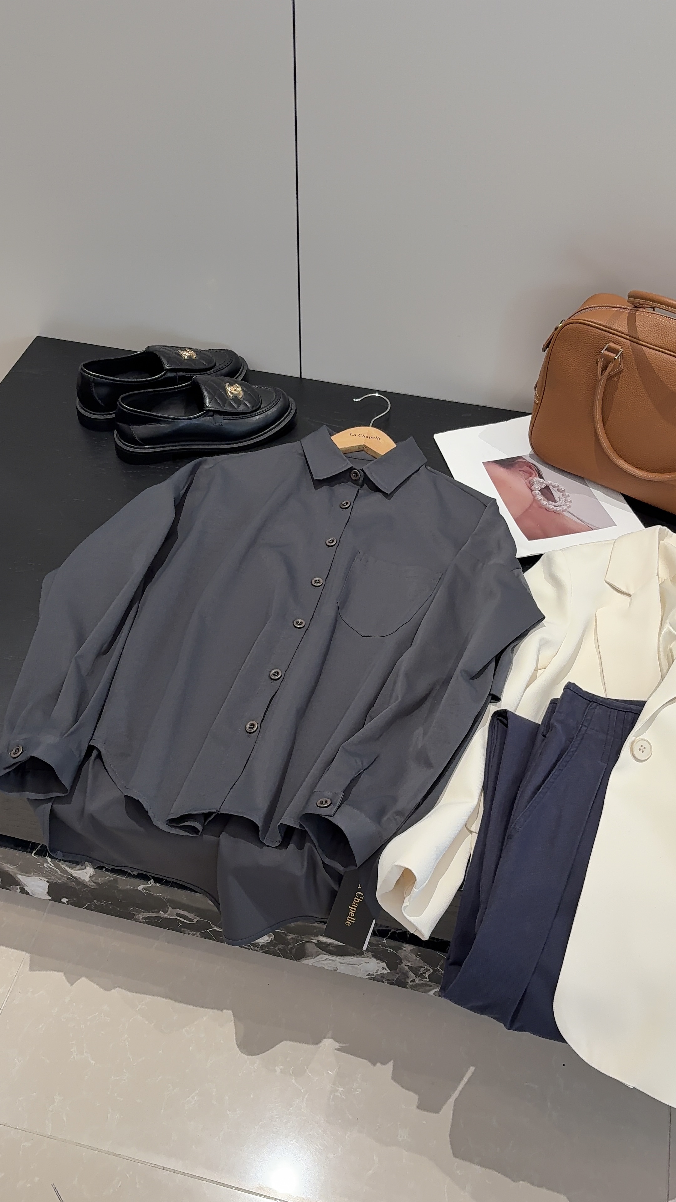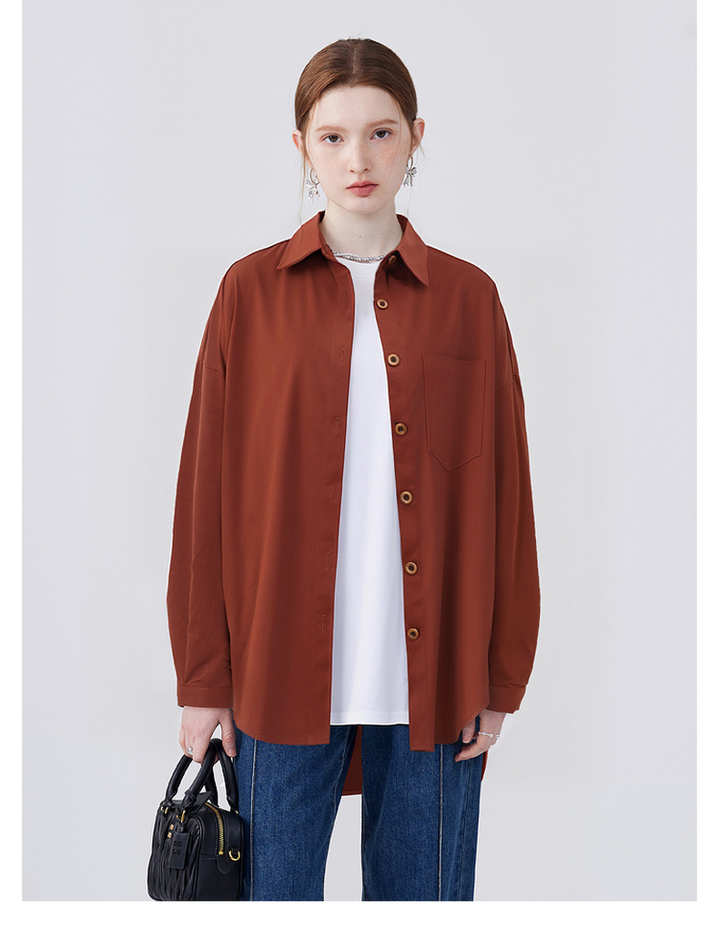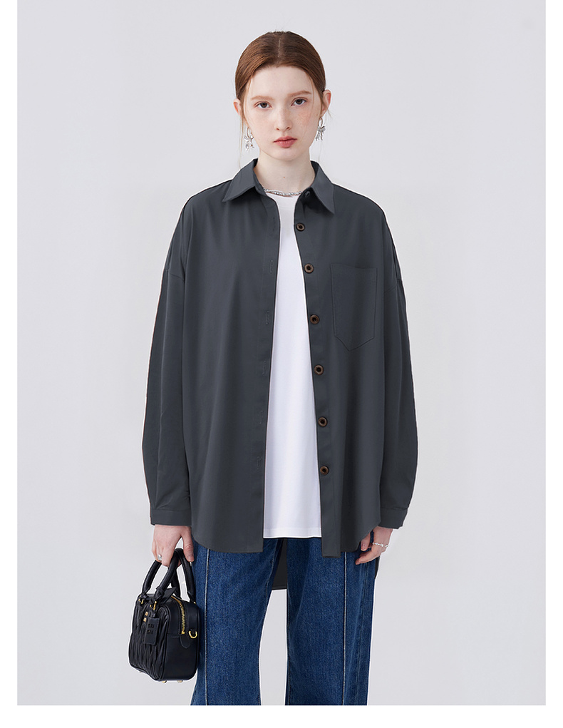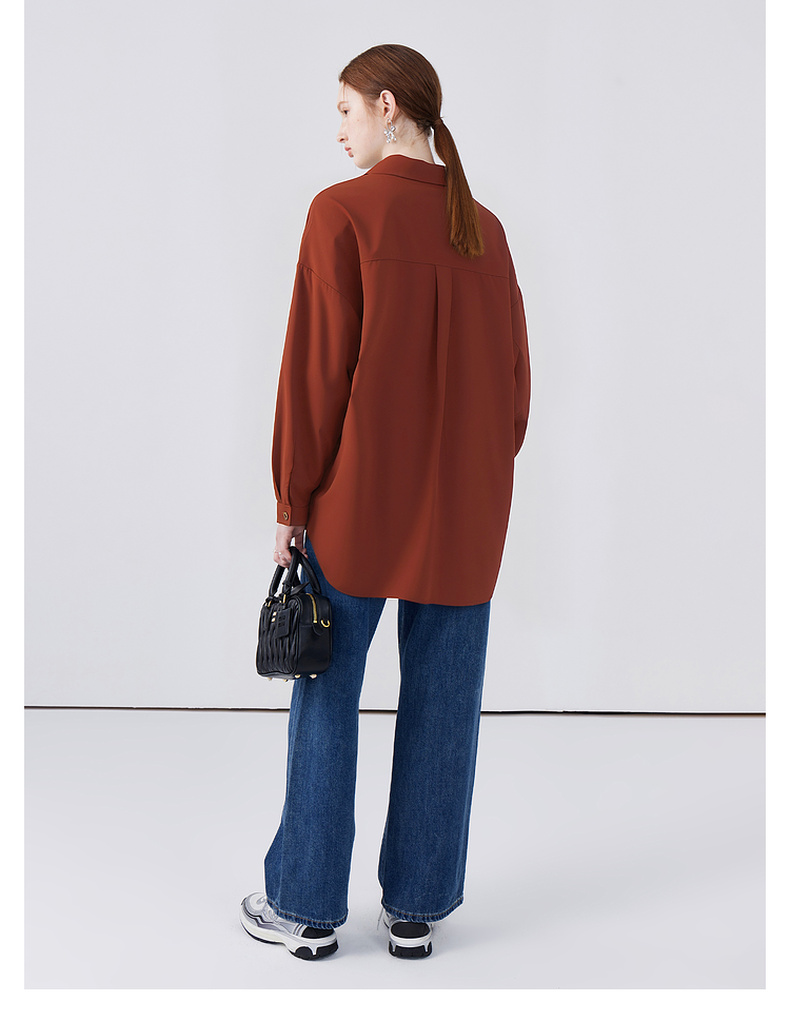 天猫同步【莱赛尔天丝+软而立挺】拉夏贝尔/La Chapelle单口袋翻领长袖衬衫女秋季新款宽松休闲通勤衬衣