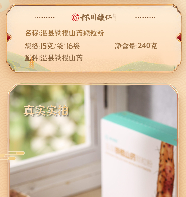老字号怀川臻仁100%垆土铁棍山药颗粒粉 健康家庭常备240g/盒