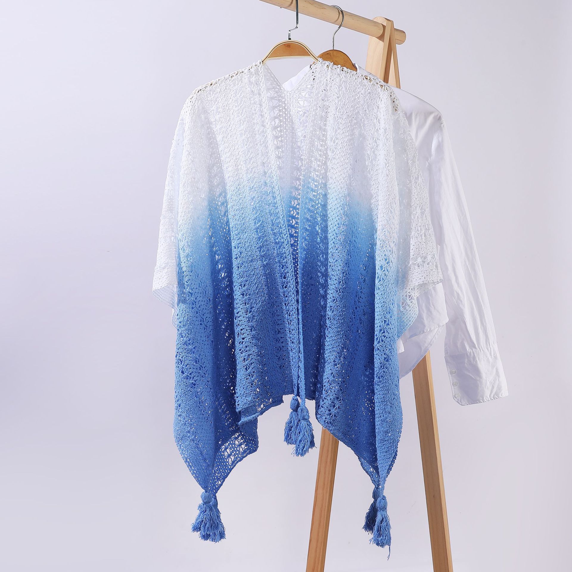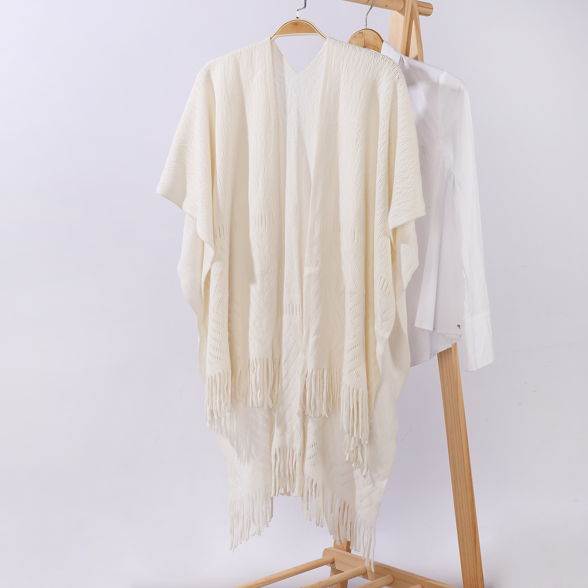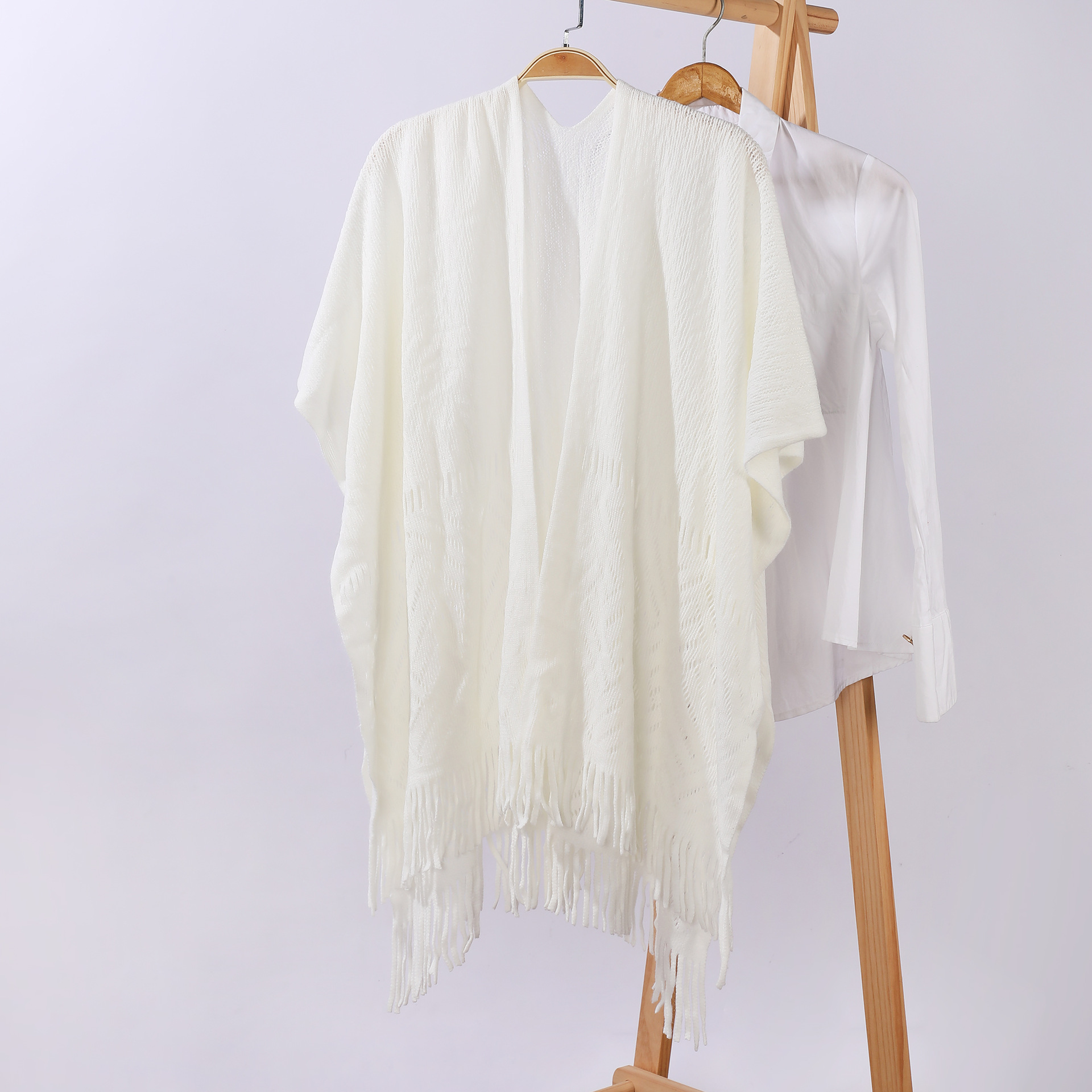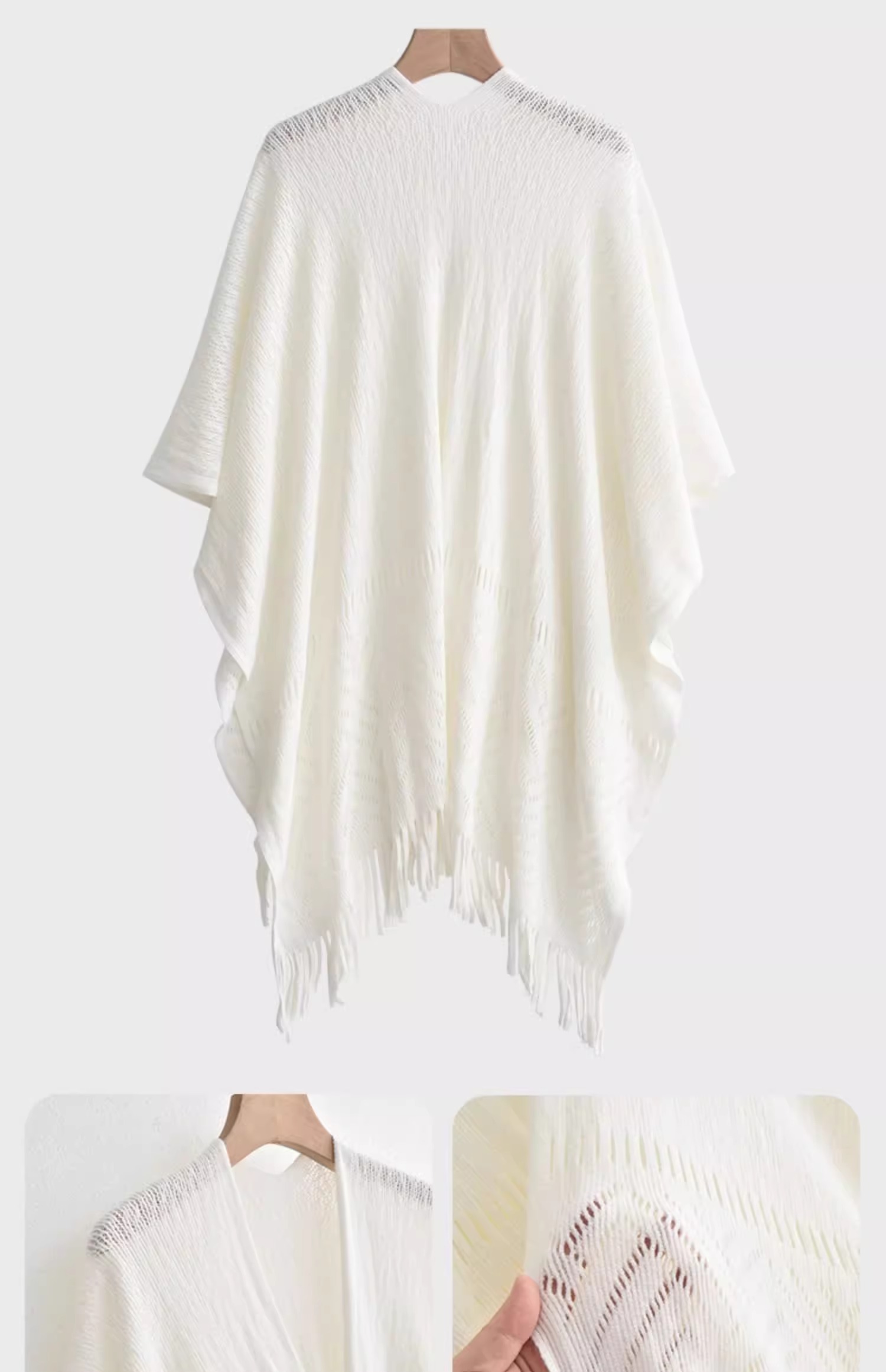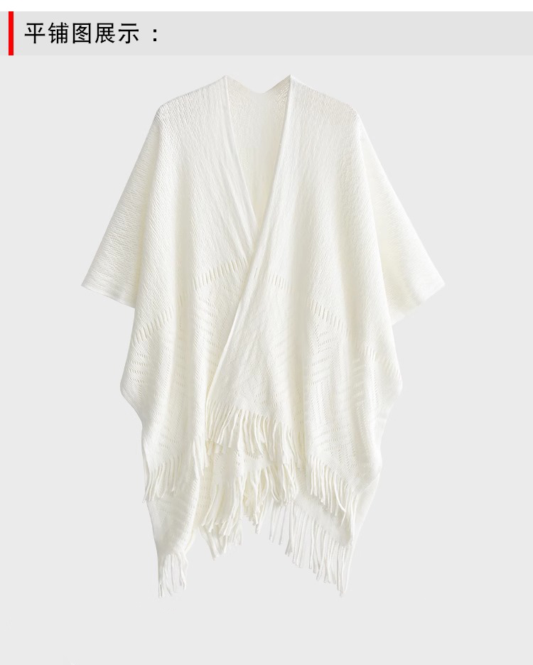 雀说 针织披肩女镂空流苏披风外搭