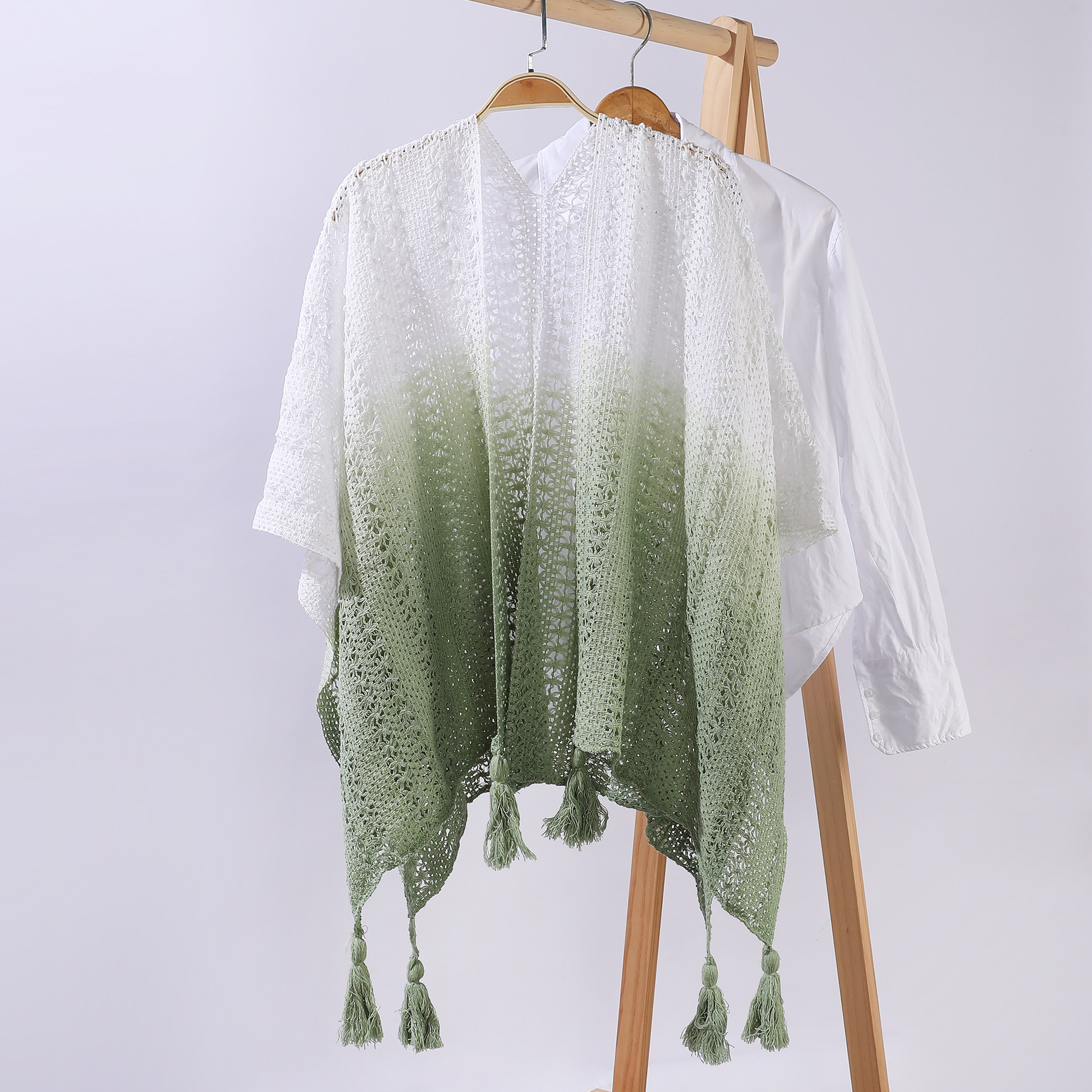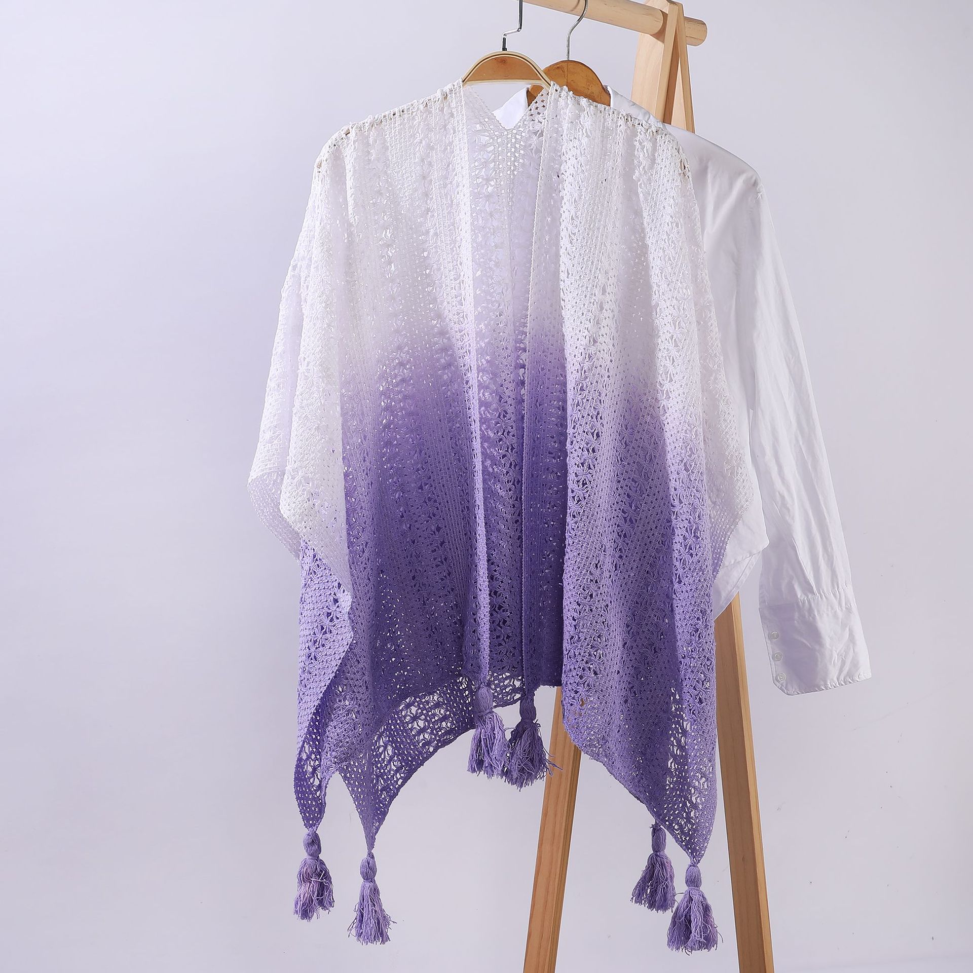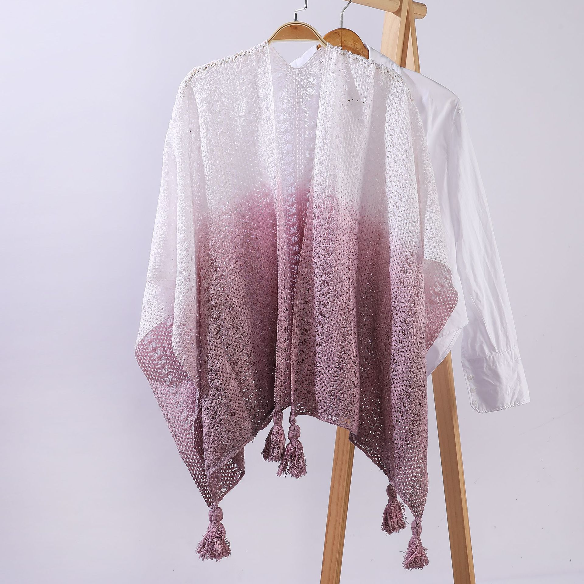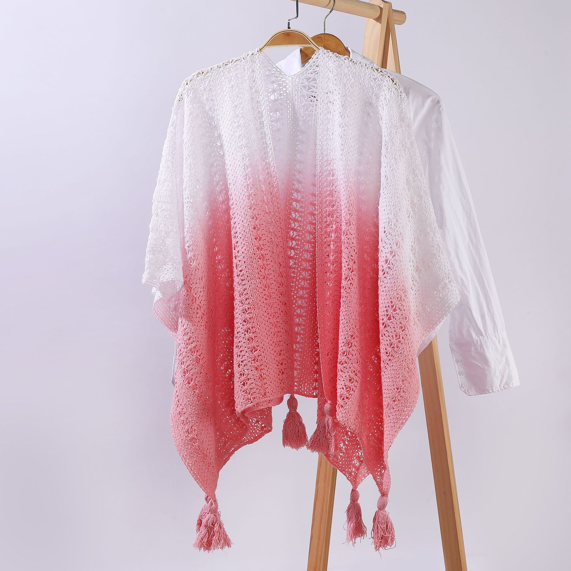 雀说 针织披肩女镂空流苏披风外搭