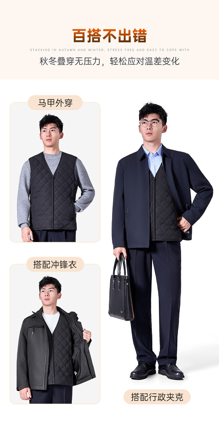 【通勤石墨烯棉马甲内胆】商务休闲马甲外套防风保暖无袖棉服棉衣 BZ503