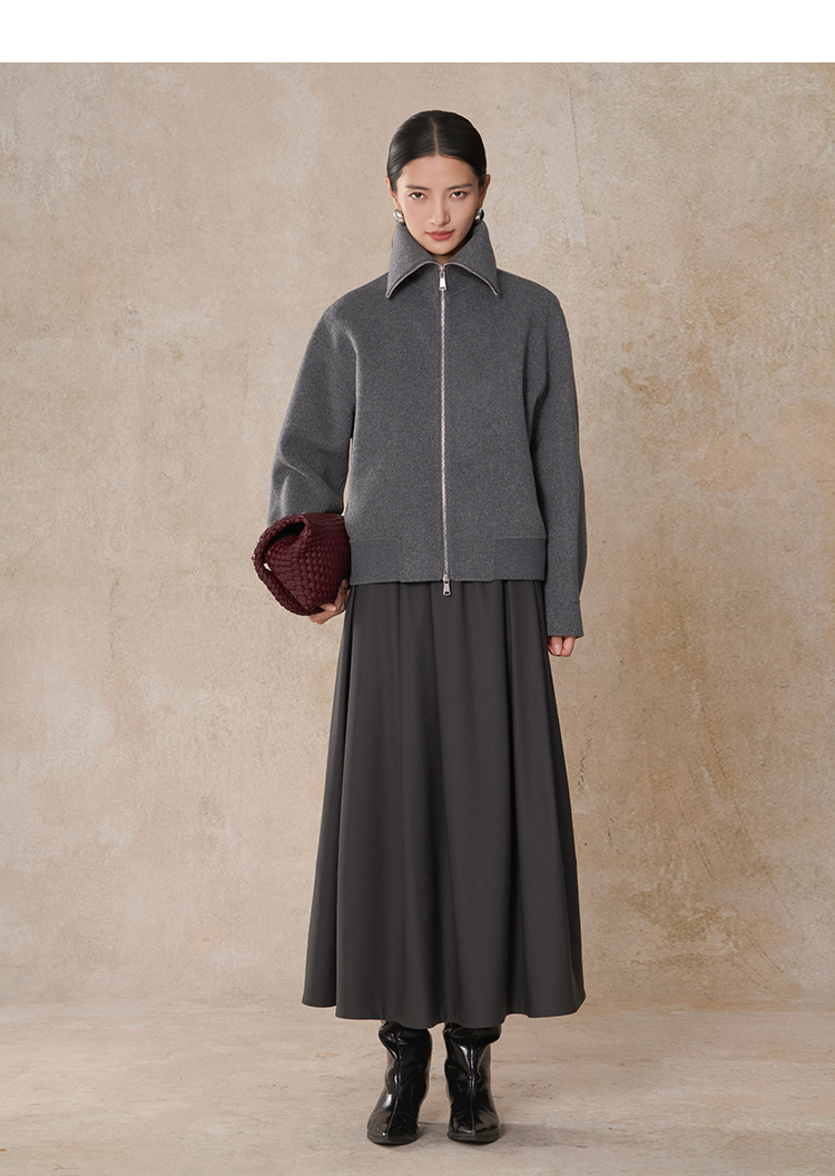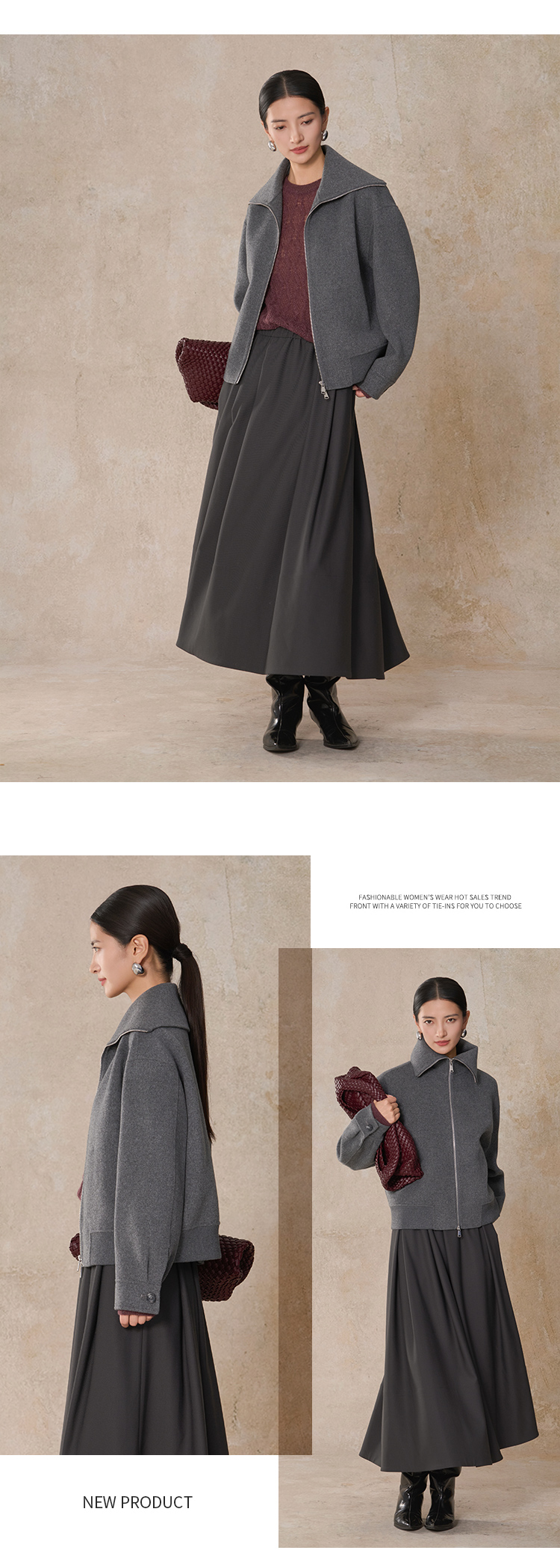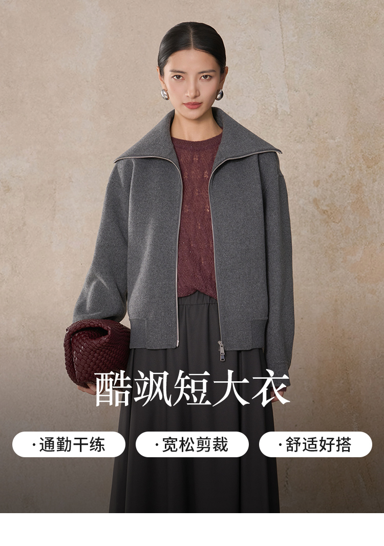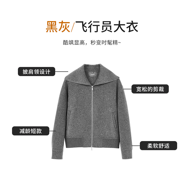 【商场同款】CNC5037 “ 飞行员大衣 ” 披肩领设计别致 纯羊毛短大衣外套