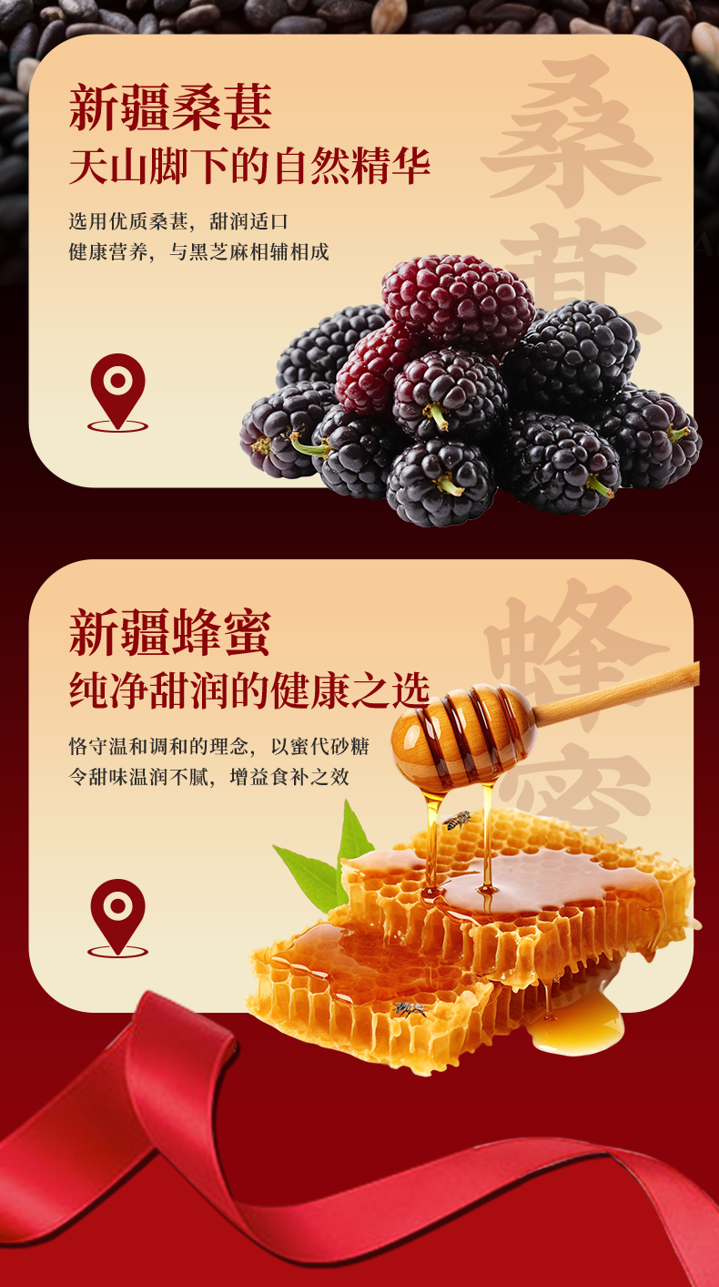 【配料】黑芝麻、麦芽糖、桑葚、蜂蜜