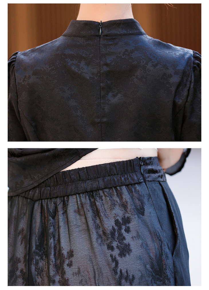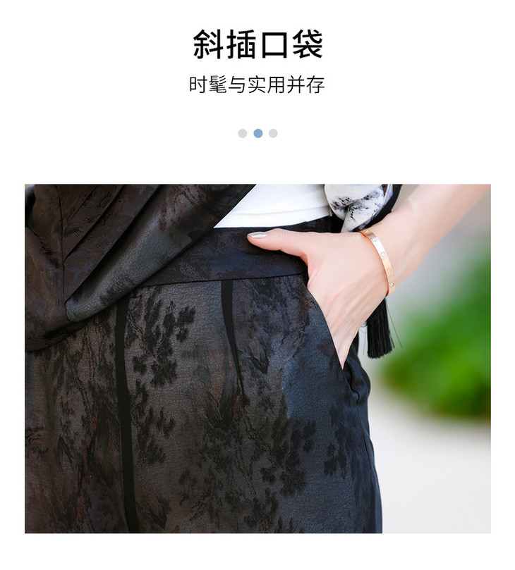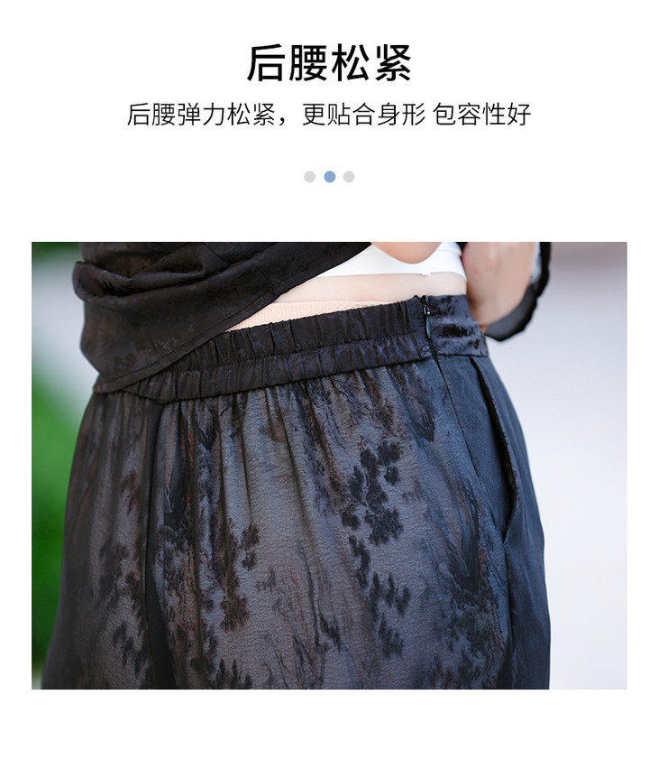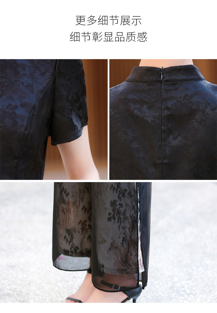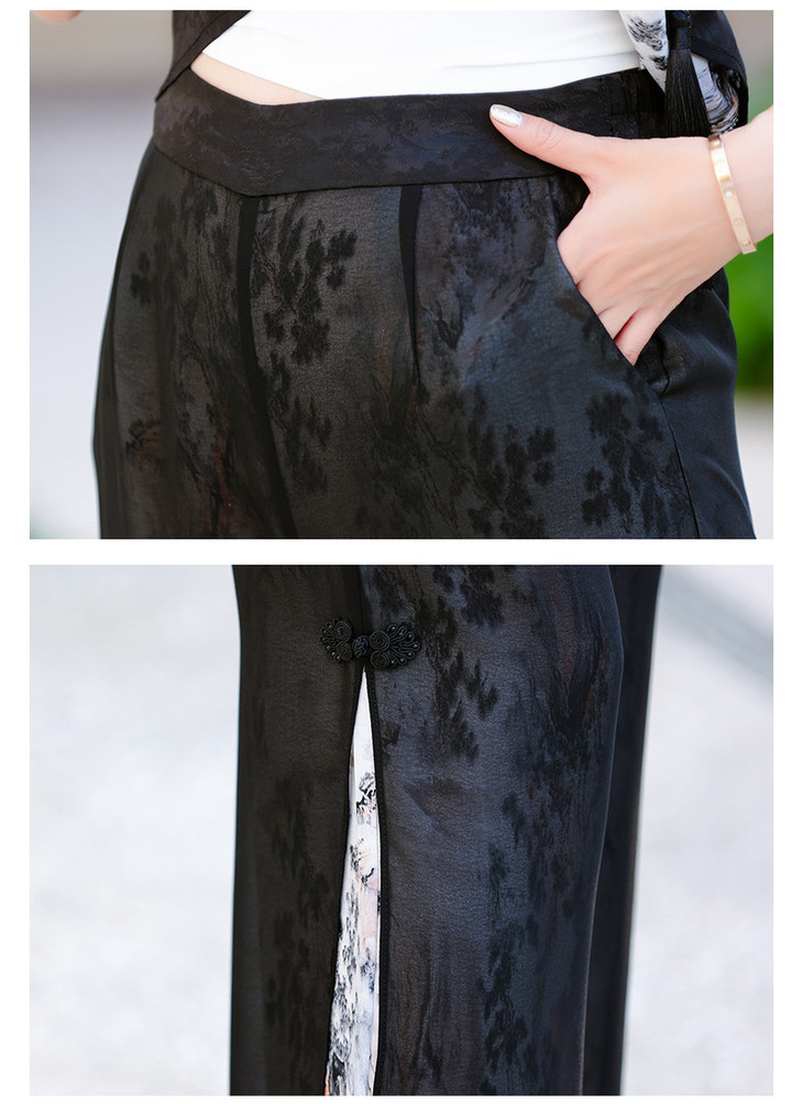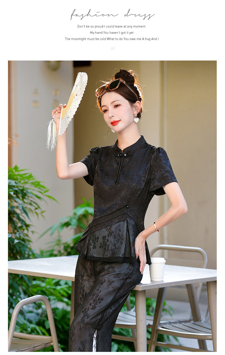 国风套装夏季收腰褶皱小衫直筒开衩阔腿裤两件套 QYM-TB-FD1195-Y