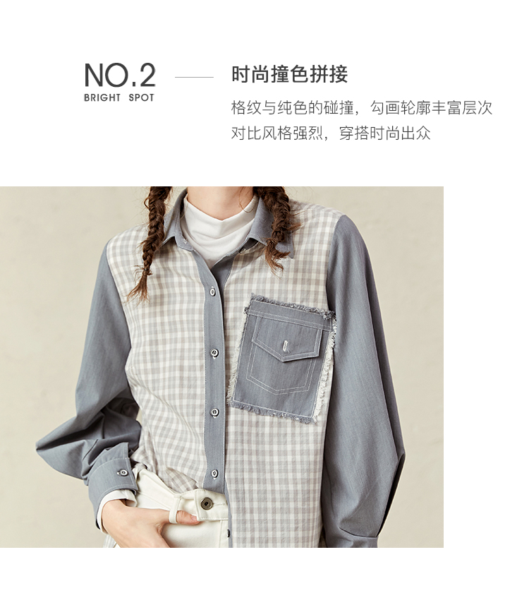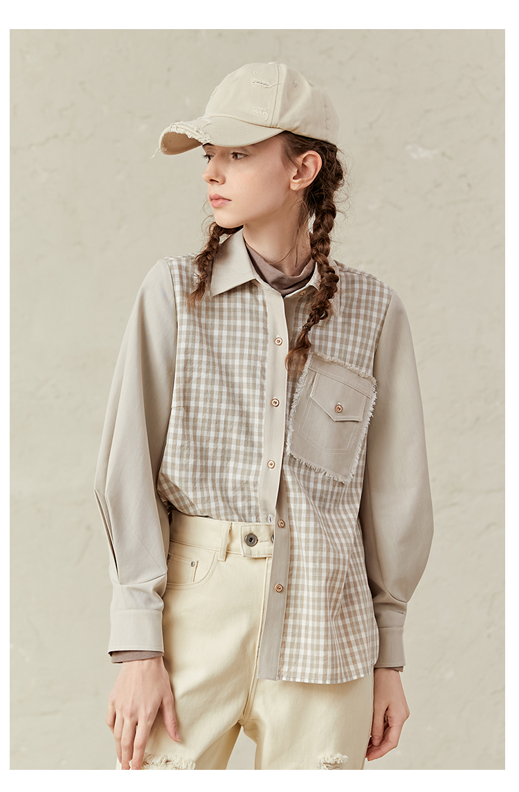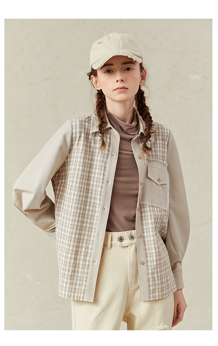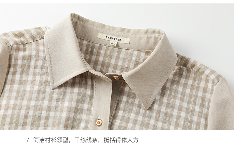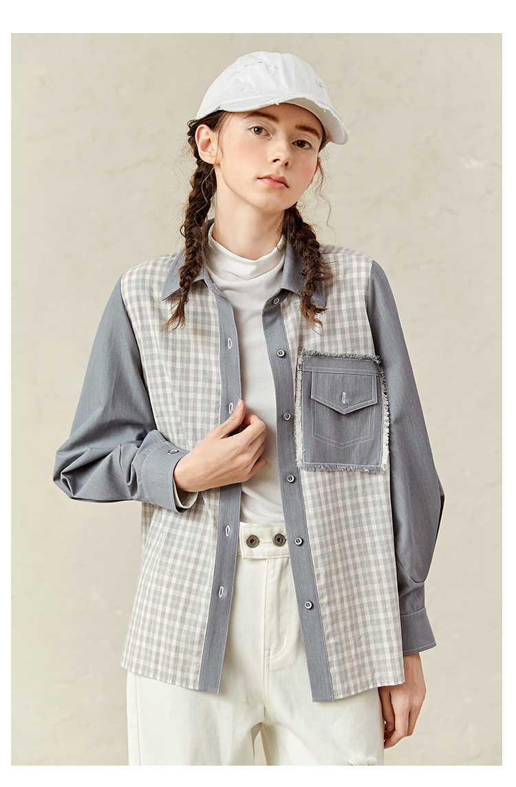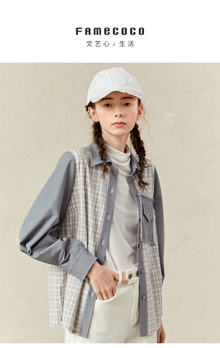 Famecoco范可儿格子衬衫女设计感小众拼接上衣F221BA025