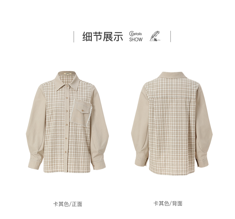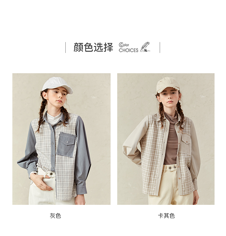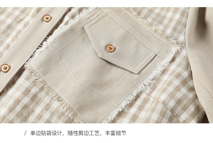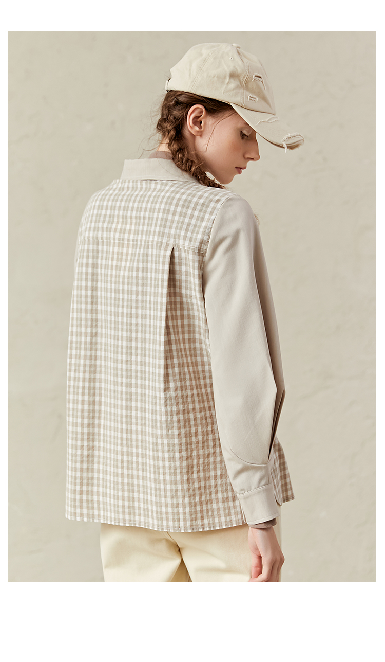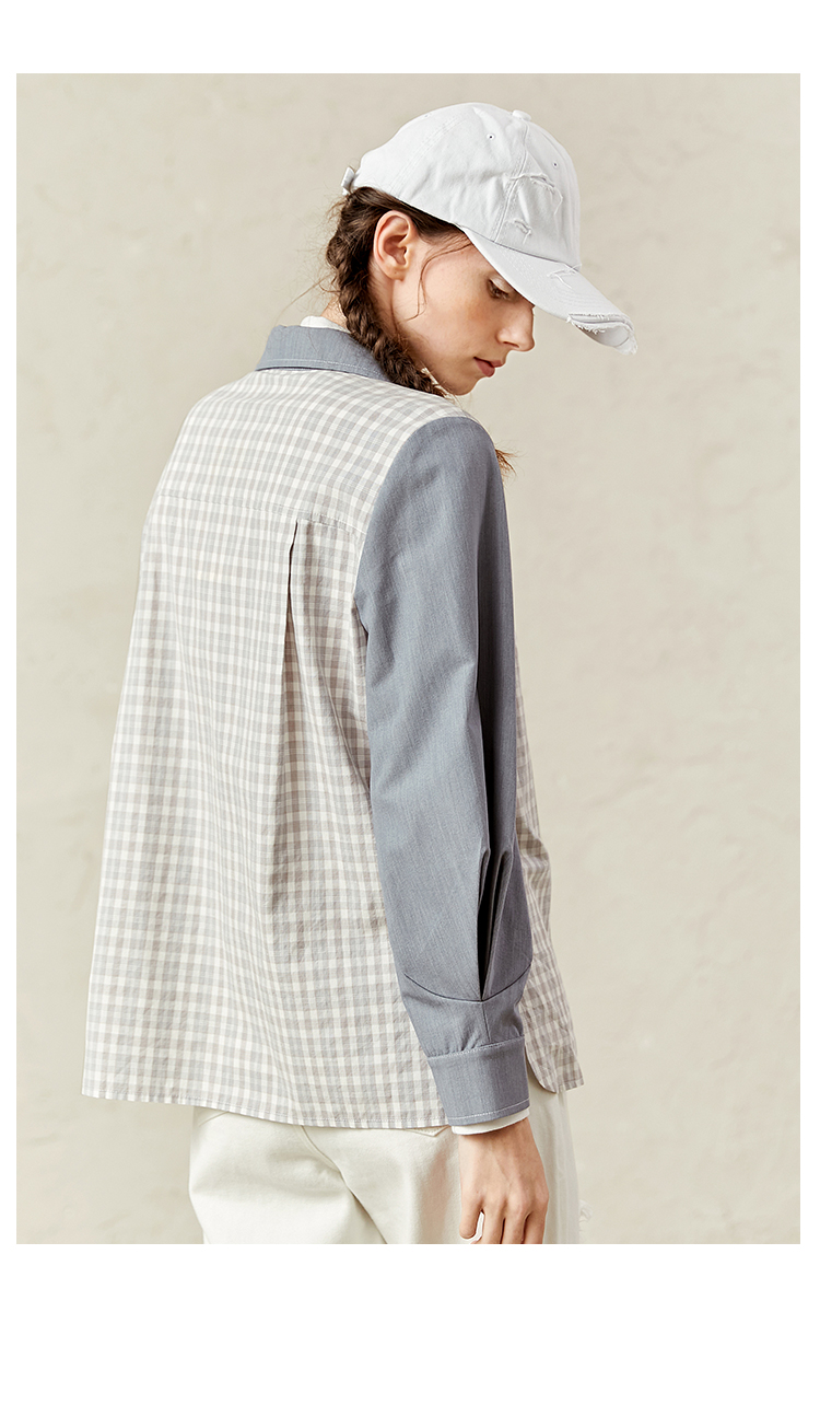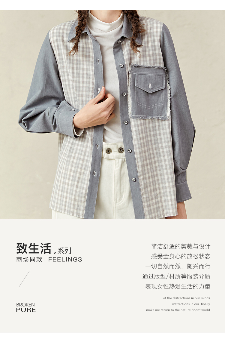 Famecoco范可儿格子衬衫女设计感小众拼接上衣F221BA025
