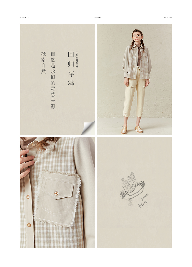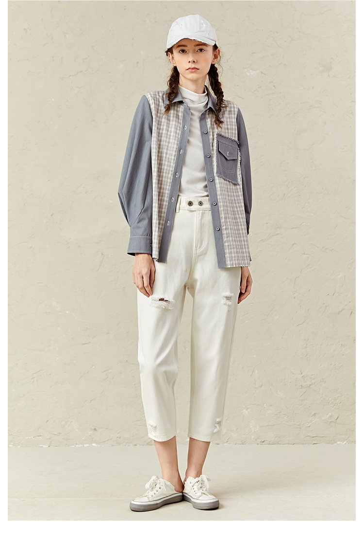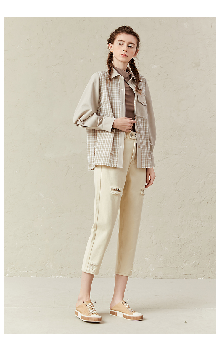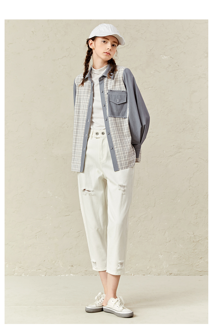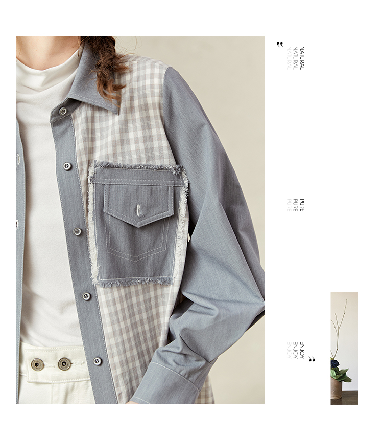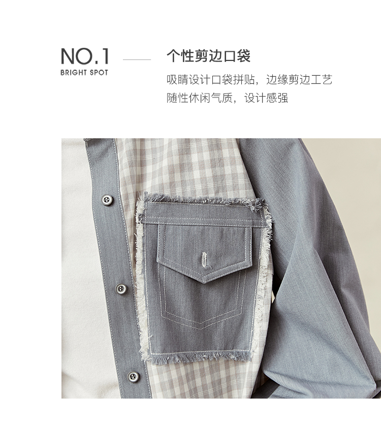Famecoco范可儿格子衬衫女设计感小众拼接上衣F221BA025