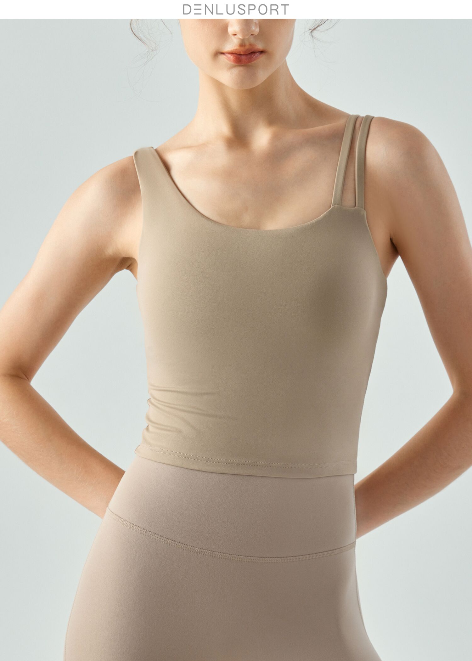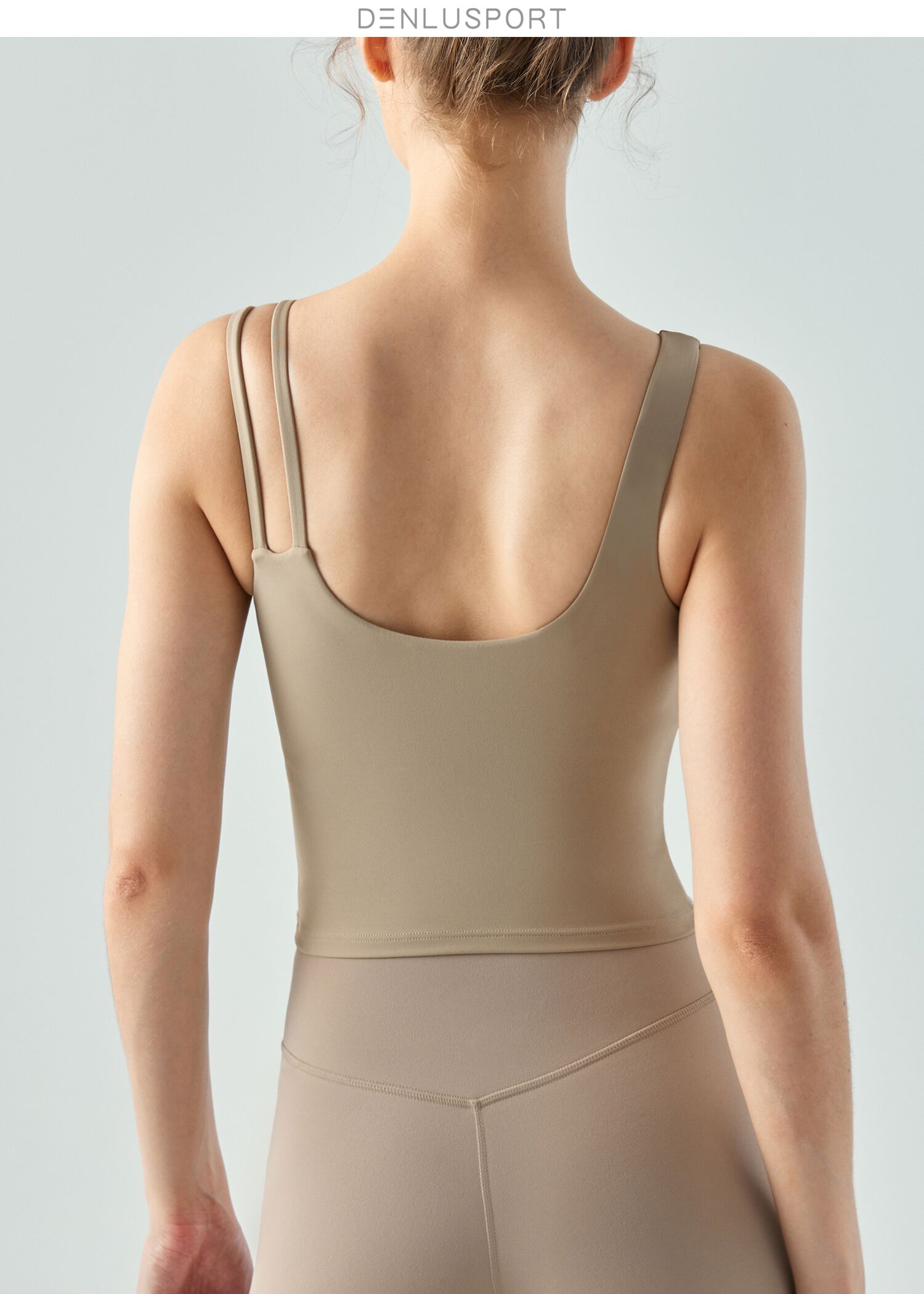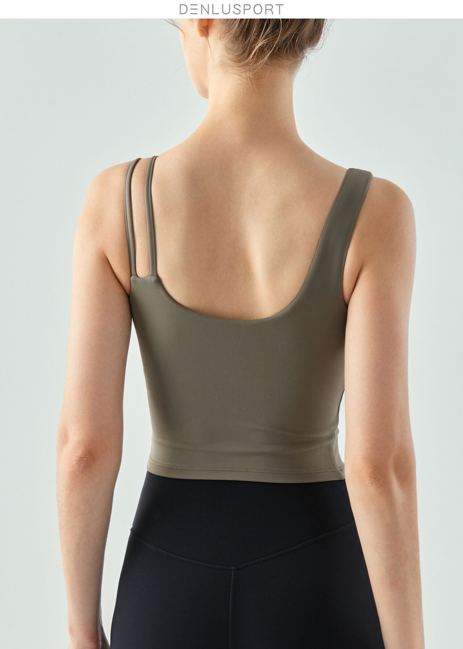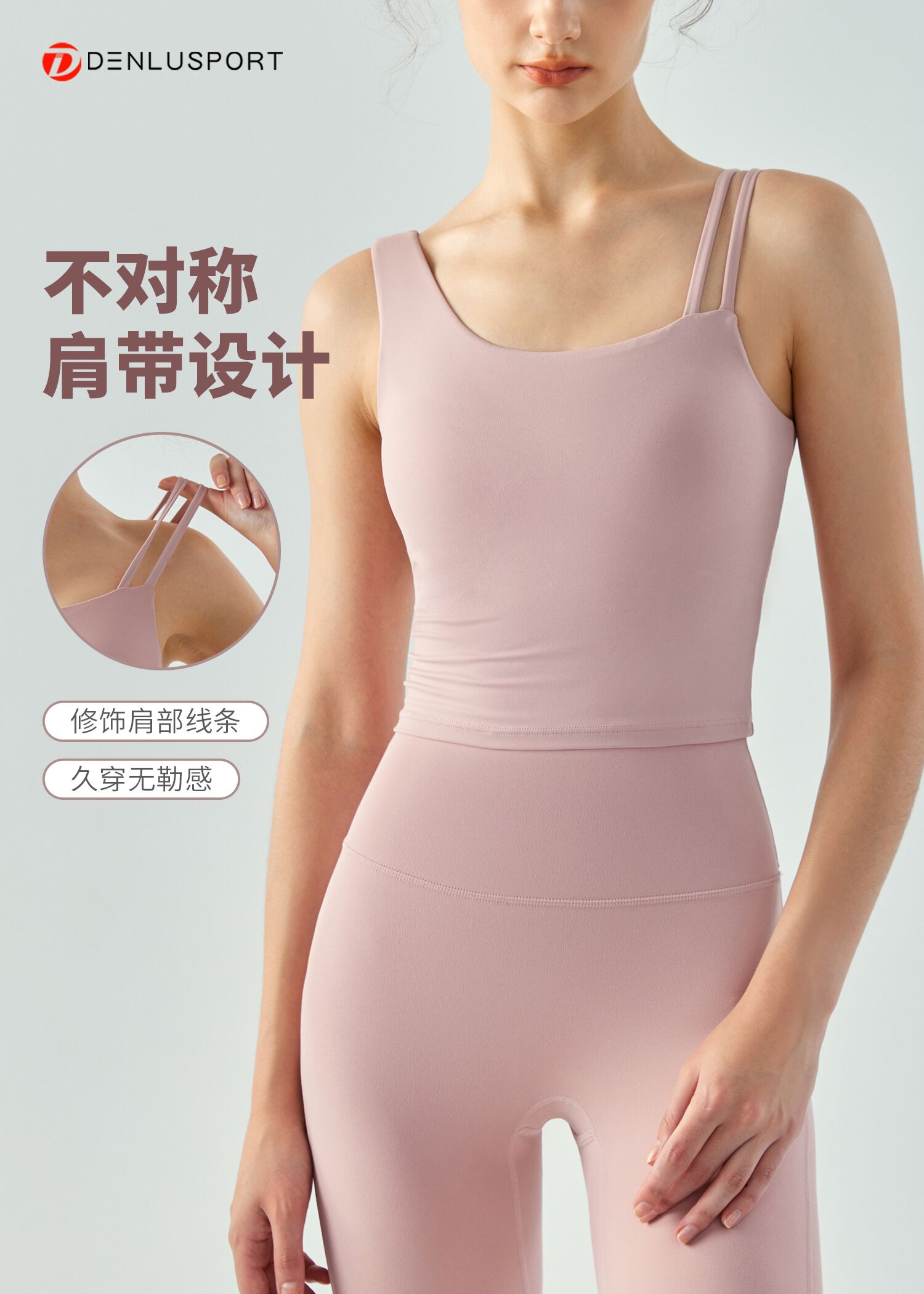 新款斜肩裸感运动美背固定胸垫聚拢有型DY66159