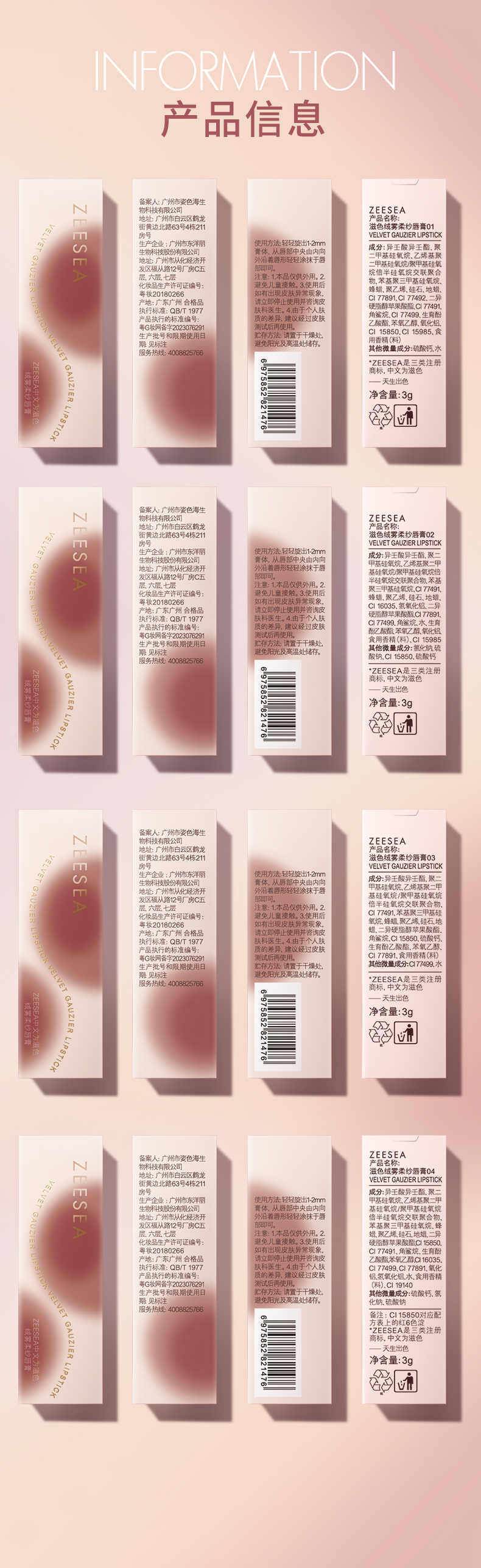 [唇妆]【49.9任选3件|79.9任选5件 |专区满3件送水桶包|专区满3件送水桶包】ZEESEA滋色绒雾柔纱唇膏3g(9.19 10:00-9.23 10:00)