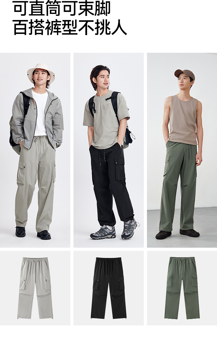 森马休闲裤男宽松直筒工装裤凉感吸湿速干伞兵裤夏季长裤户外潮流