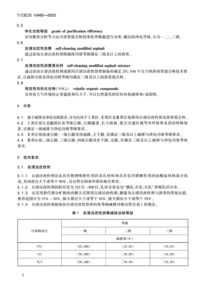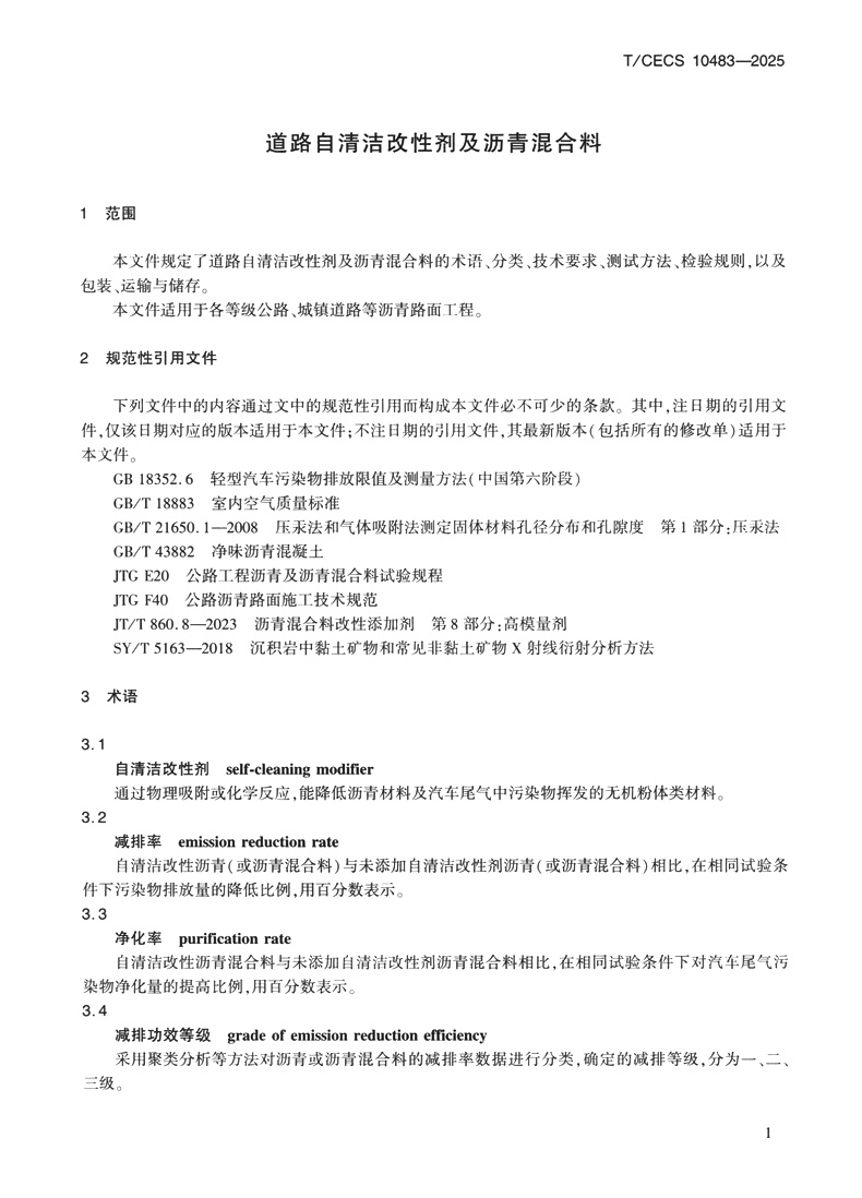 道路自清洁改性剂及沥青混合料(T/CECS 10483—2025)