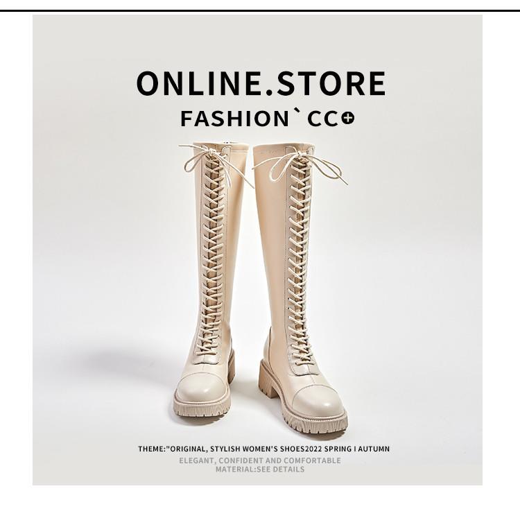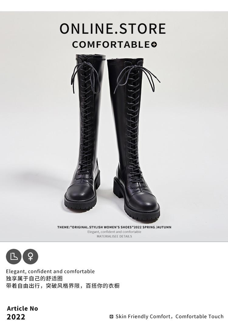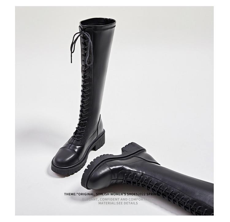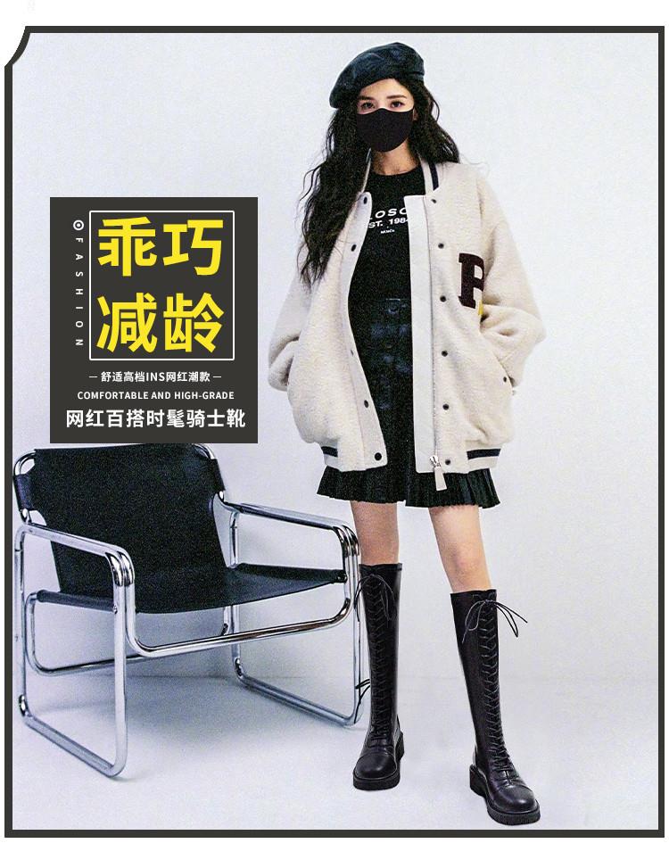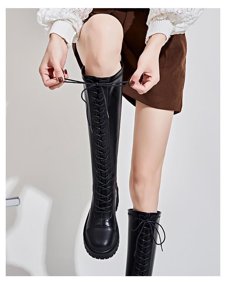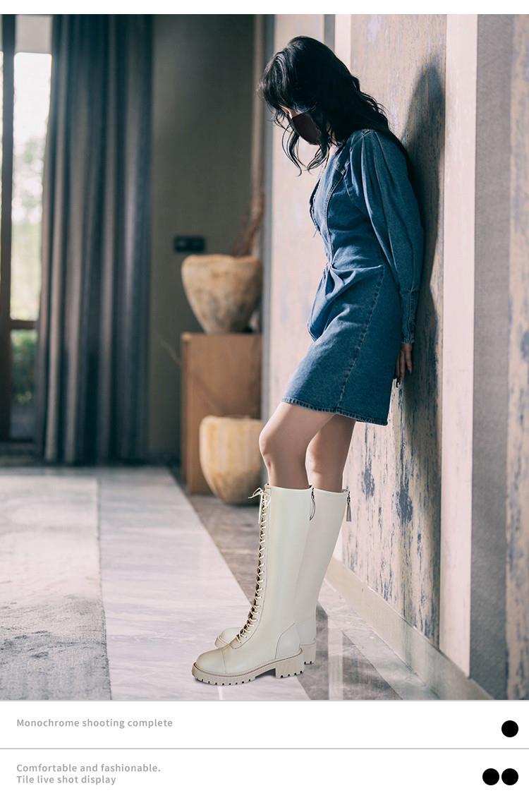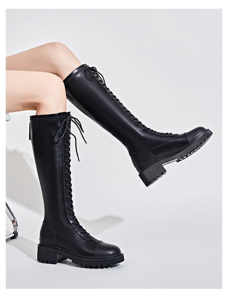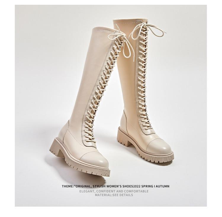 骑士靴女秋冬2023新款高筒休闲真皮长筒靴女英伦风粗跟加绒鞋子女