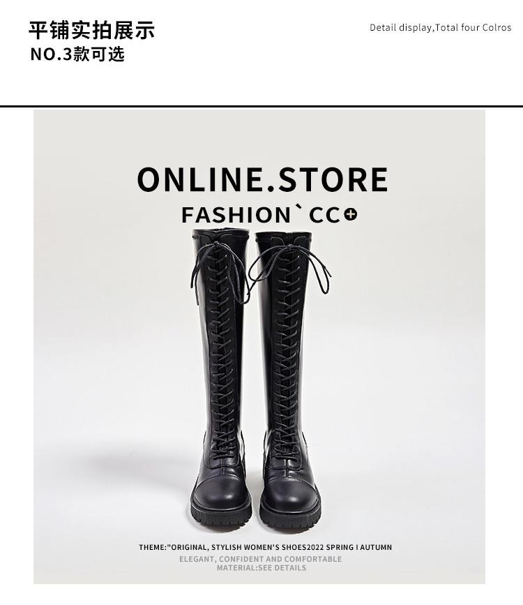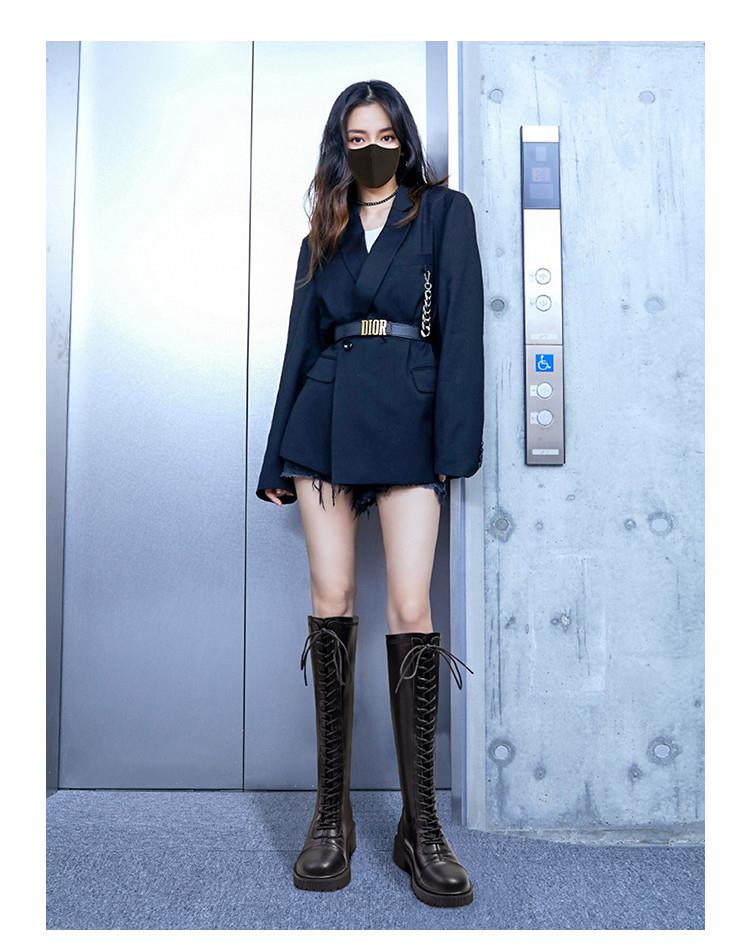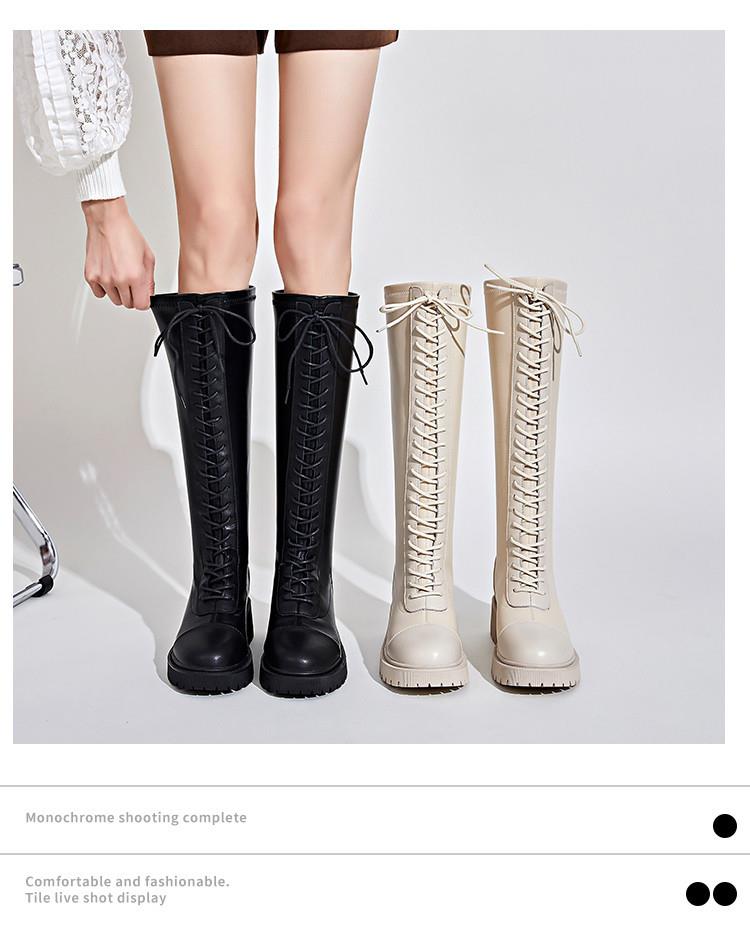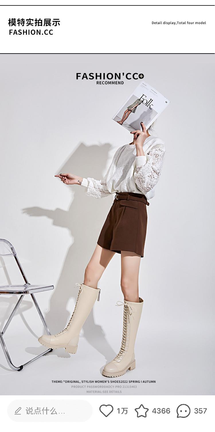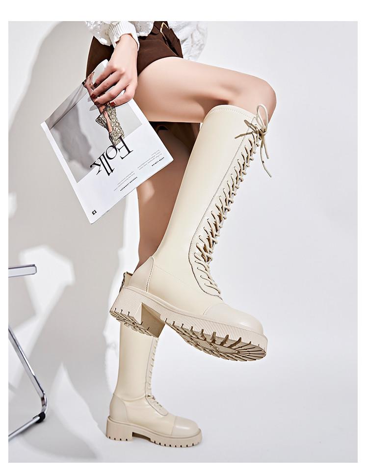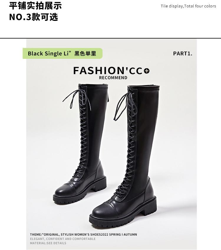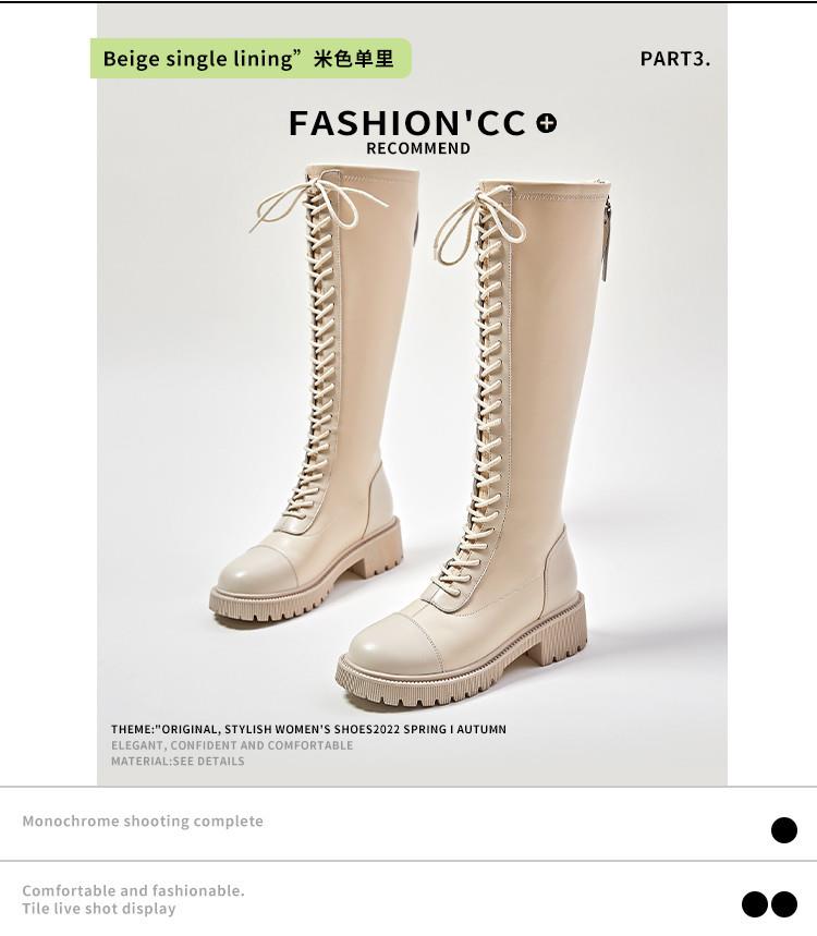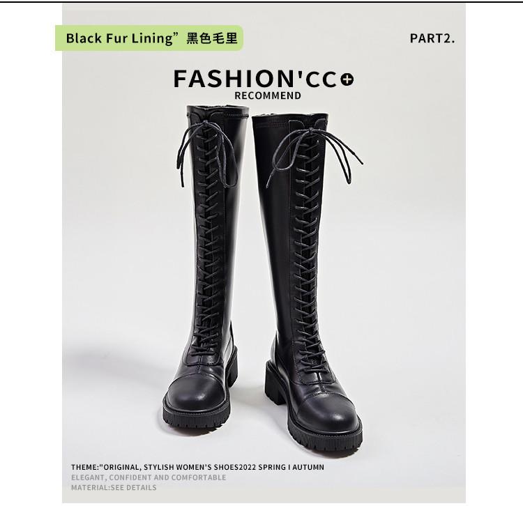 骑士靴女秋冬2023新款高筒休闲真皮长筒靴女英伦风粗跟加绒鞋子女