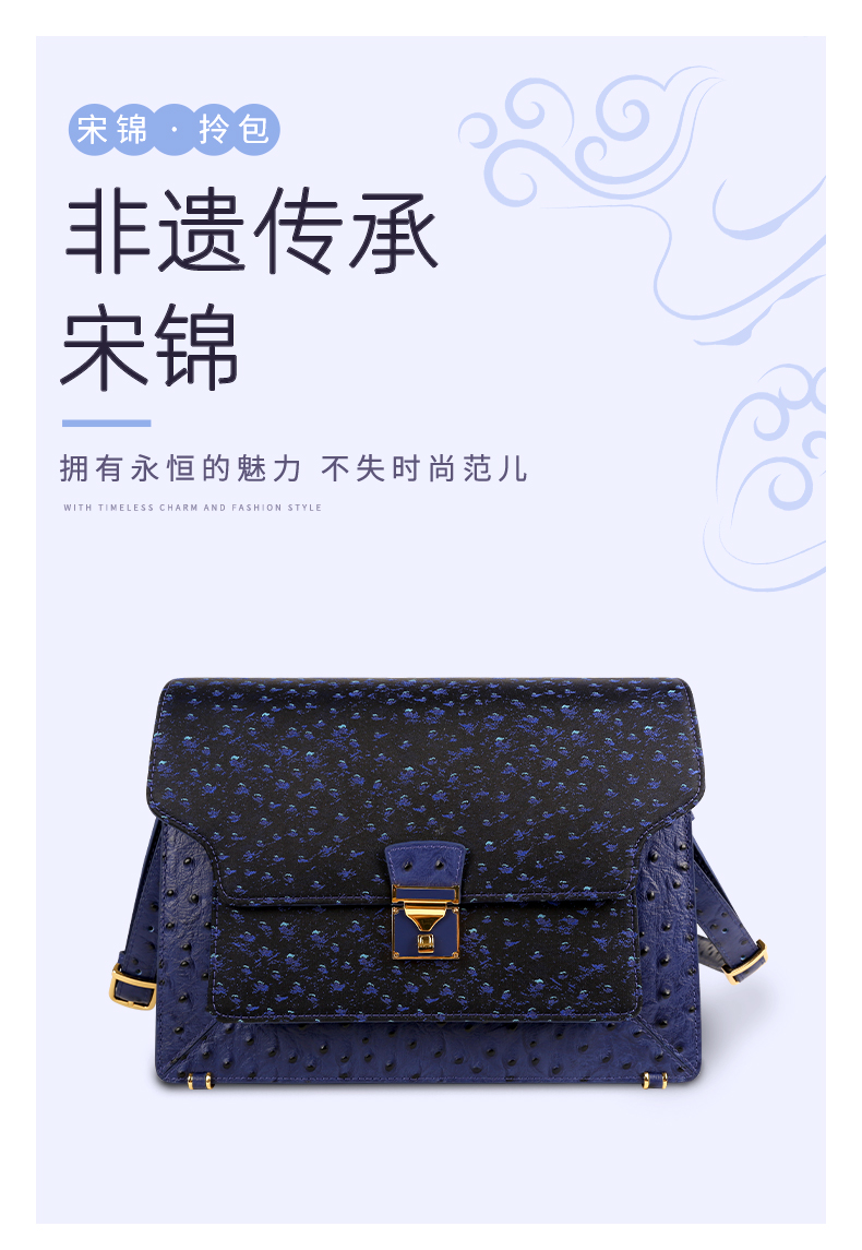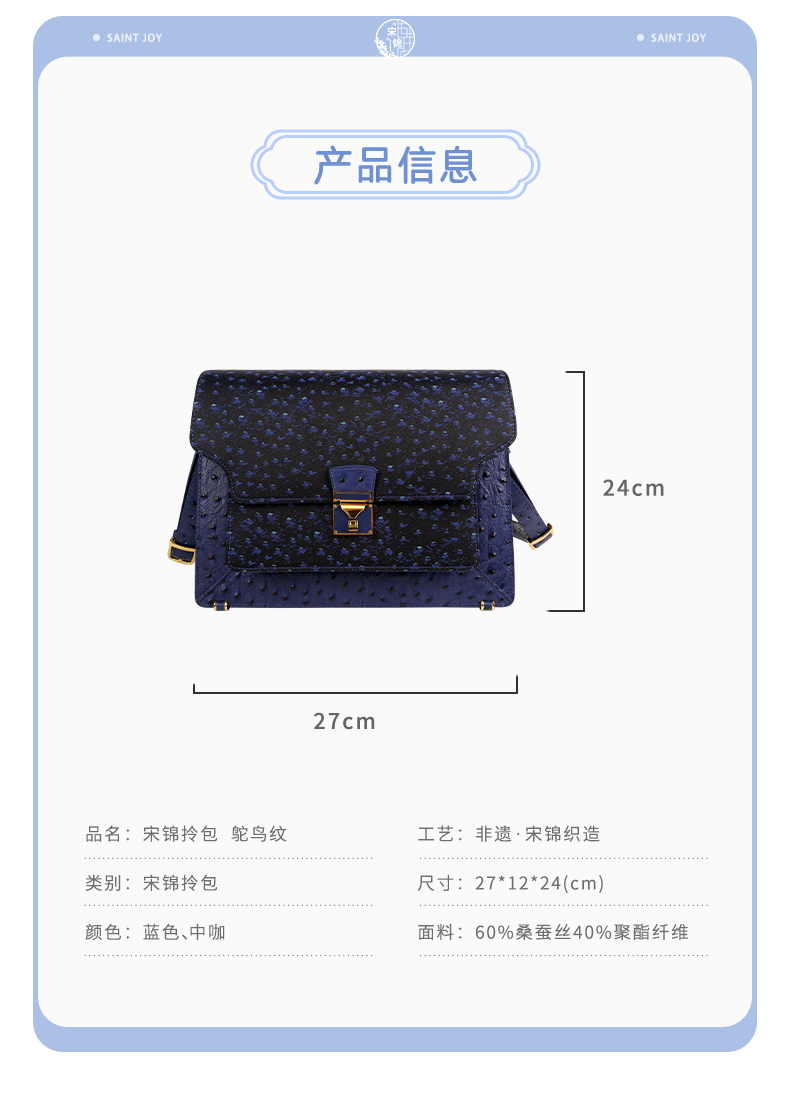 SAINTJOY/上久楷 宋锦女式拎包 鸵鸟纹 BWS19A2501