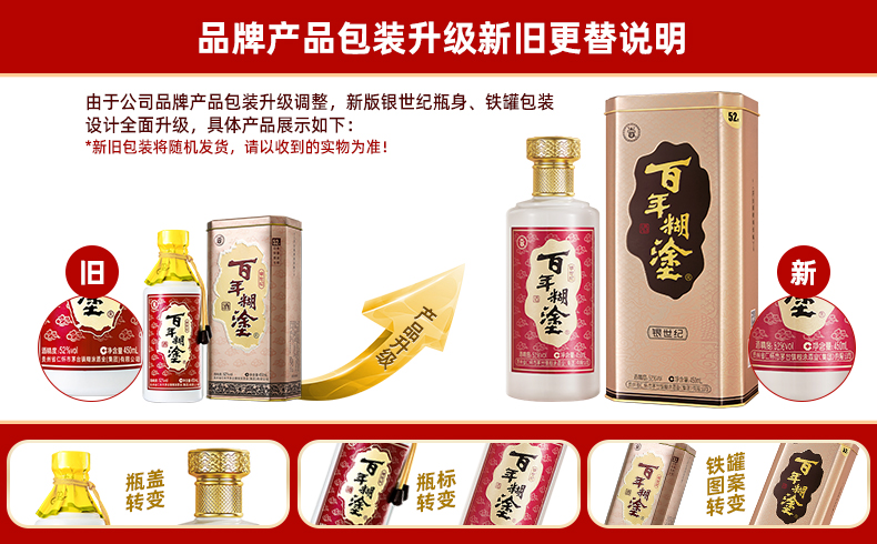 百年糊涂 银世纪 浓香型白酒52度 450mL*6瓶 【拍多件领劵】