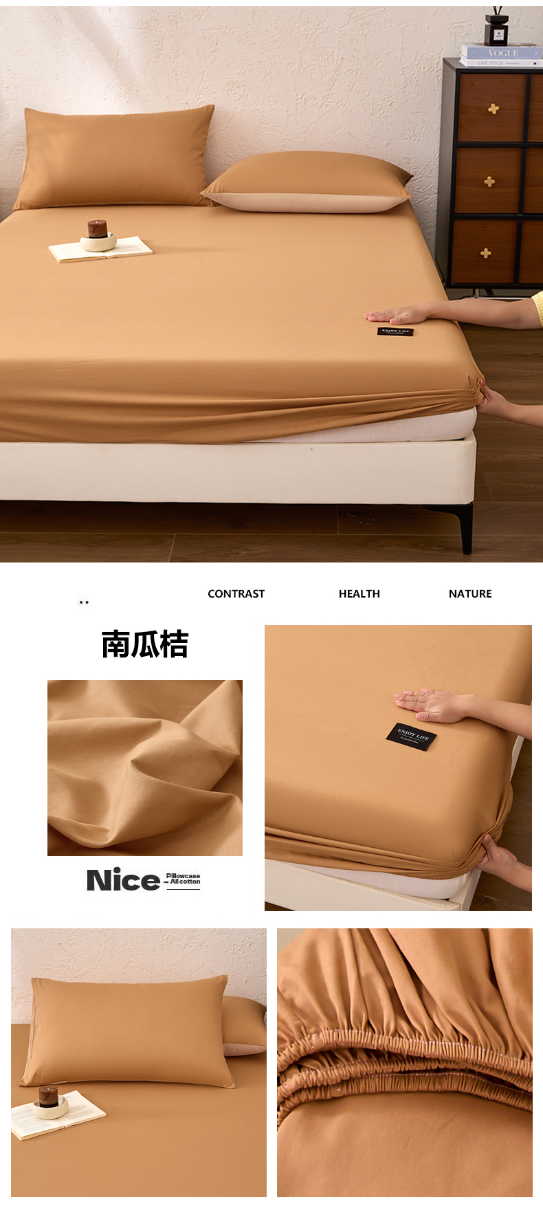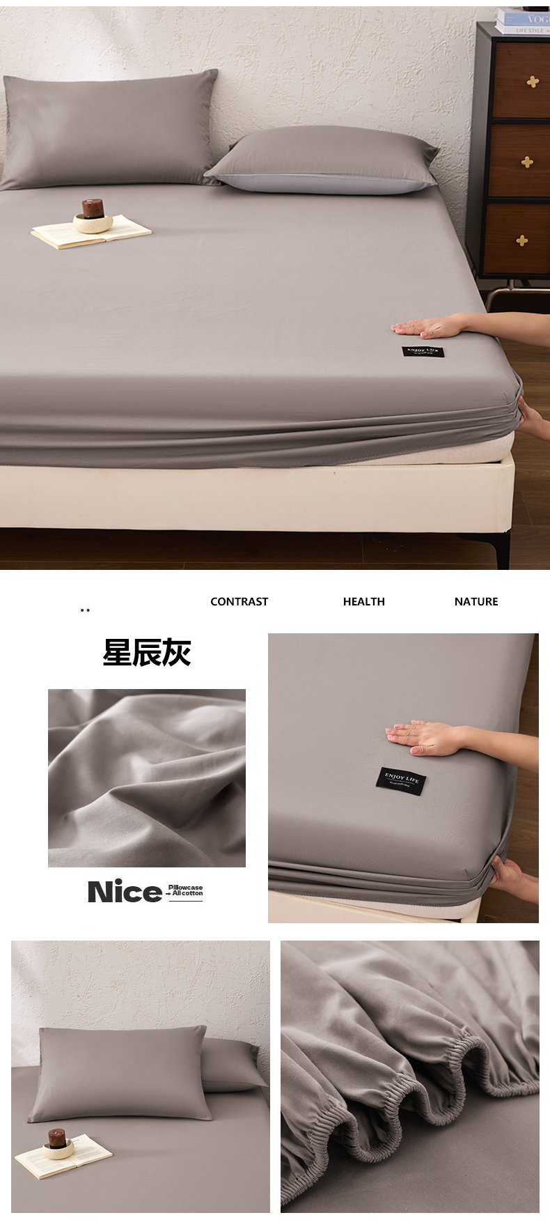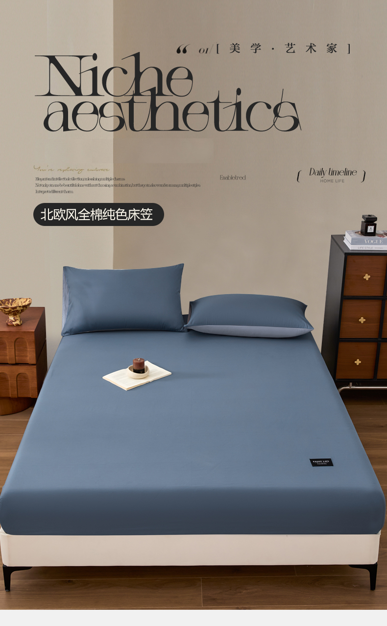 【品牌直发】加倍生活 北欧风全棉纯棉纯色床笠单品/三件套 12色可选yc0228004