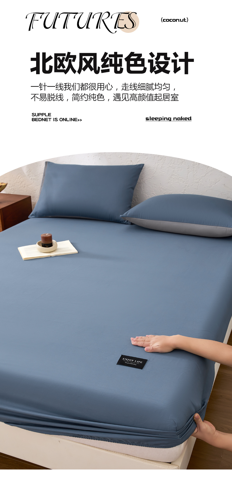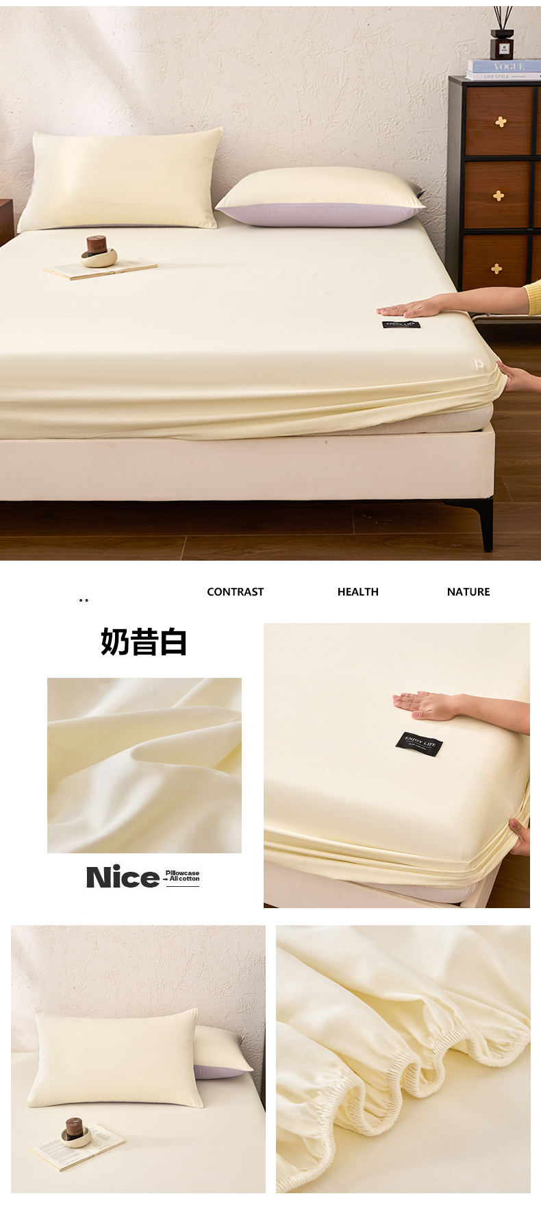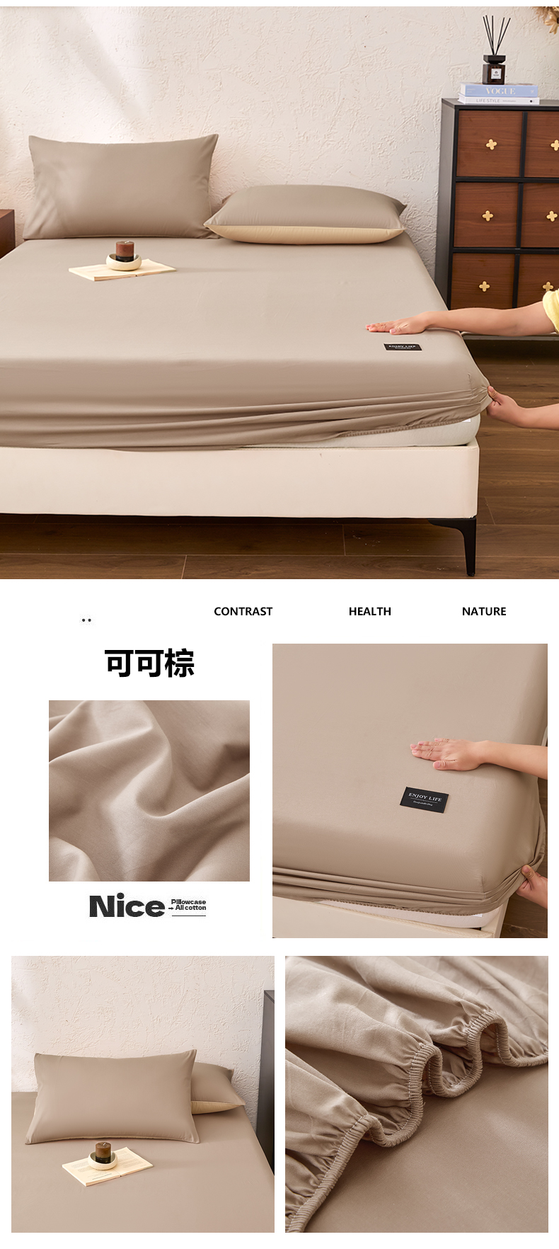 【品牌直发】加倍生活 北欧风全棉纯棉纯色床笠单品/三件套 12色可选yc0228004