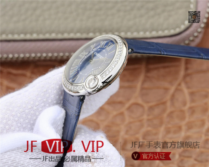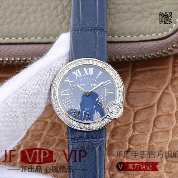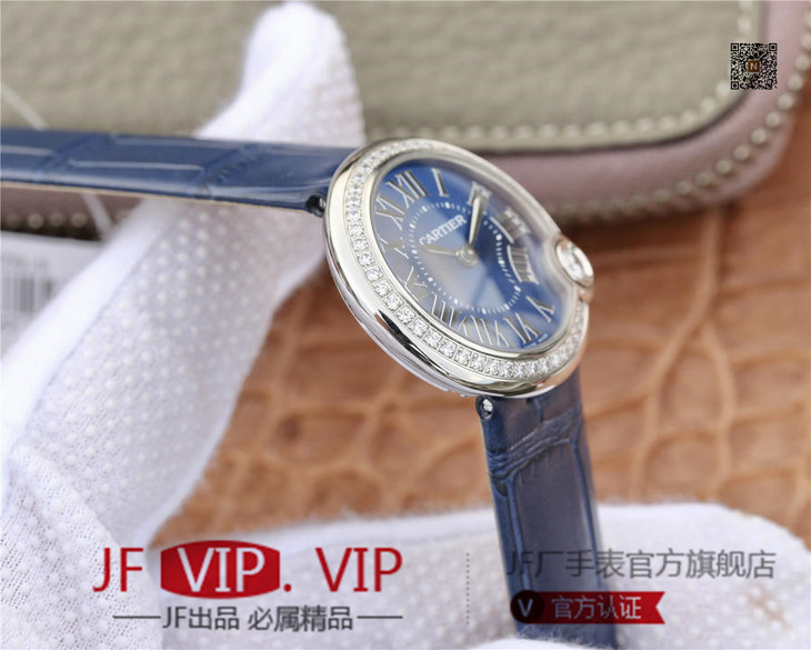 卡地亚BALLON BLANC DE CARTIER系列腕表。这款女士珠宝腕表的最大亮点在于表壳4时位置点缀一颗光华璀璨的钻石