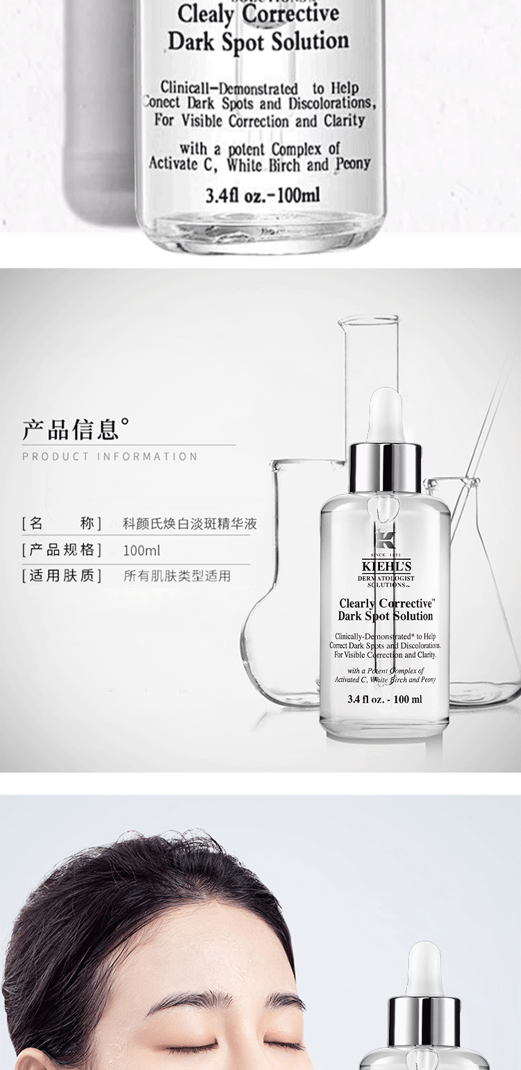 【买一赠一到手共200ml礼盒礼袋】KIEHL'S科颜氏安白瓶精华液正装100ml*2瓶一般贸易