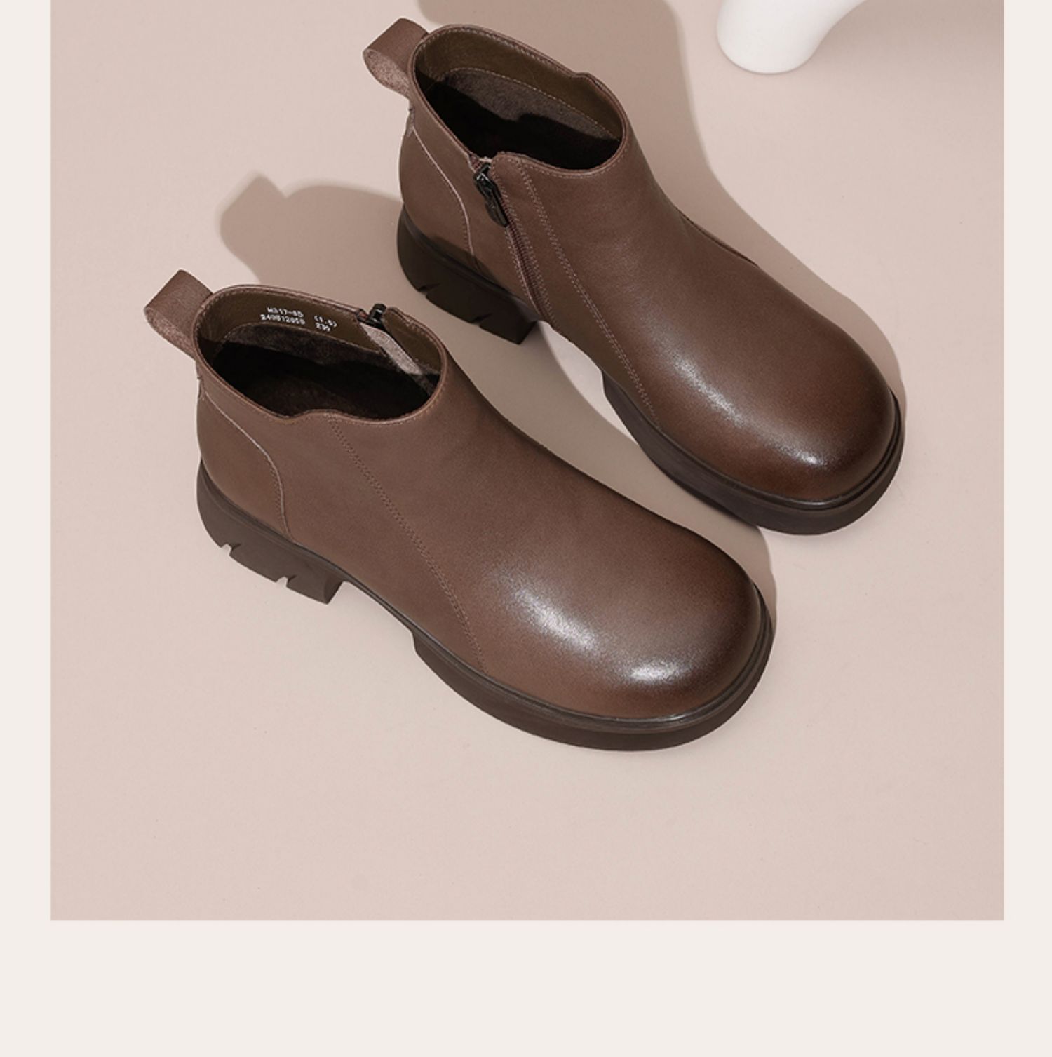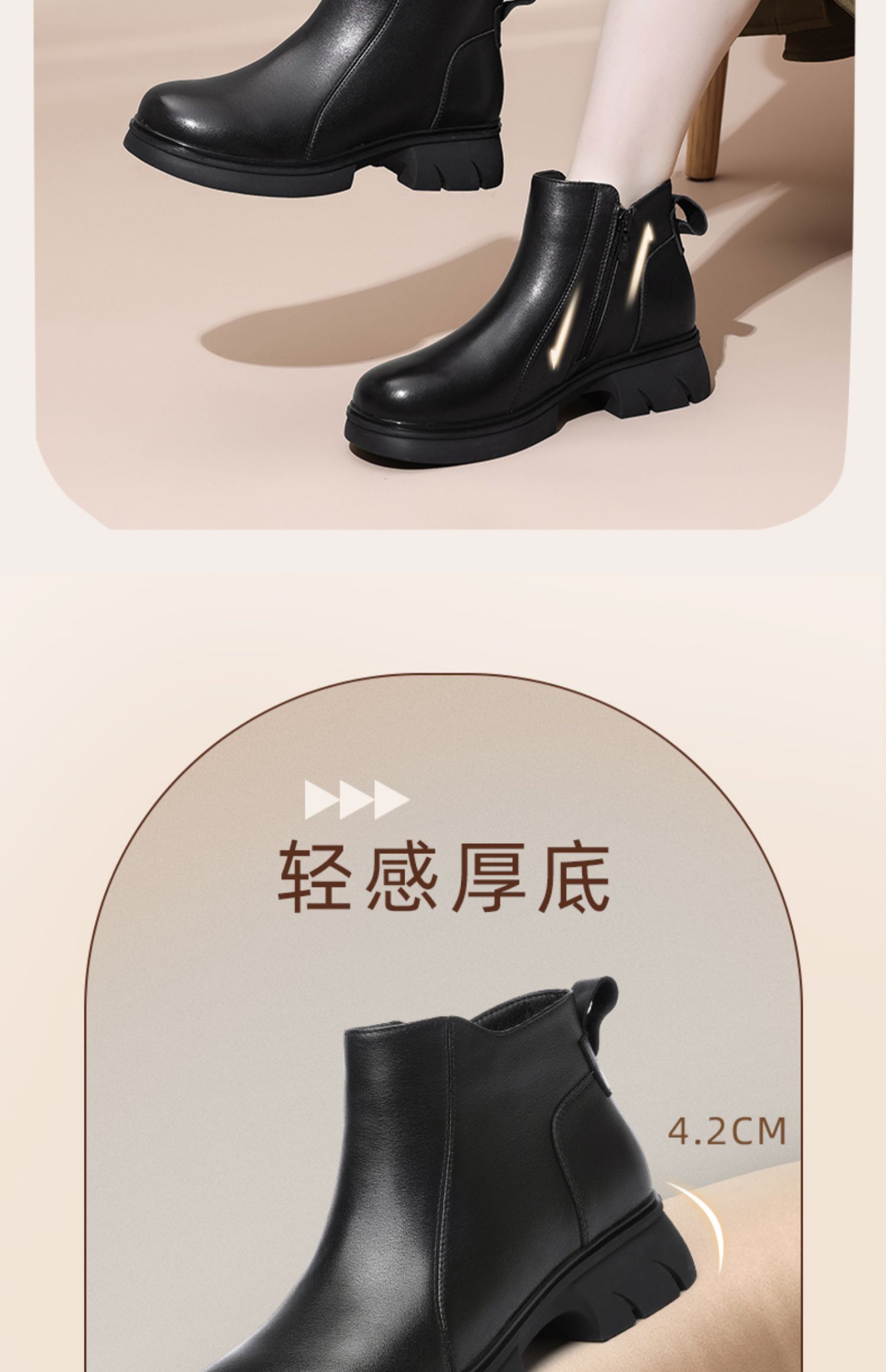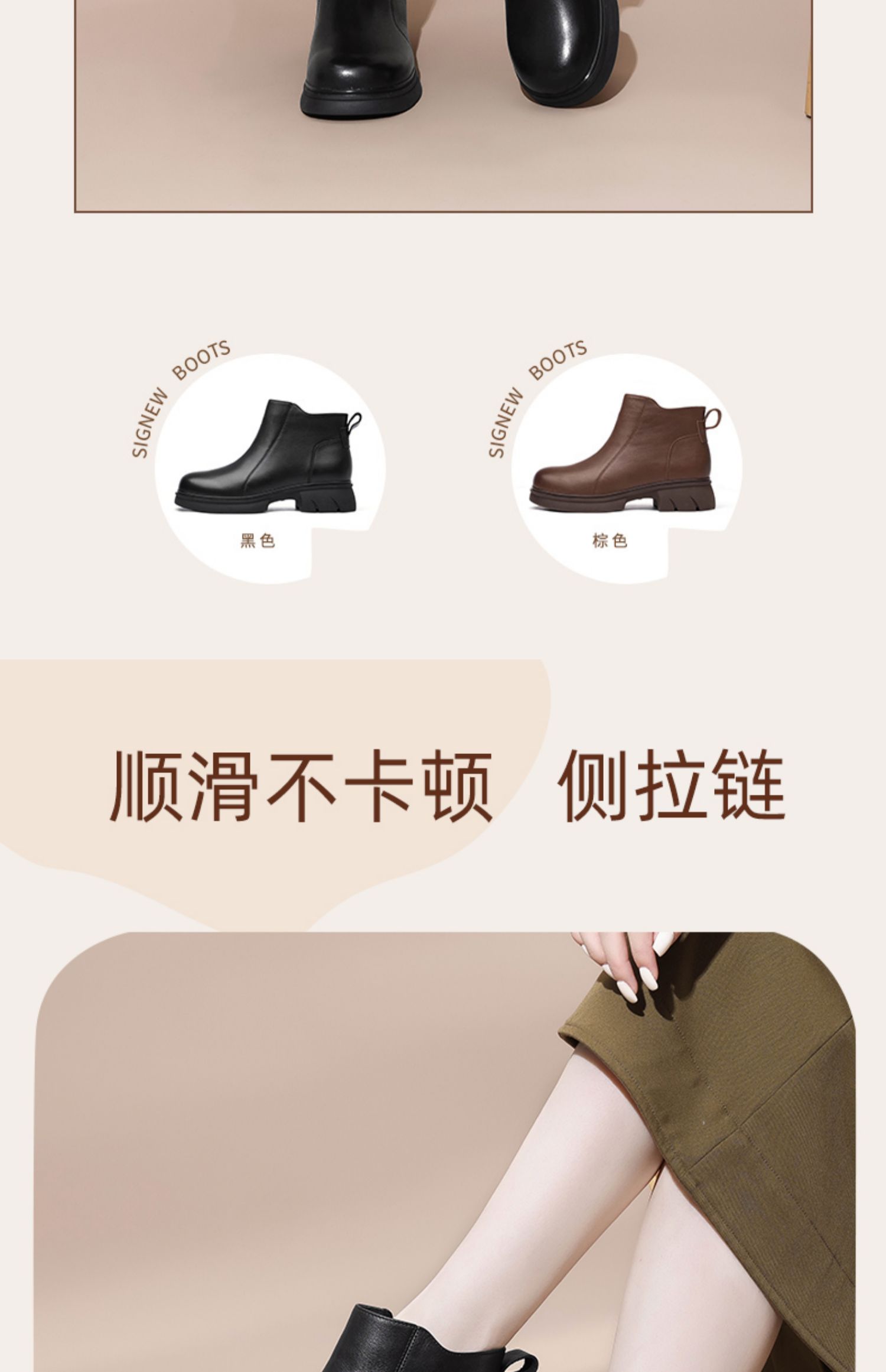 信诺真皮女靴粗跟软底女士短靴2024冬季新款加绒保暖棉鞋妈妈鞋子M317-5D