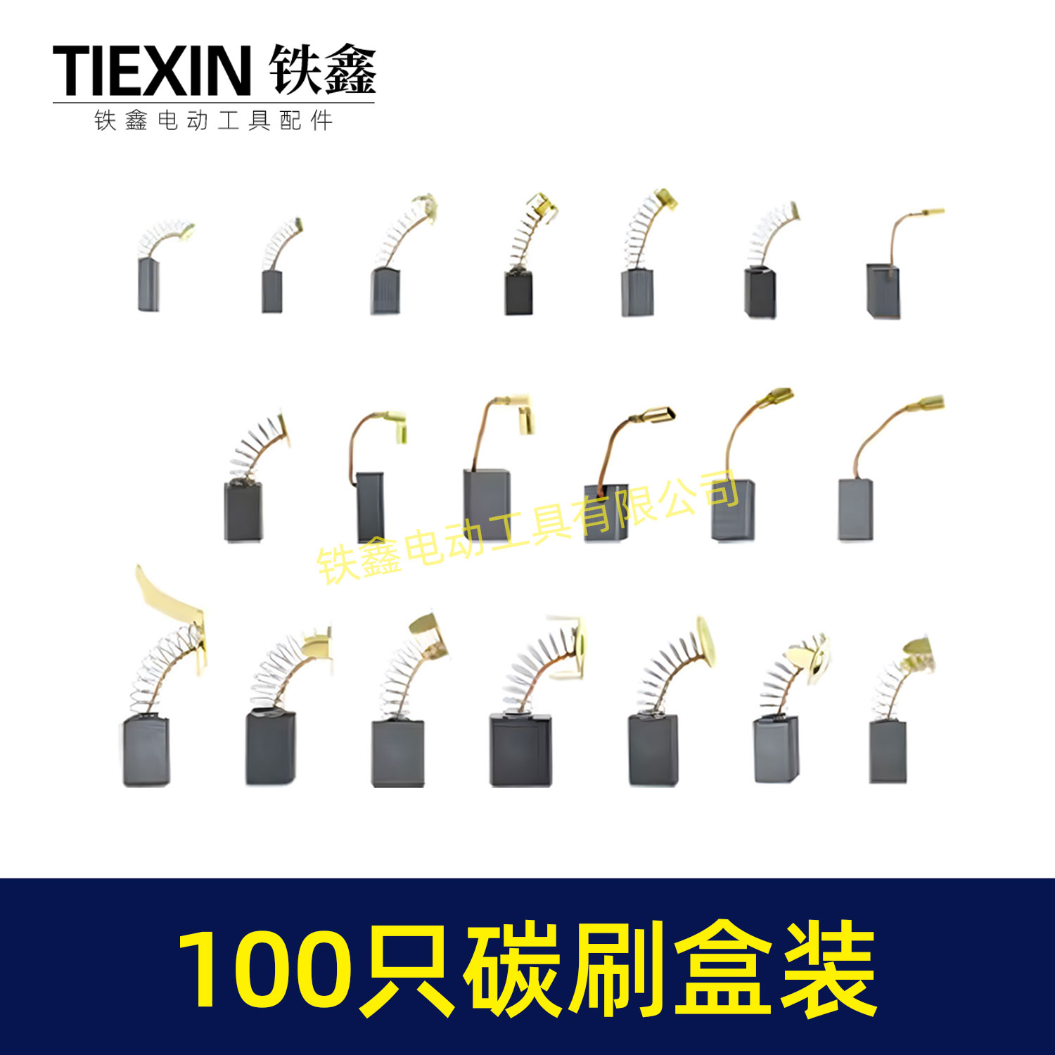 【货号07932】铁盒混装电动工具碳刷电刷100只装100PC角磨机手电钻电锤电镐切割机电圆锯碳刷