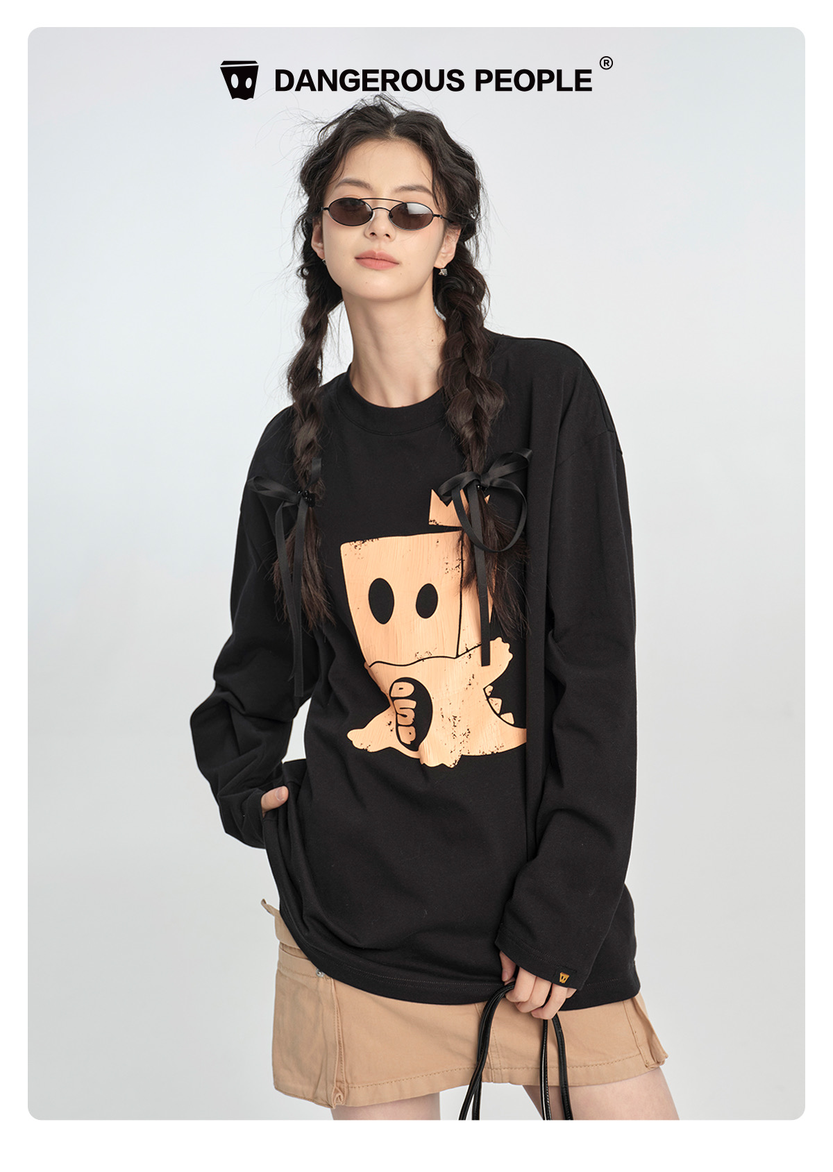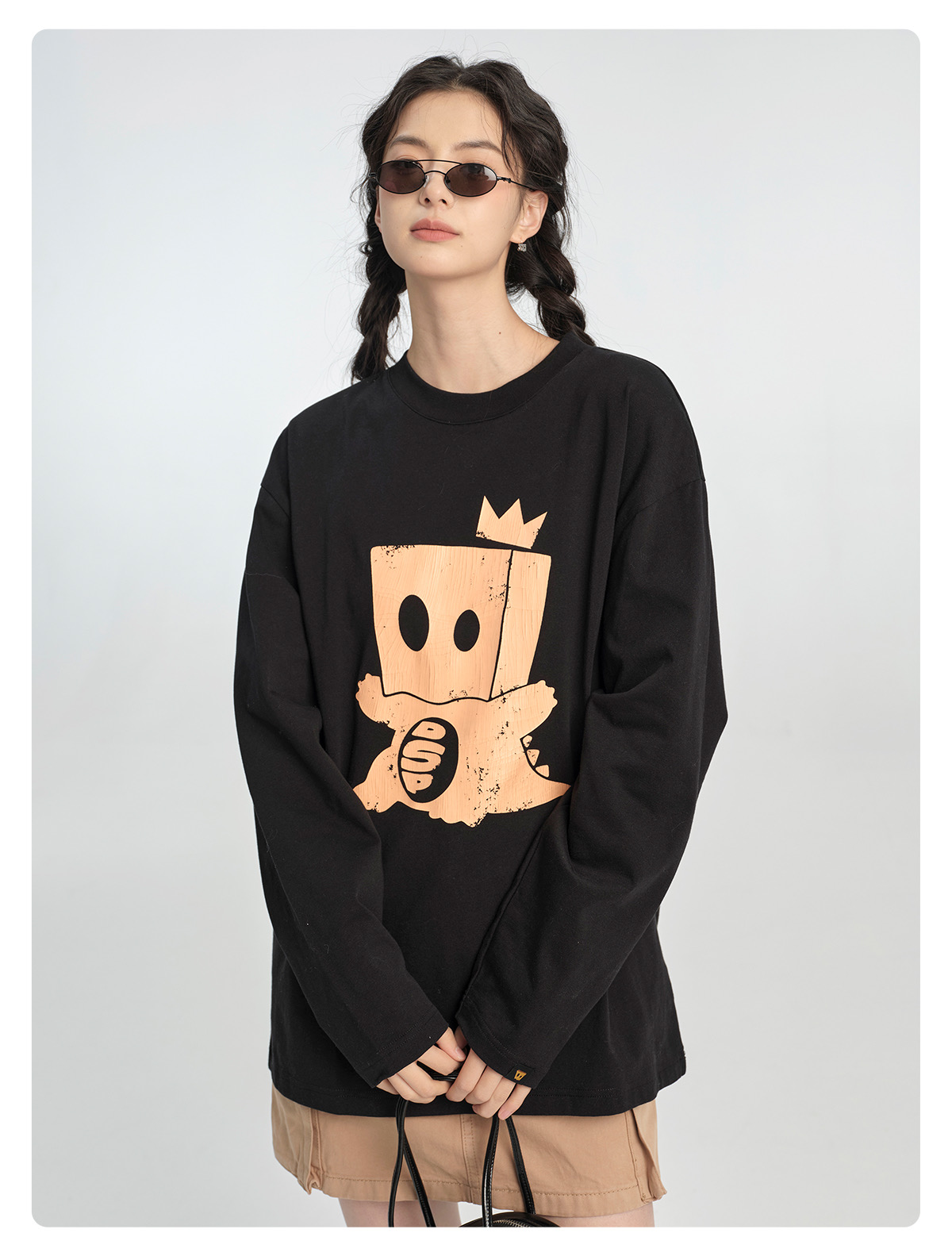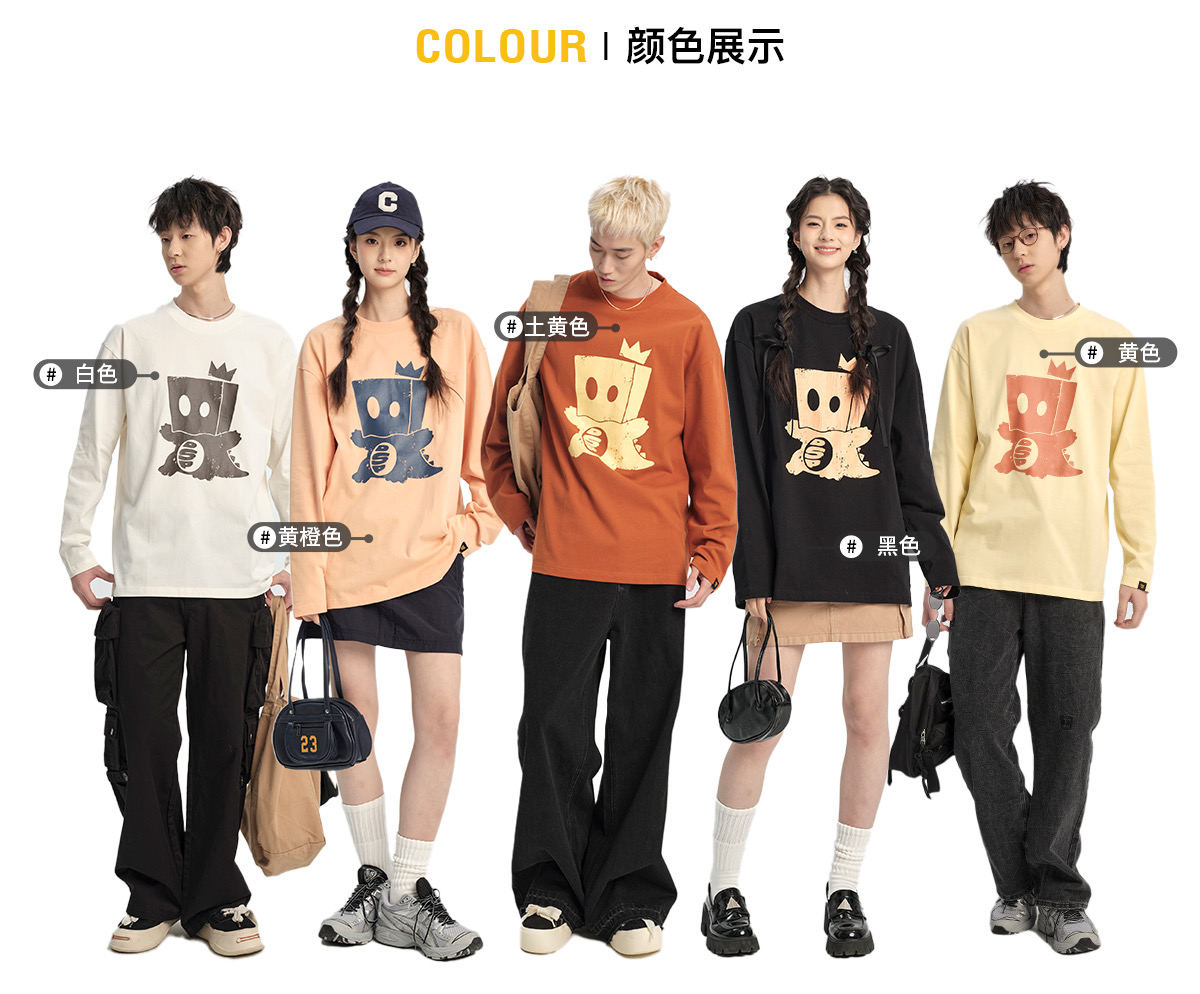 薛之谦的潮牌dsp* 纯元,25秋款,可爱 纸袋小恐龙做旧图案,男女同款 宽松 纯棉 上衣~