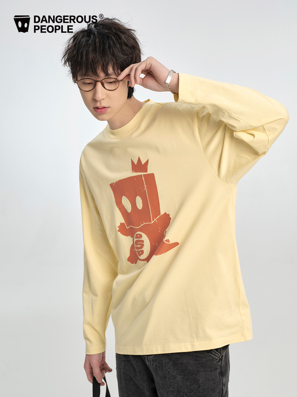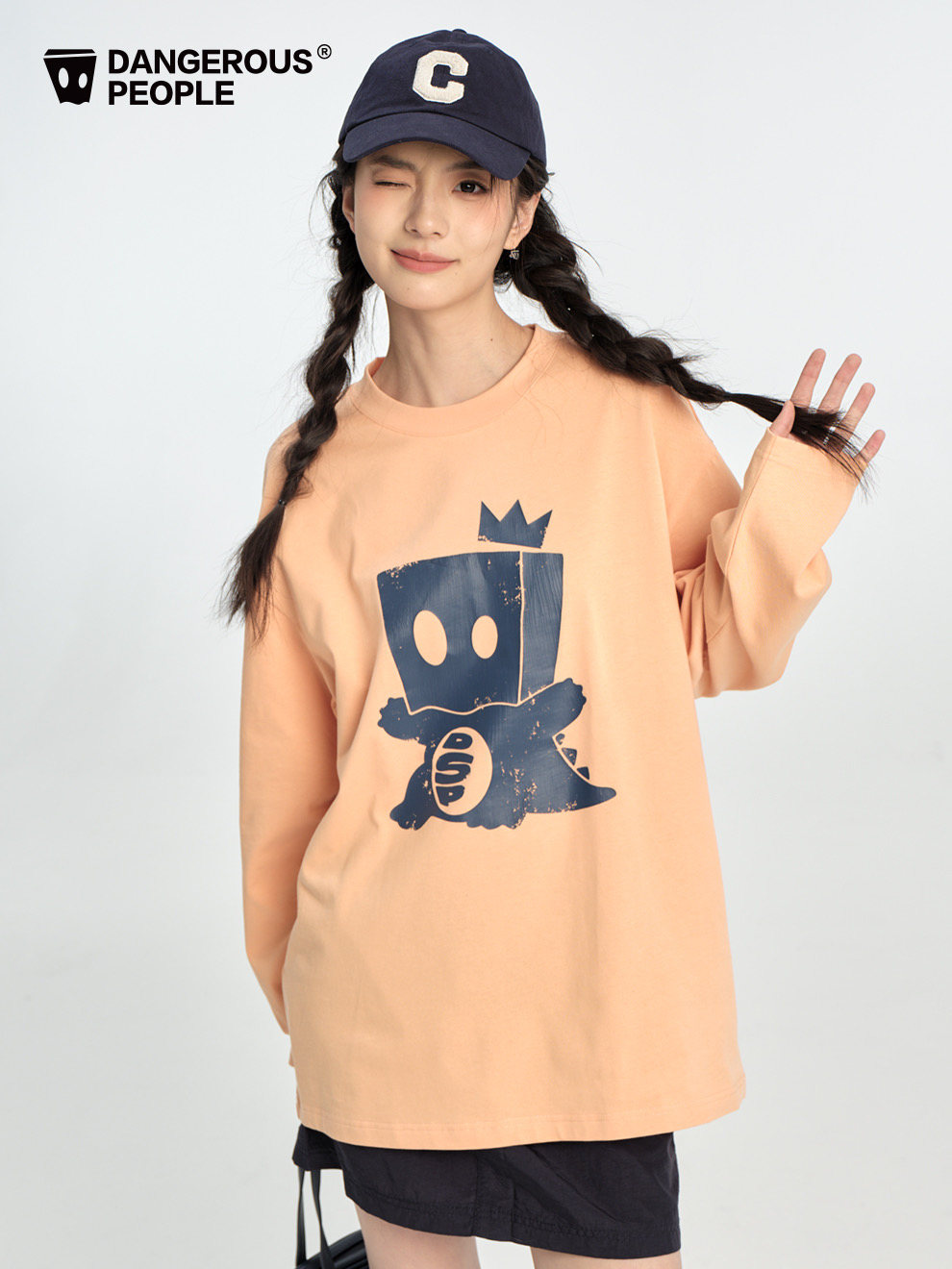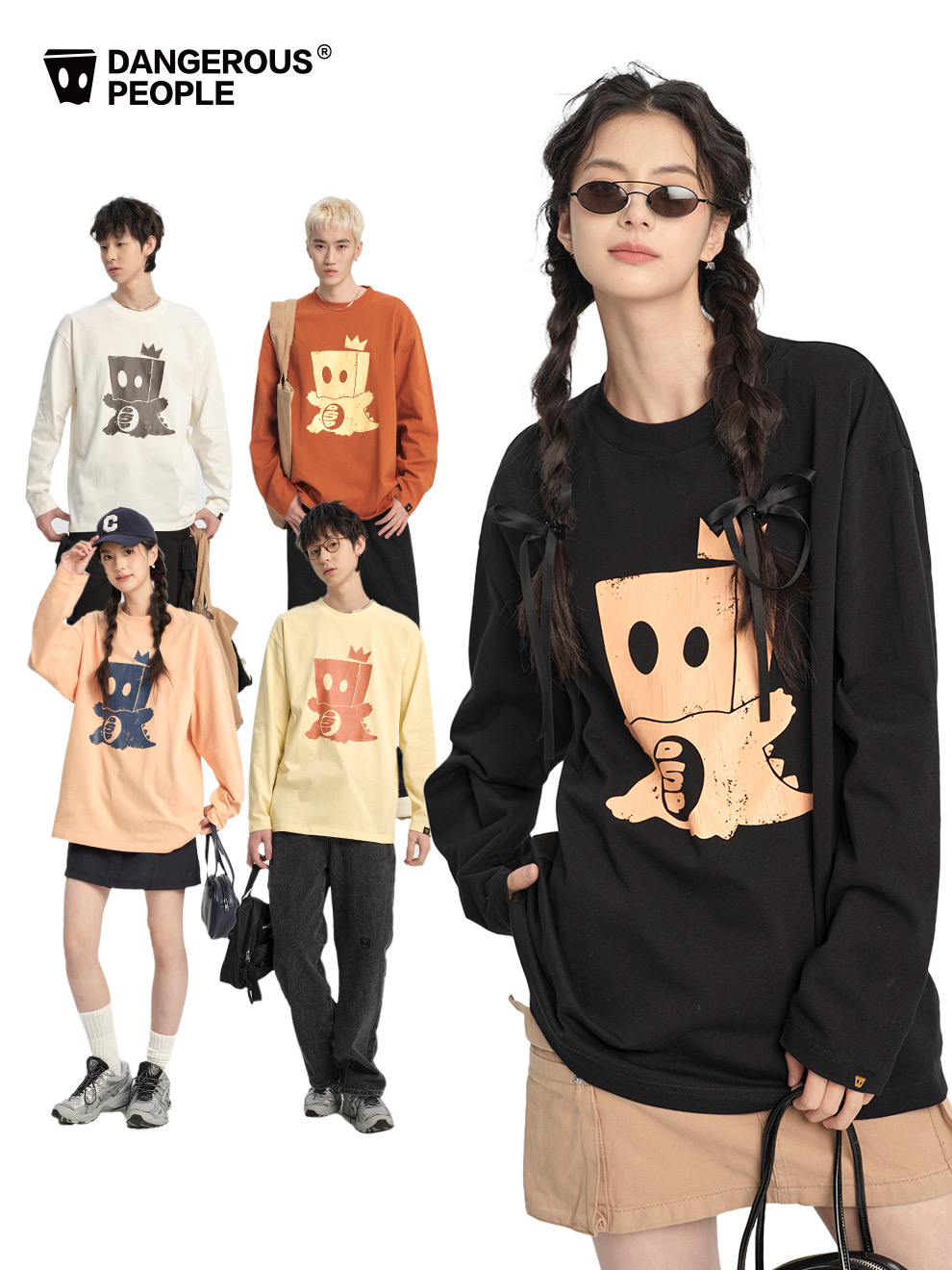 薛之谦的潮牌dsp* 纯元,25秋款,可爱 纸袋小恐龙做旧图案,男女同款 宽松 纯棉 上衣~