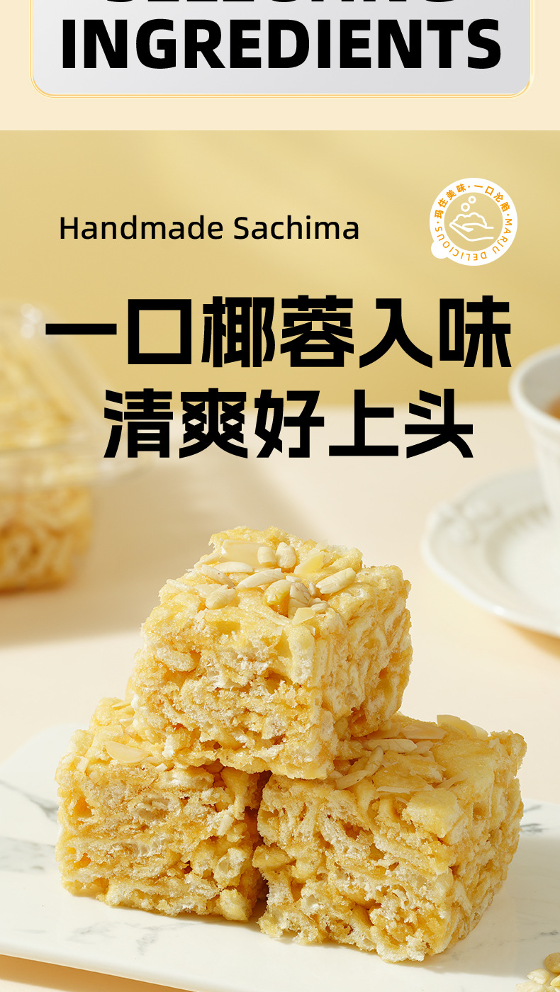 【多口味选择❗️ 榄仁手工沙琪玛】甄选原料制作,一口椰蓉入味,清爽好上头,醇香坚果风味,唇齿留香,早餐代餐下午茶休闲传统糕点食品小吃L