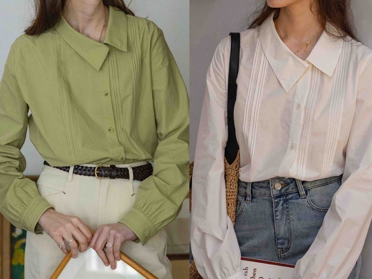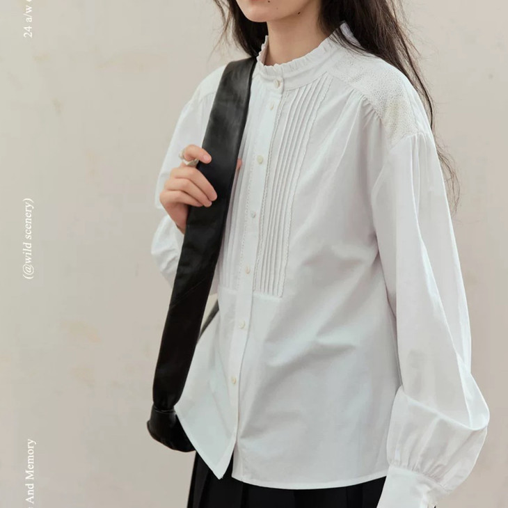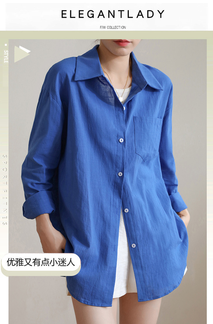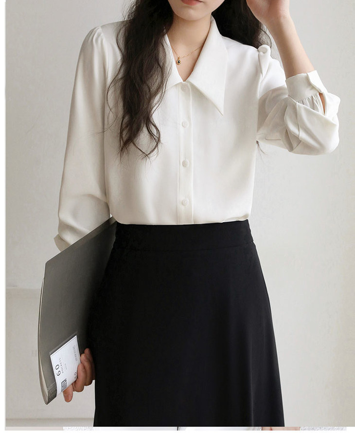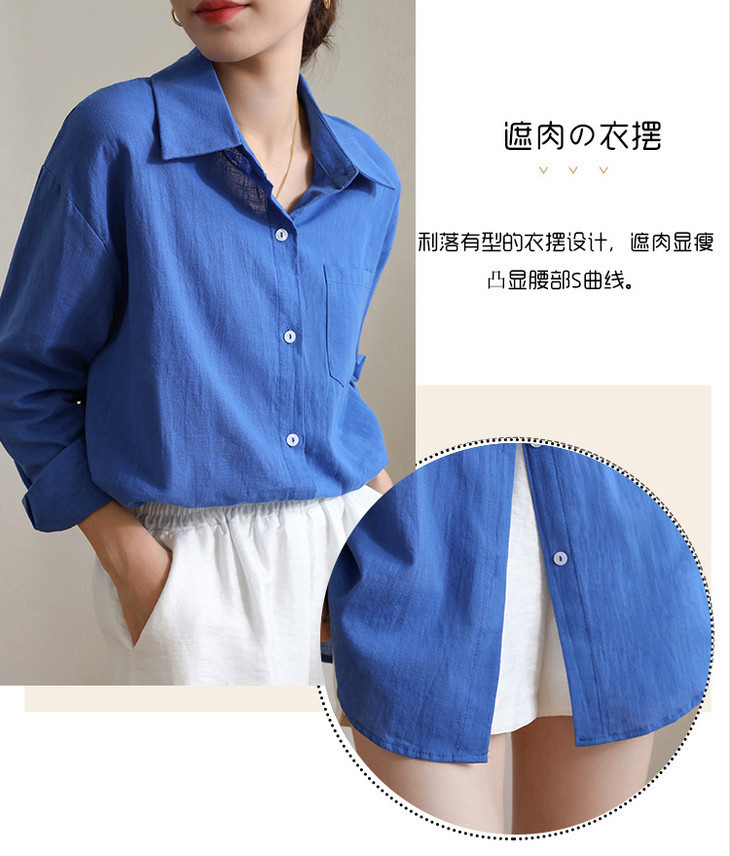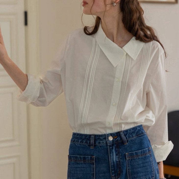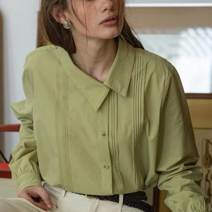 【品名】自然呼吸百褶斜门襟歪领长袖衬衫5629