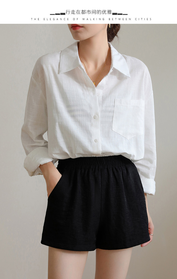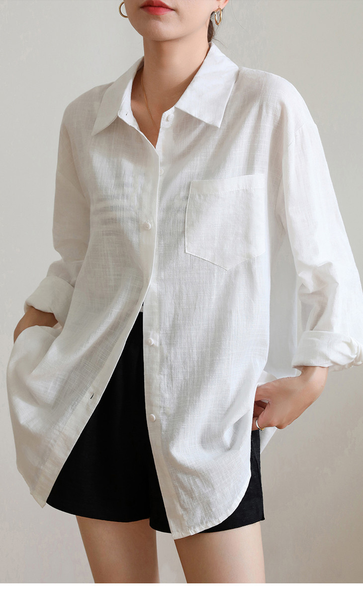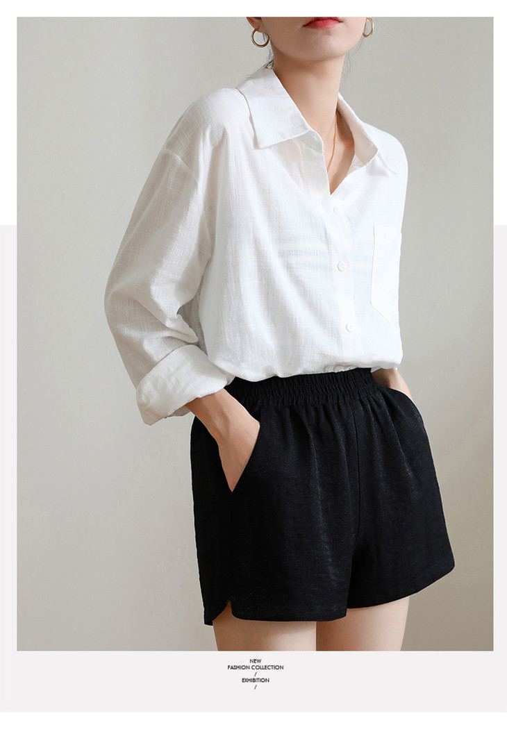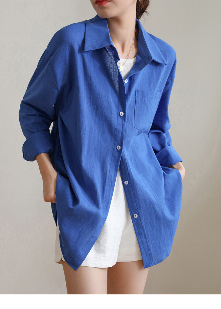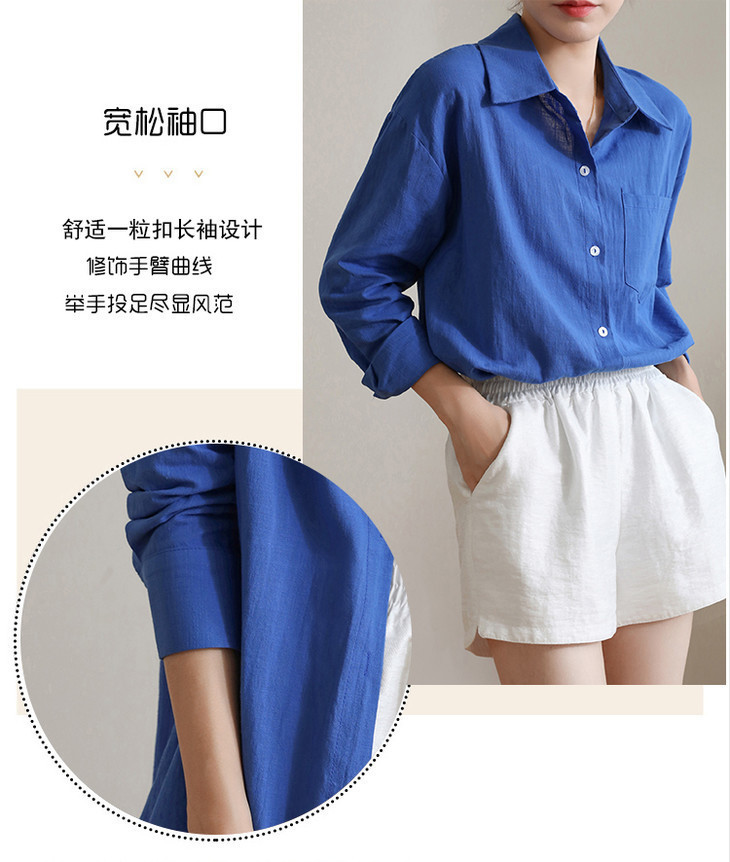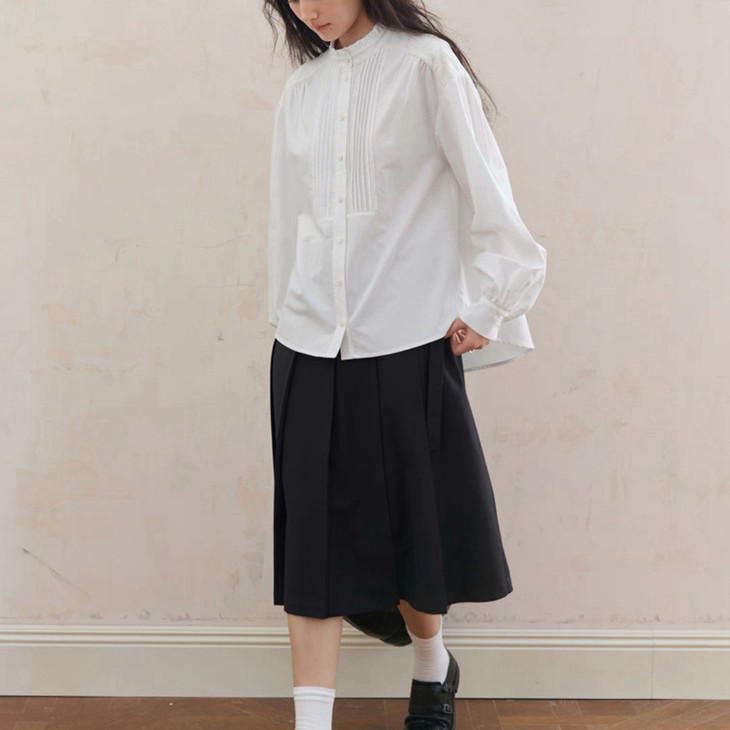 【品名】自然呼吸百褶斜门襟歪领长袖衬衫5629
