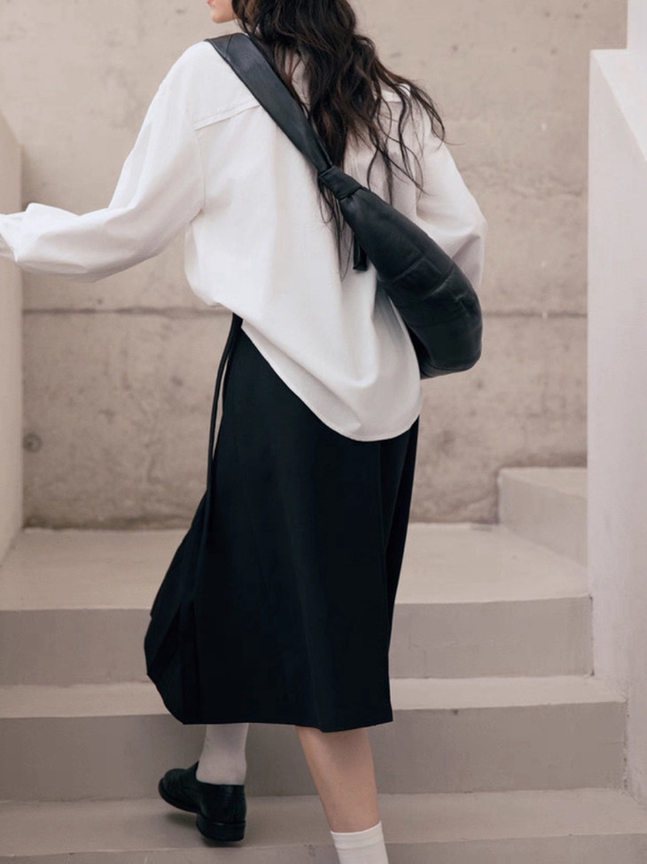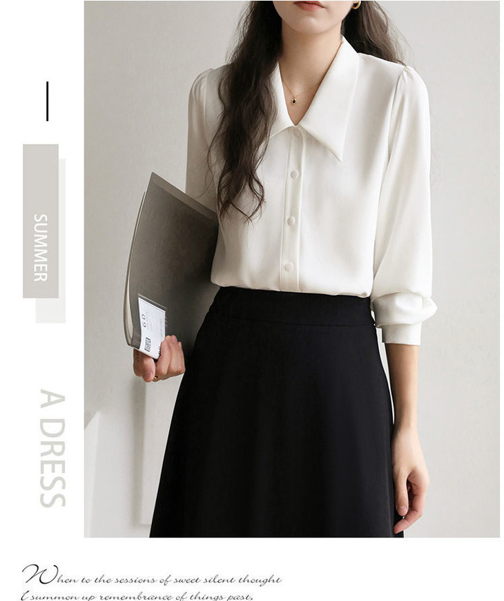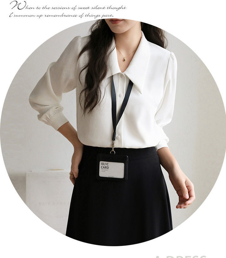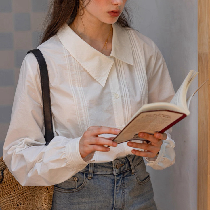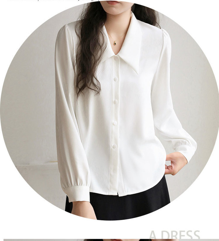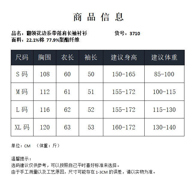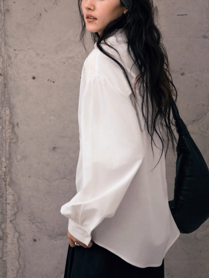【品名】白色翻领花边系带落肩长袖衬衫3710
