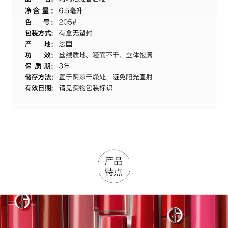 【香港直邮】意大利 GIORGIO ARMANI 阿玛尼哑光红管唇釉205 甜酷小辣椒